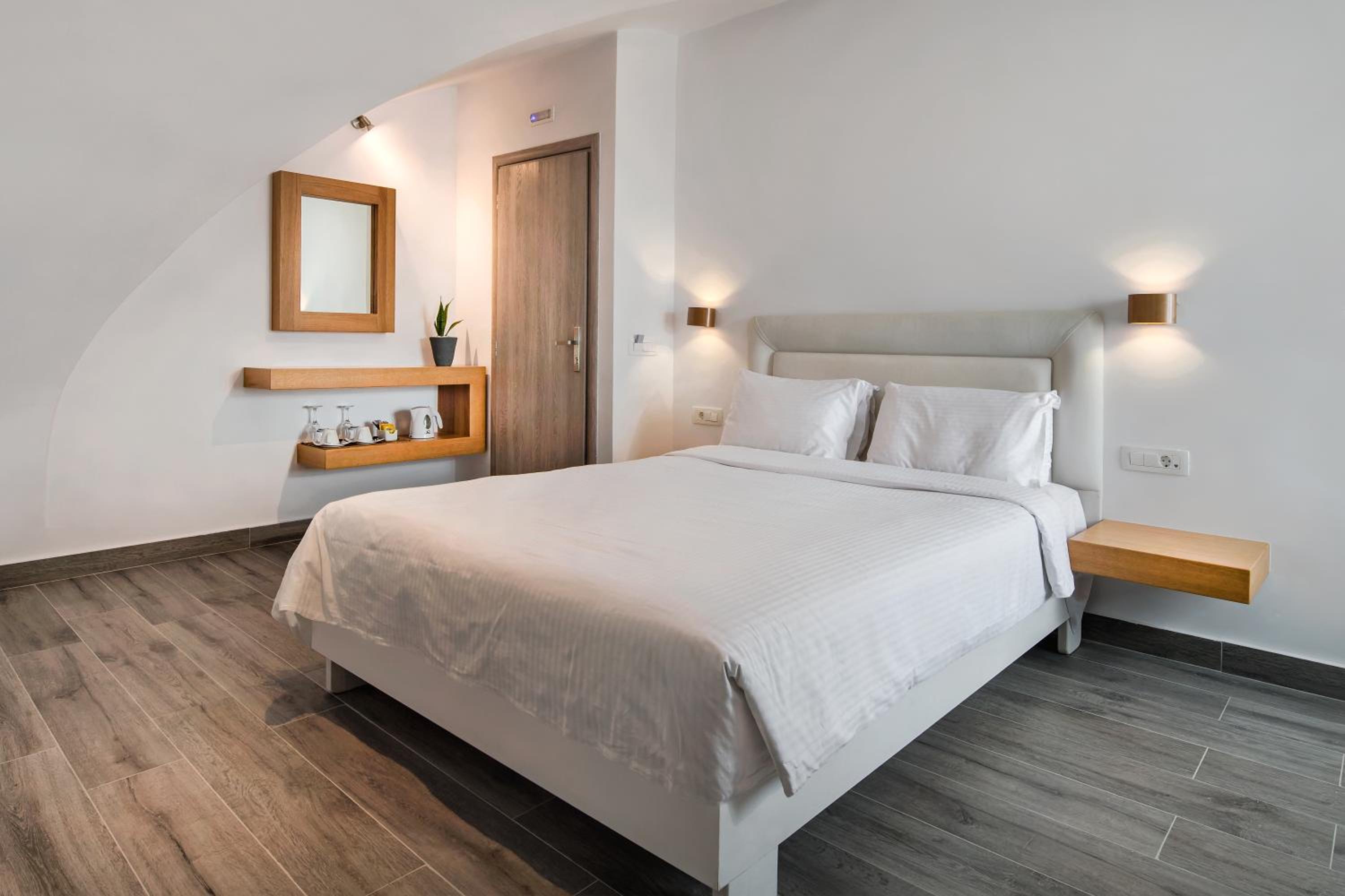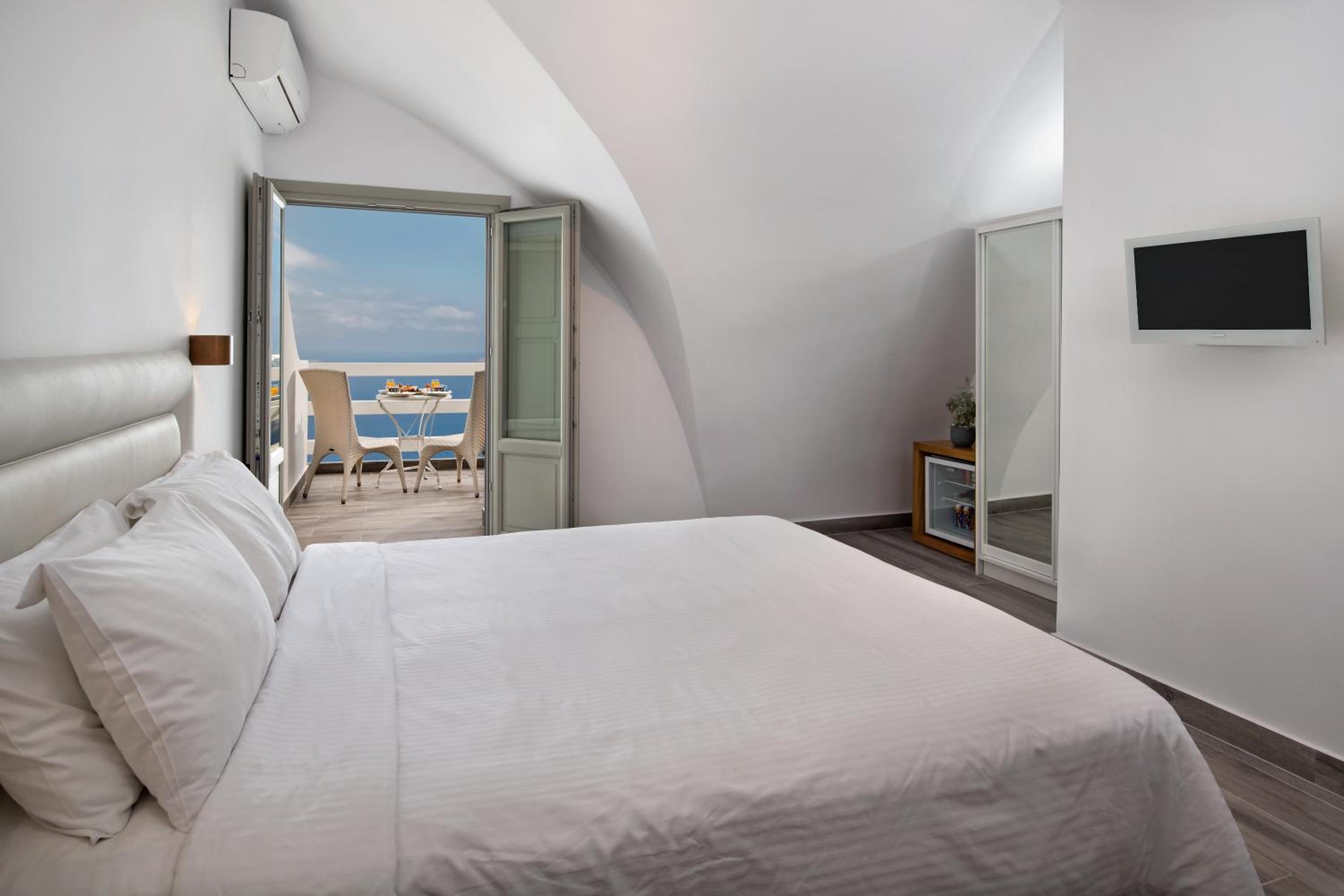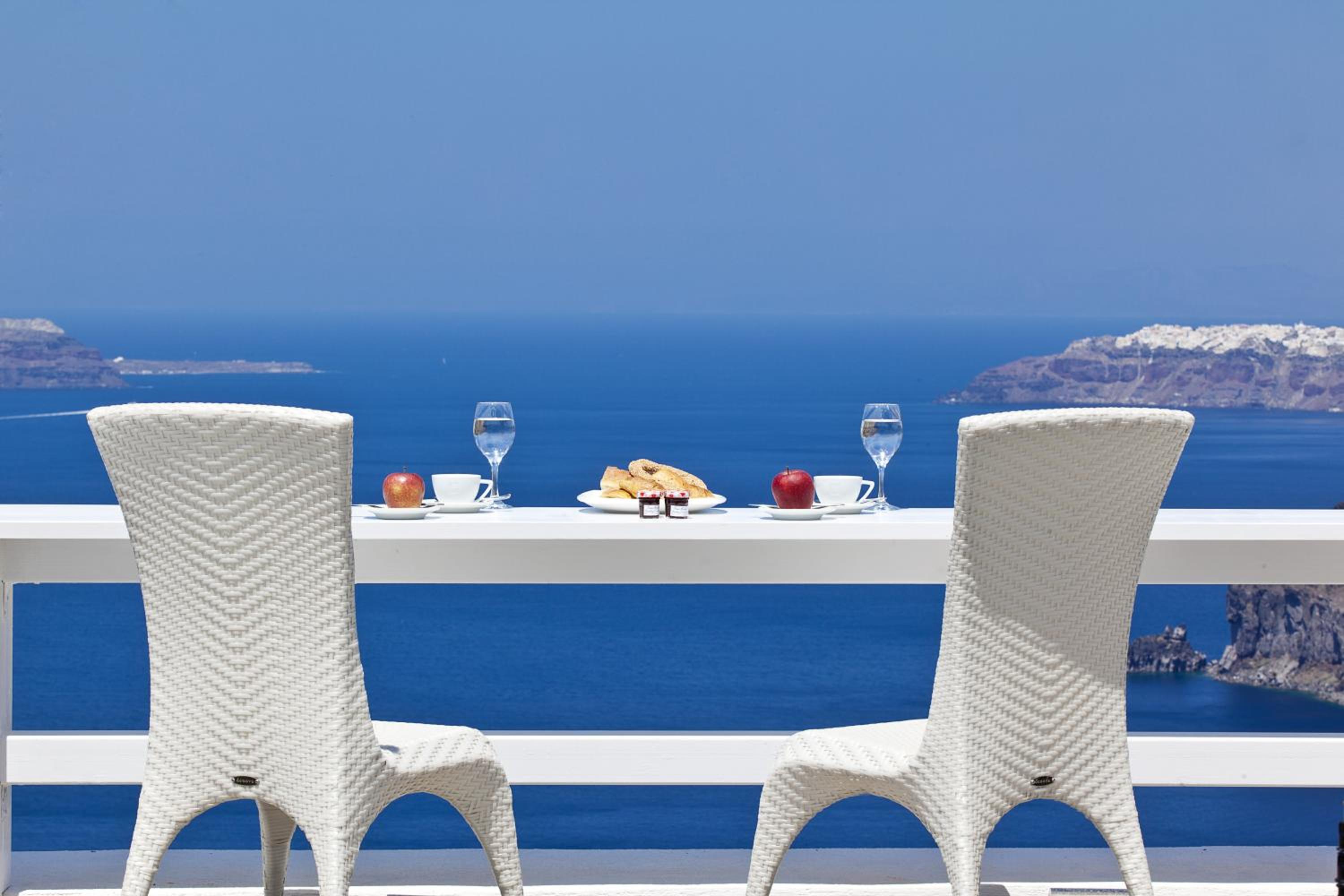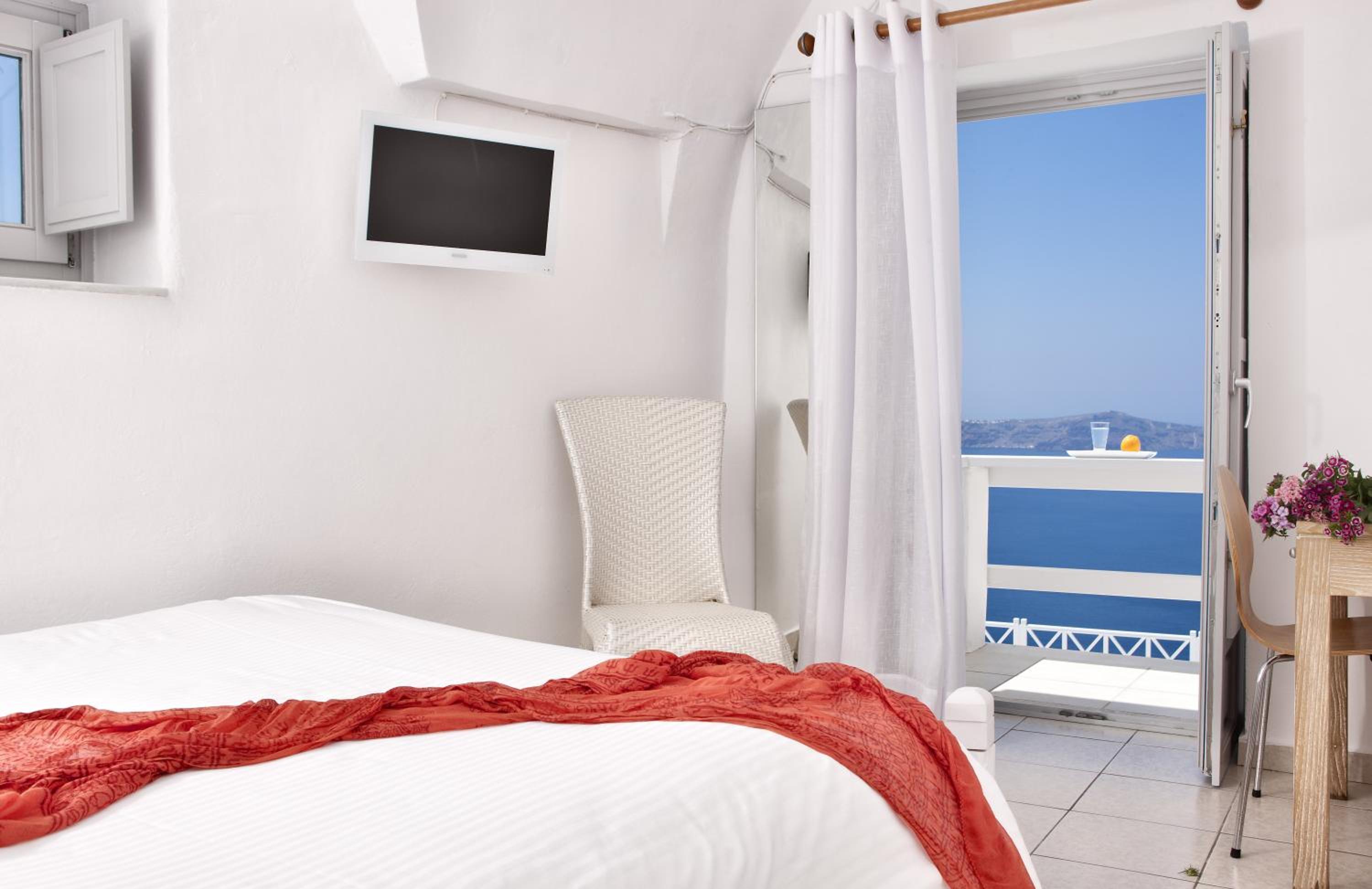 Hotel Thireas offers a modern accommodation facility with a traditional touch, situated on the edge of the caldera. Enjoy stunning views of the volcano and the sea from your room's balcony.