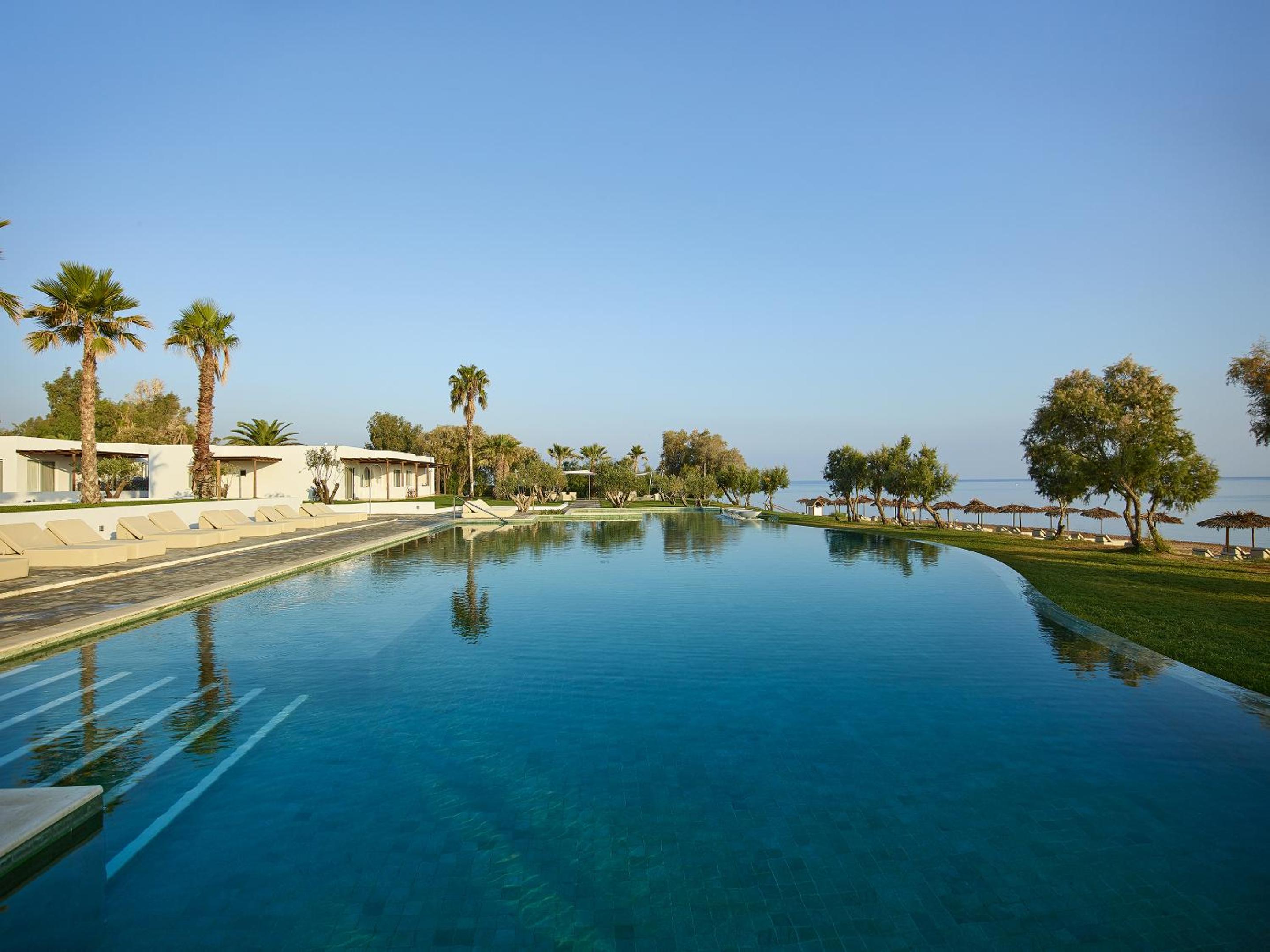 Casa Marron Grecotel All Inclusive Resort offers a wide range of luxurious amenities including indoor and outdoor pools, a garden, and a terrace for guests to unwind and relax.