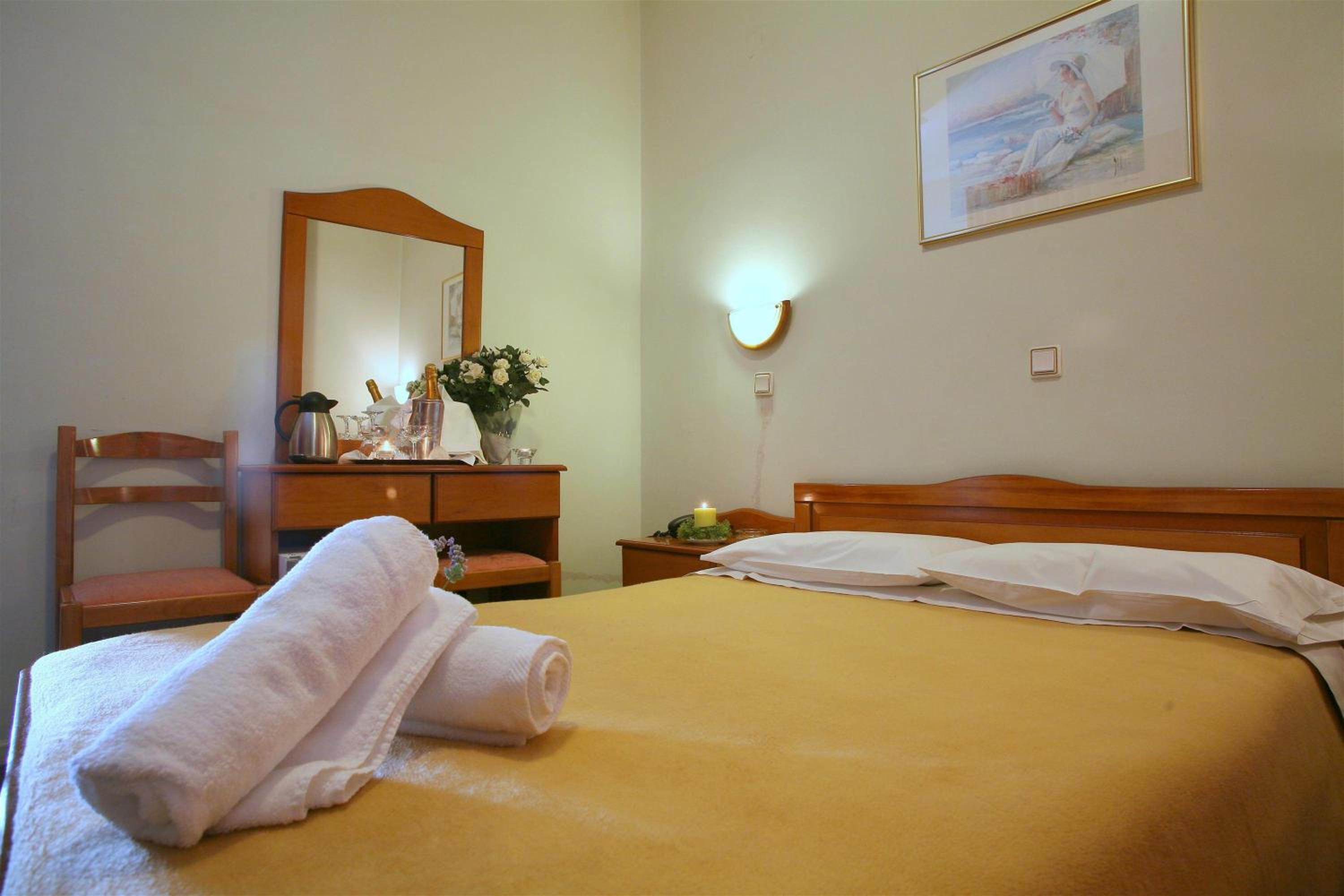 Experience comfort and relaxation in the heated and air-conditioned guestrooms at Oceanis, each featuring a balcony with stunning views of the mountain and seafront. Enjoy modern amenities such as a flat-screen cable TV, radio, and fridge, ensuring a pleasant stay.