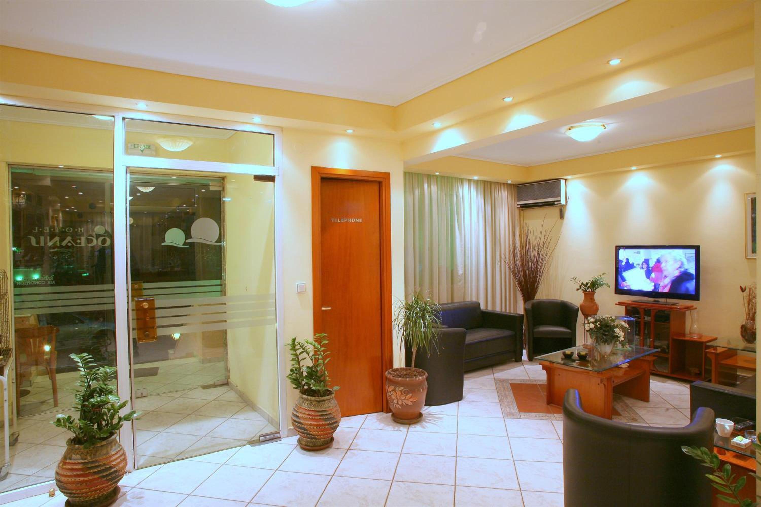 Good location for seafront with choice of bars and restaurants from fast food to fine dining. Many rooms with balconies and views of sea and Mount Olympus. Room and bathroom perfectly clean.