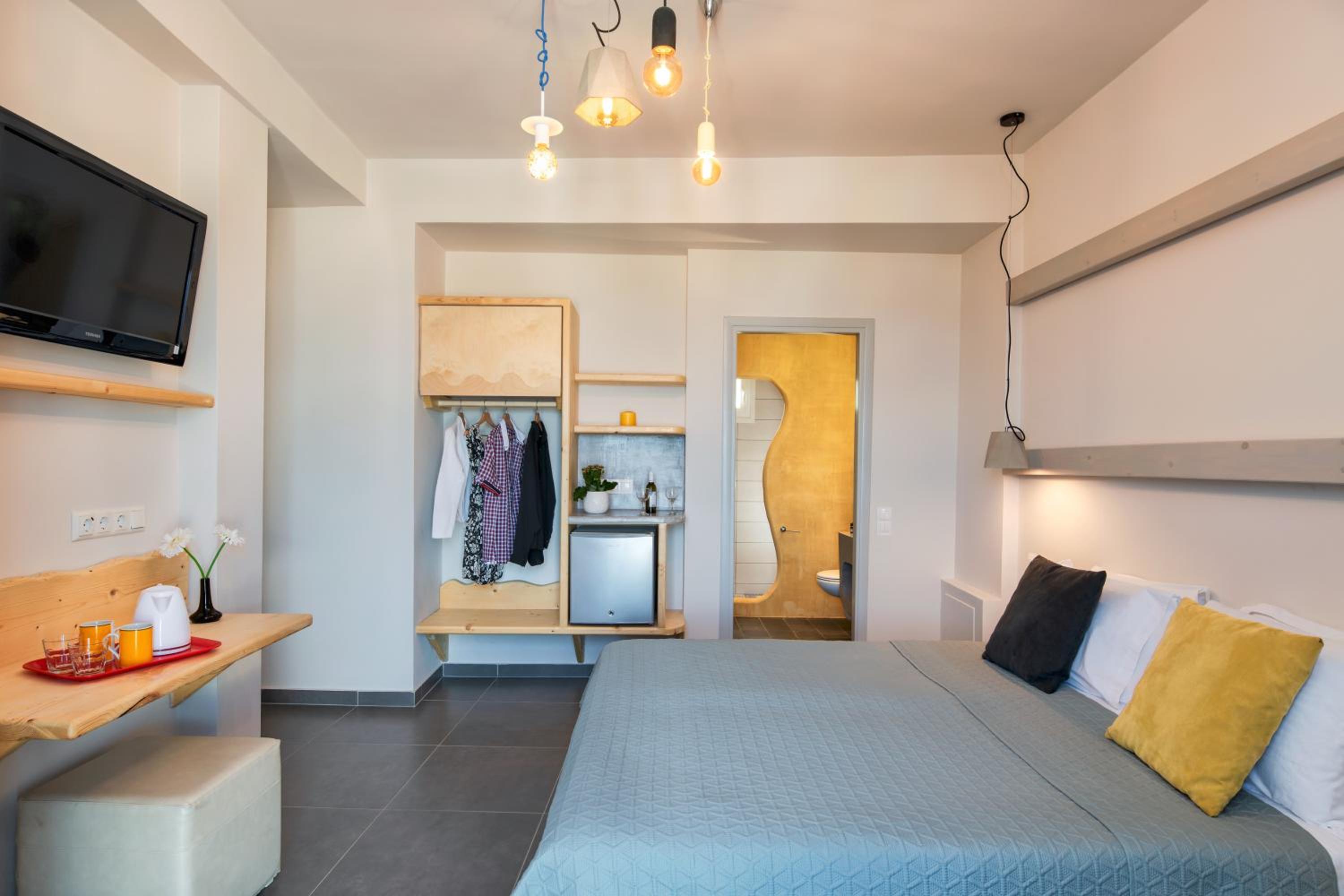 Indulge in the uniquely decorated bright rooms at Afrodete, each equipped with air-conditioning, a private bathroom, fridge, and TV. Select rooms even feature a balcony or veranda for a picturesque stay.