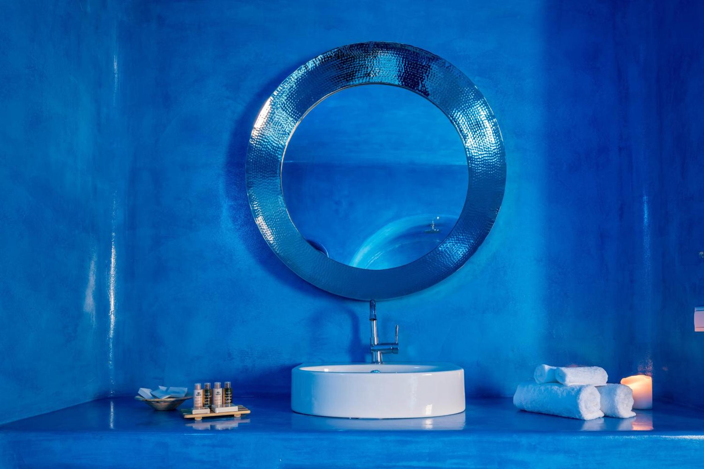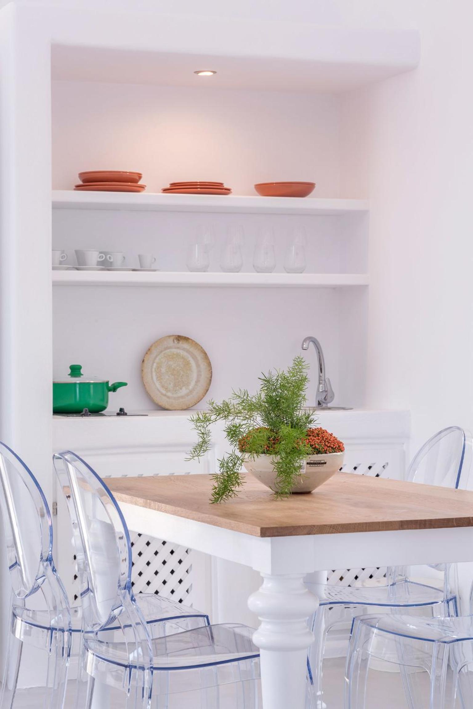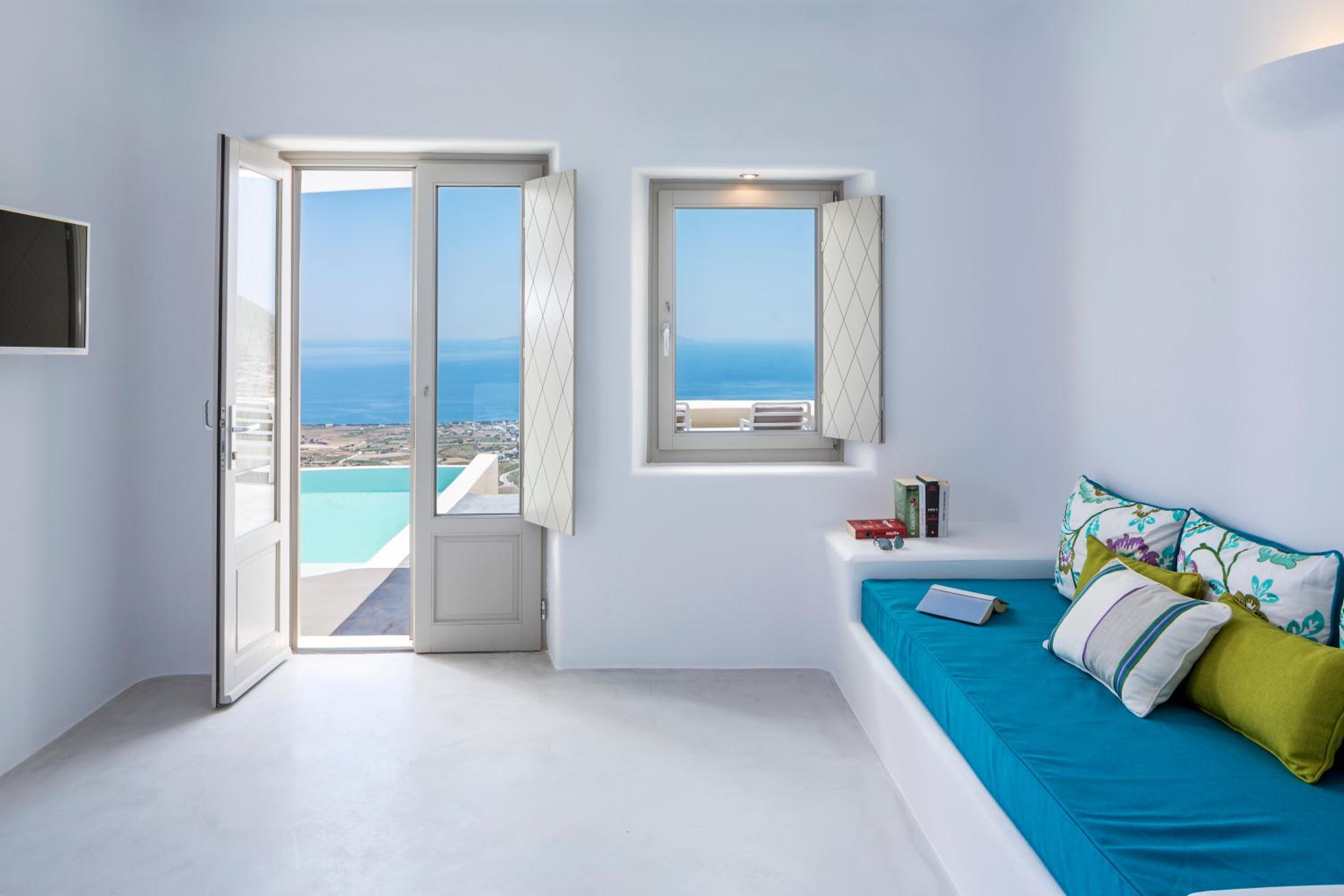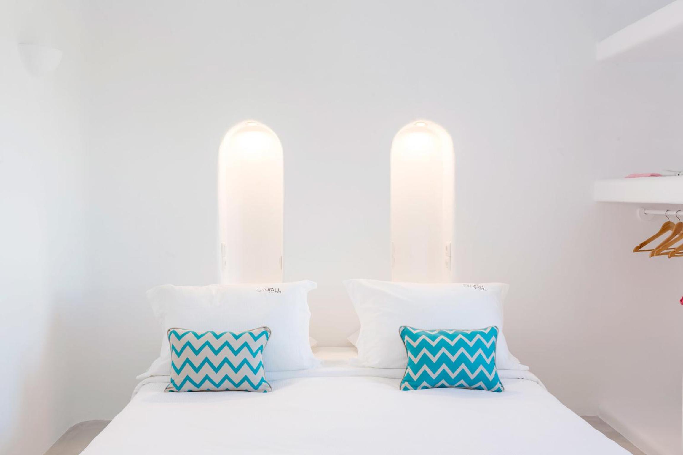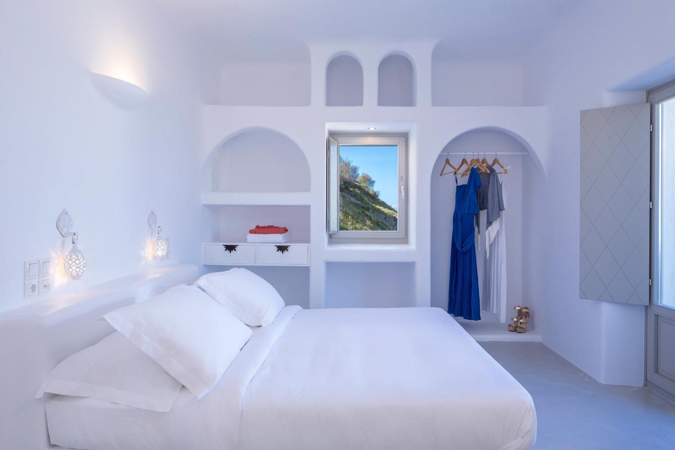 Skyfall Suites in Pyrgos Kallistis offers Cycladic-style suites with private pools or outdoor hot tubs, providing a luxurious and relaxing stay. The minimally decorated suites feature air conditioning, kitchenette, and modern amenities like a flat-screen TV and complimentary toiletries.