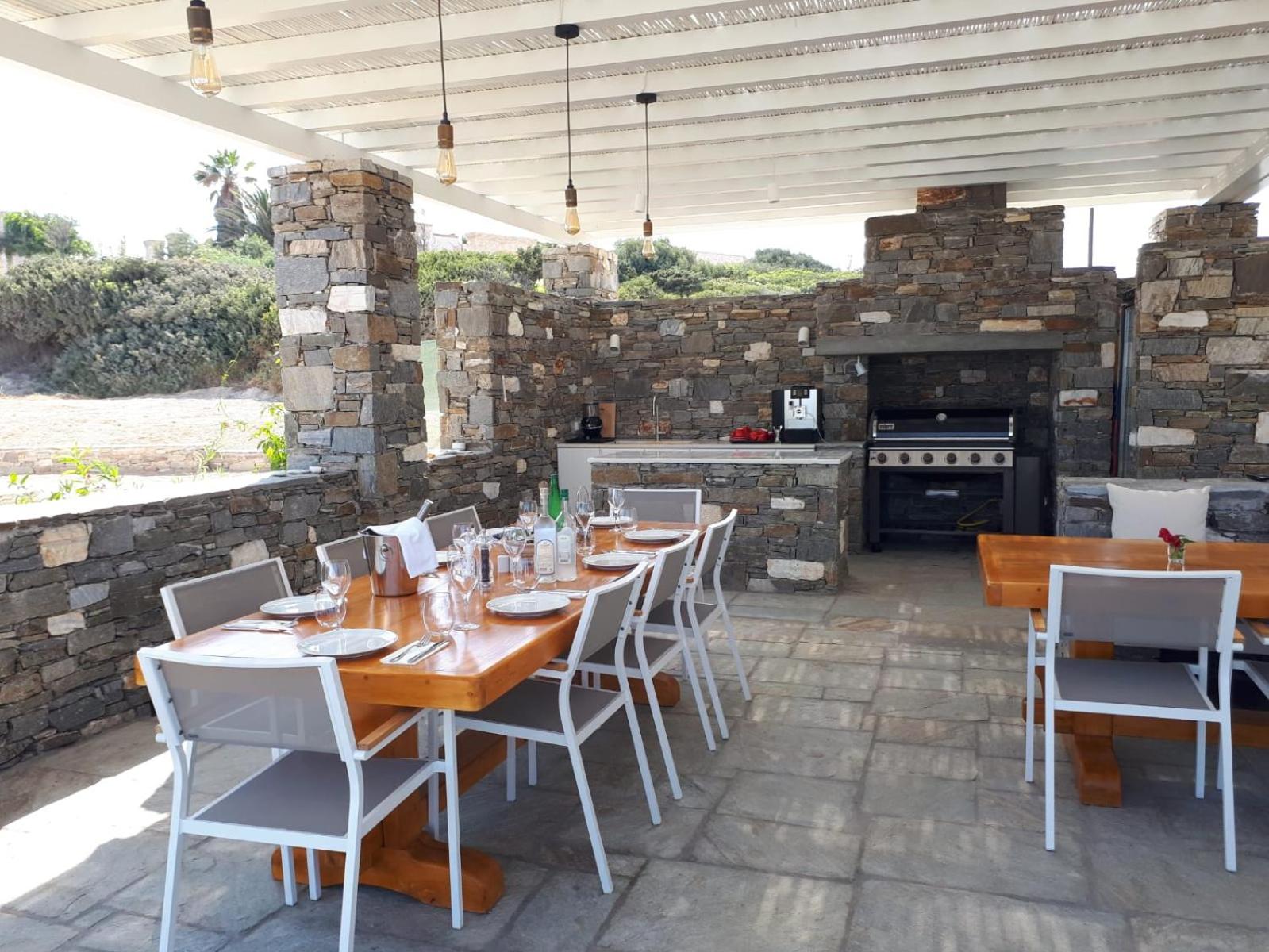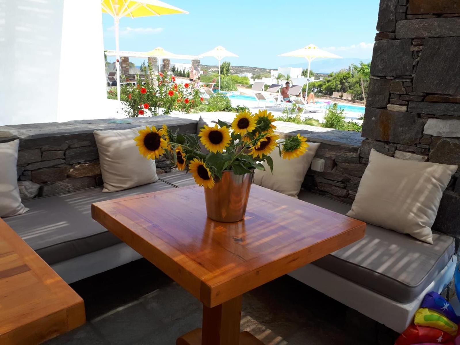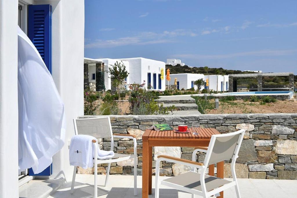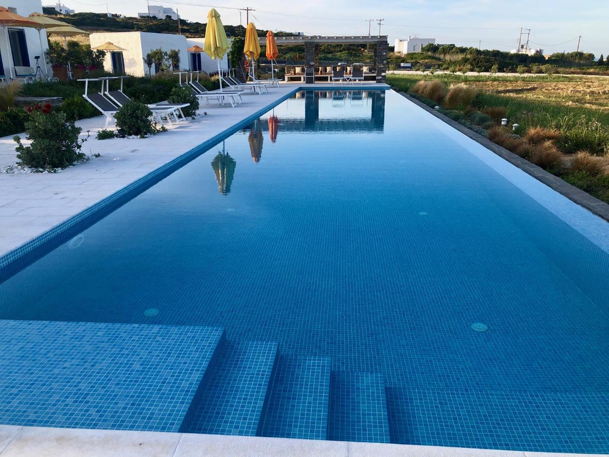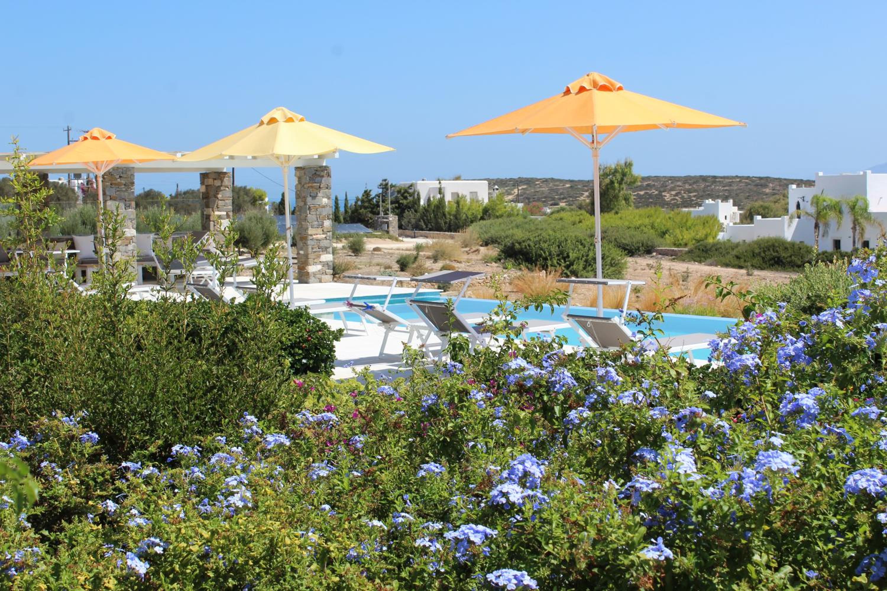 Stunning view of the sea and Naxos; beautiful landscaping; lovely staff, Joanna who manages the property is friendly and happy to help with anything; the salt-water pool is wonderful