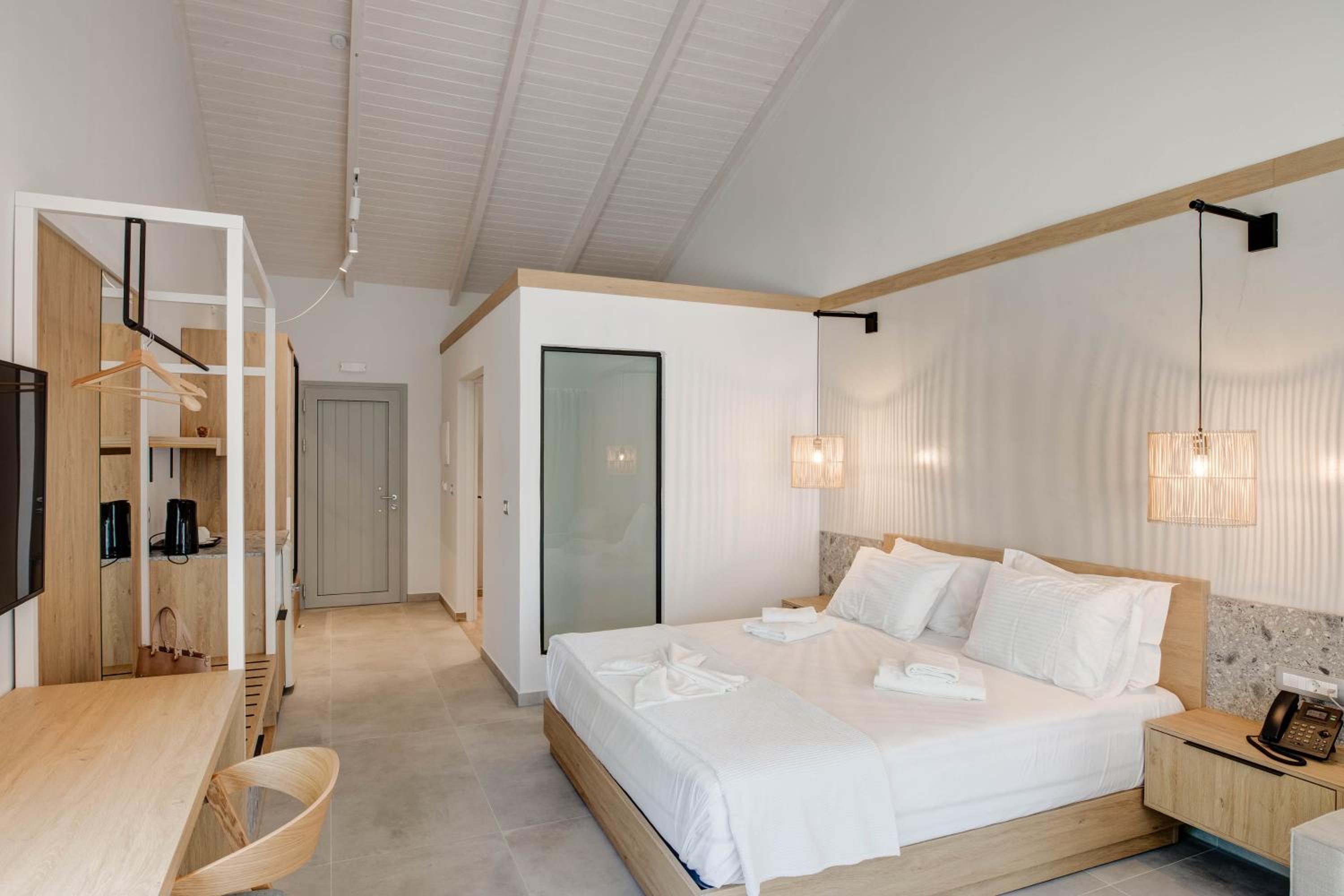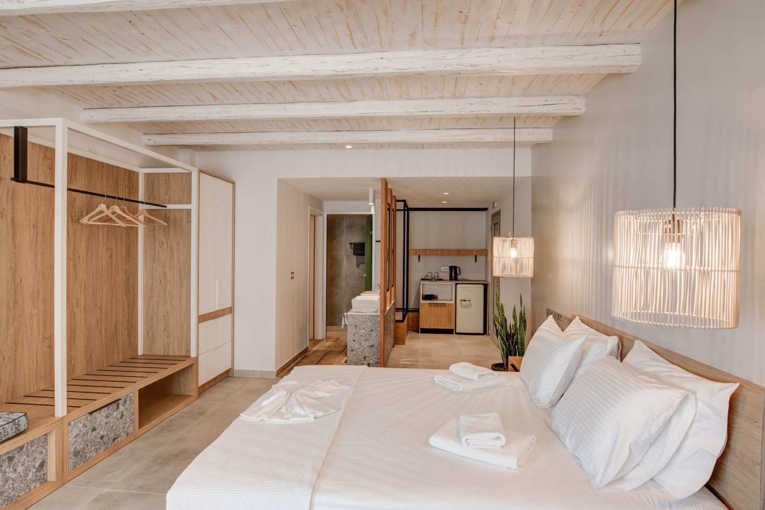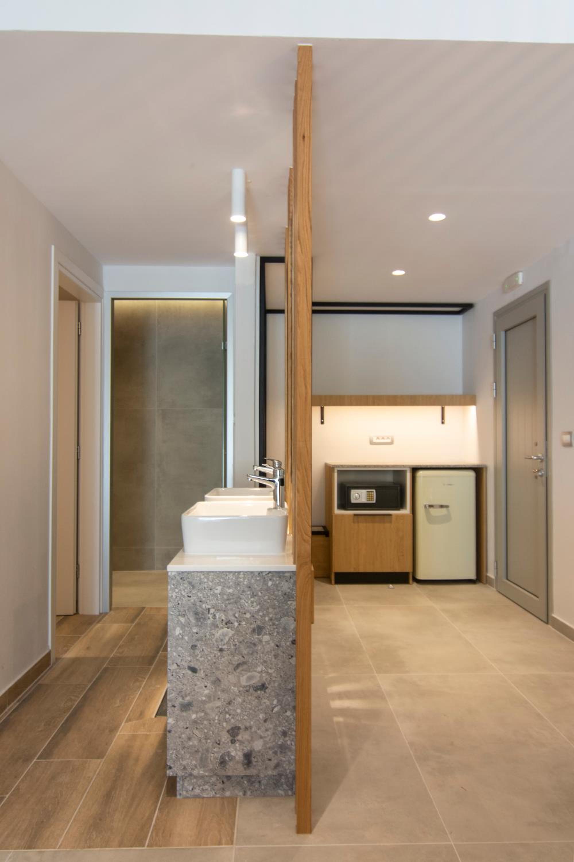 A new and very beautiful place near the seaside. Everything was super clean and carefully arranged. Quiet and relaxing environment, ideal for a vacation. The staff was very kind and welcoming. We will definitely come back again!