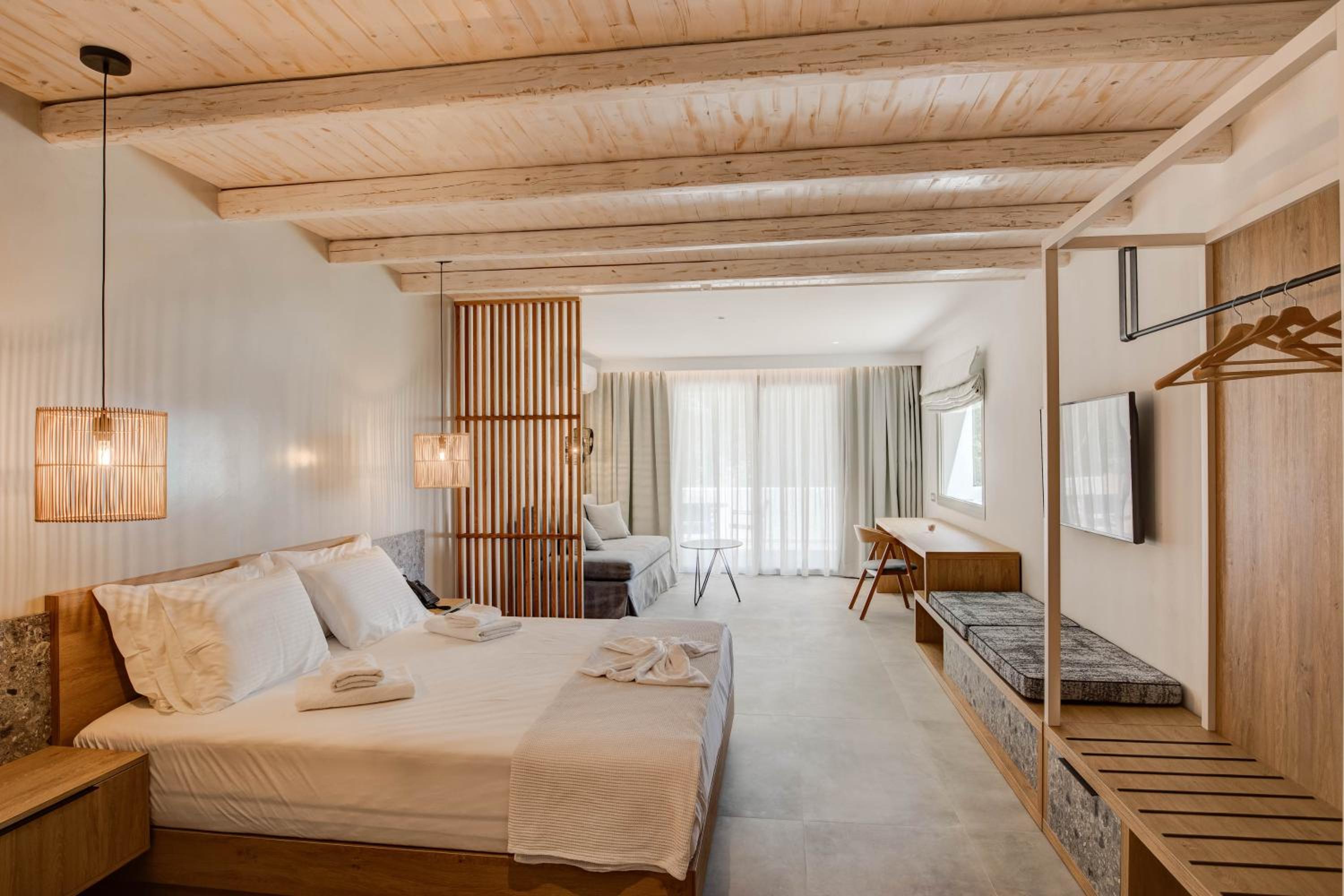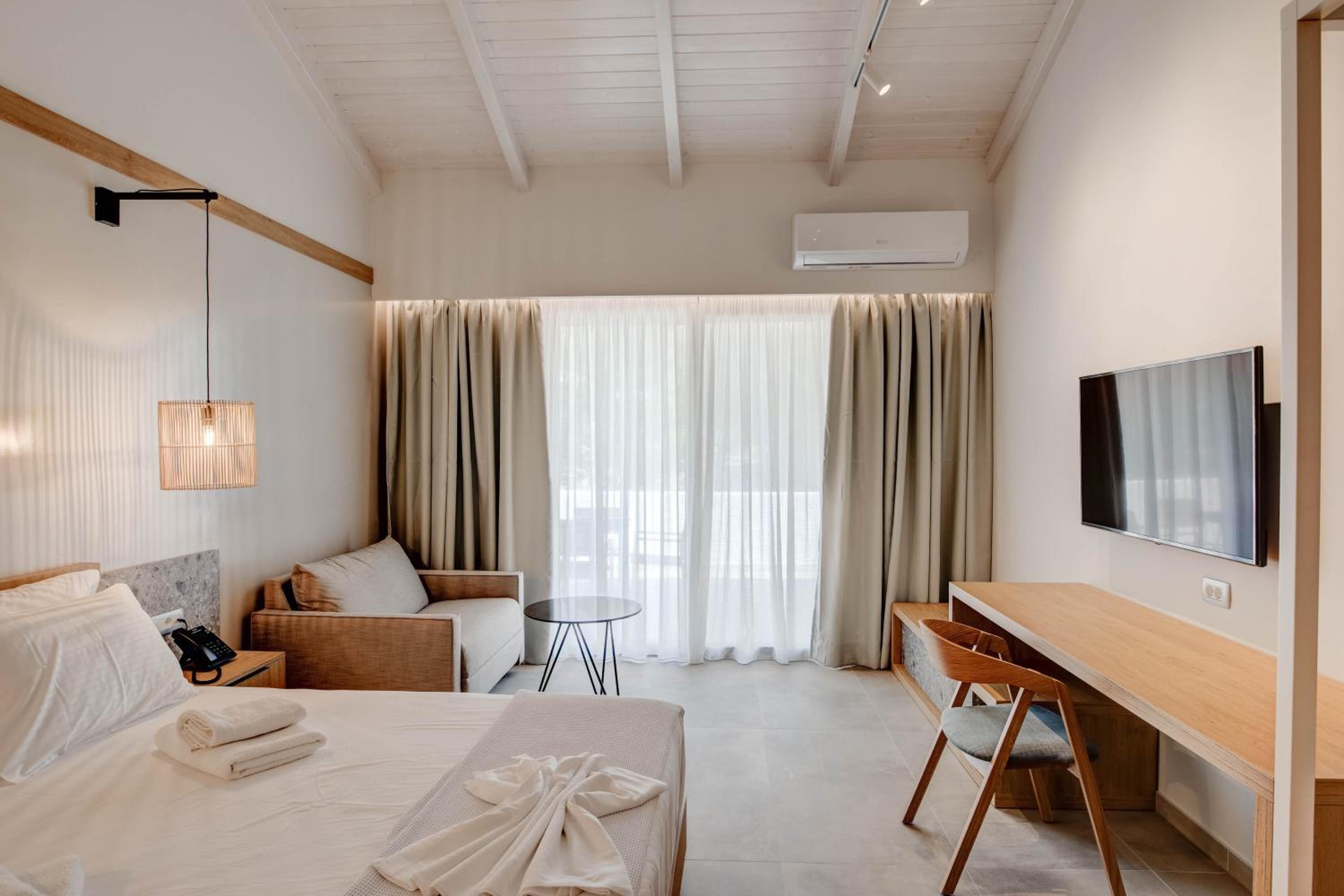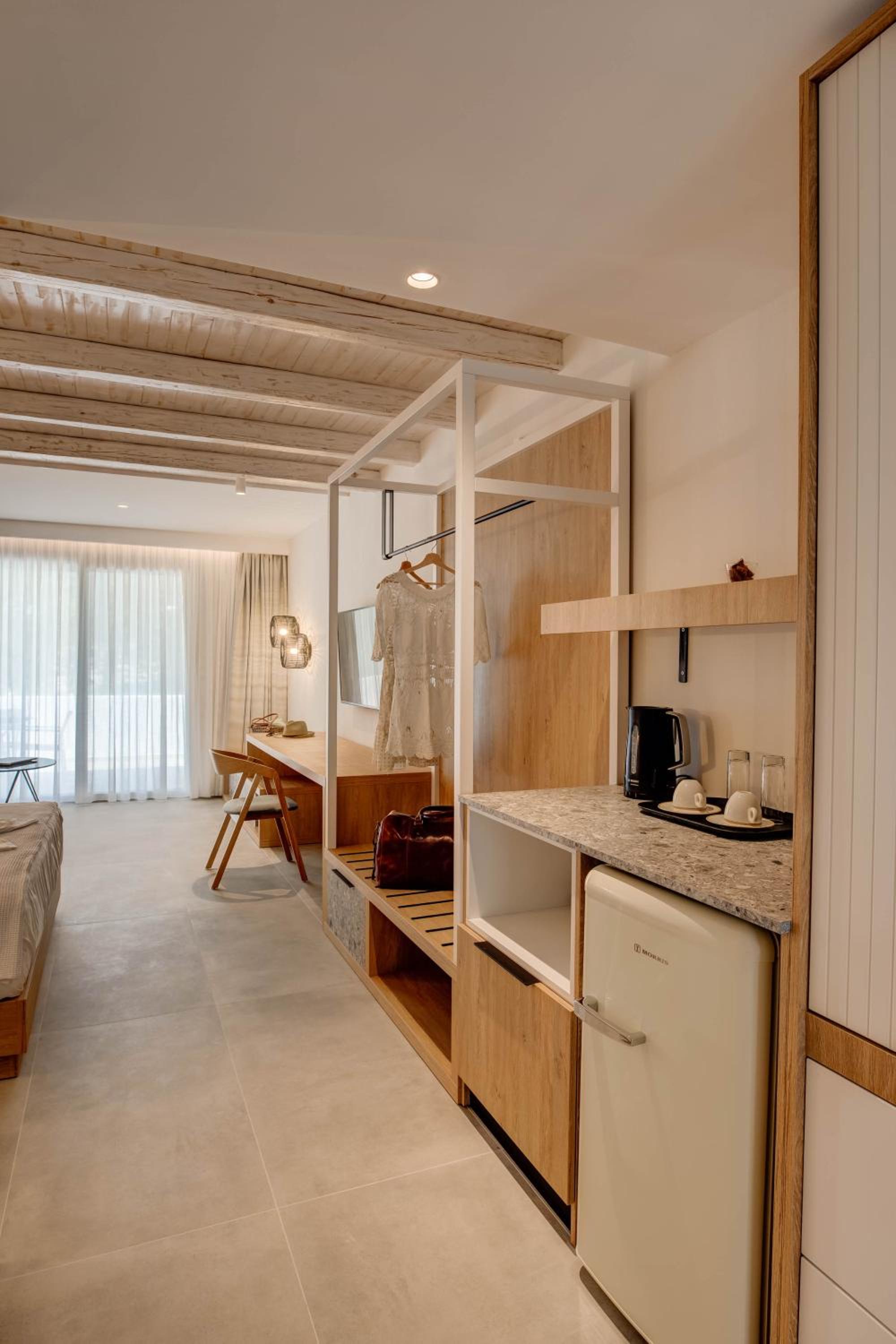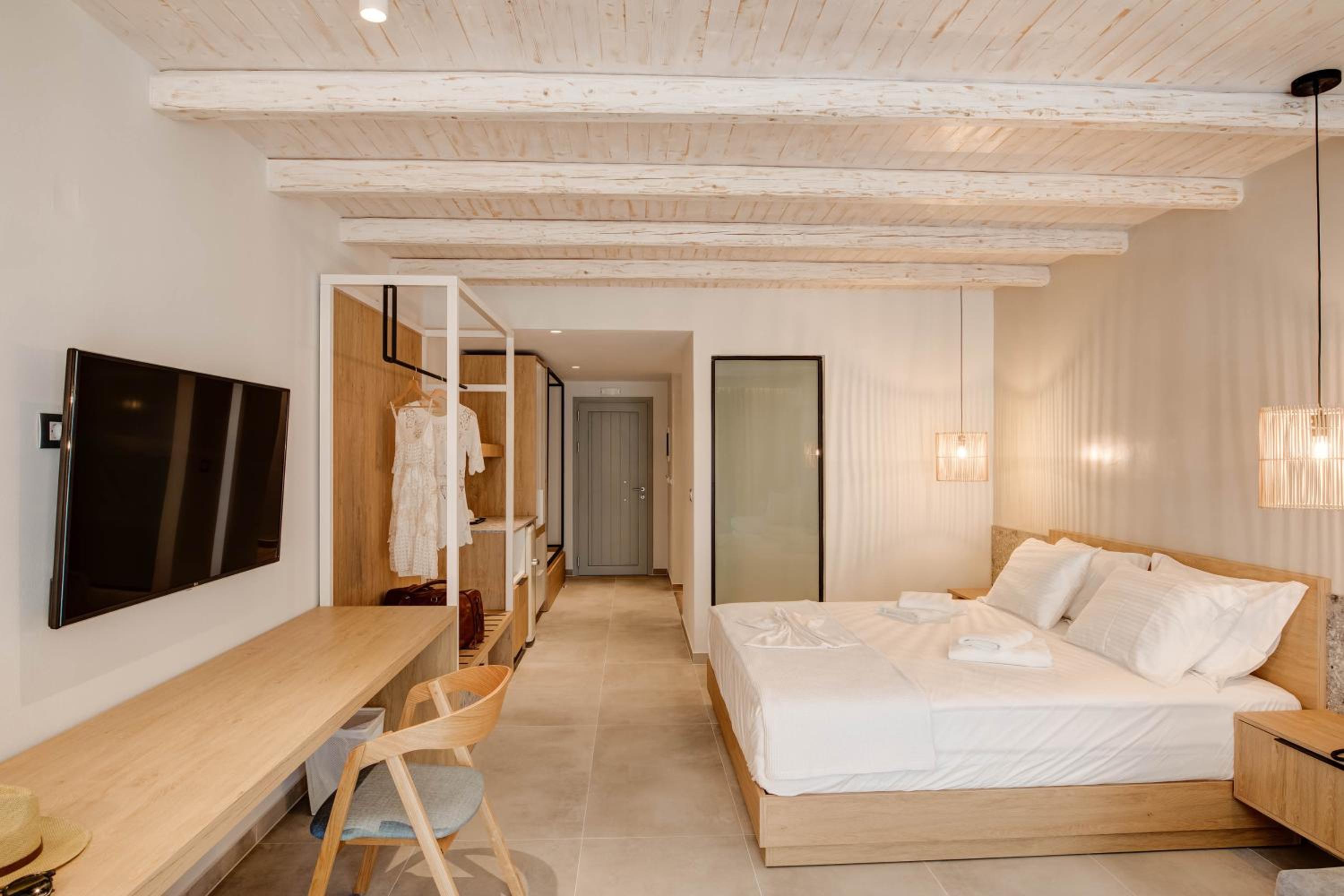 A new and very beautiful place near the seaside. Everything was super clean and carefully arranged. Quiet and relaxing environment, ideal for a vacation. The staff was very kind and welcoming. We will definitely come back again!
