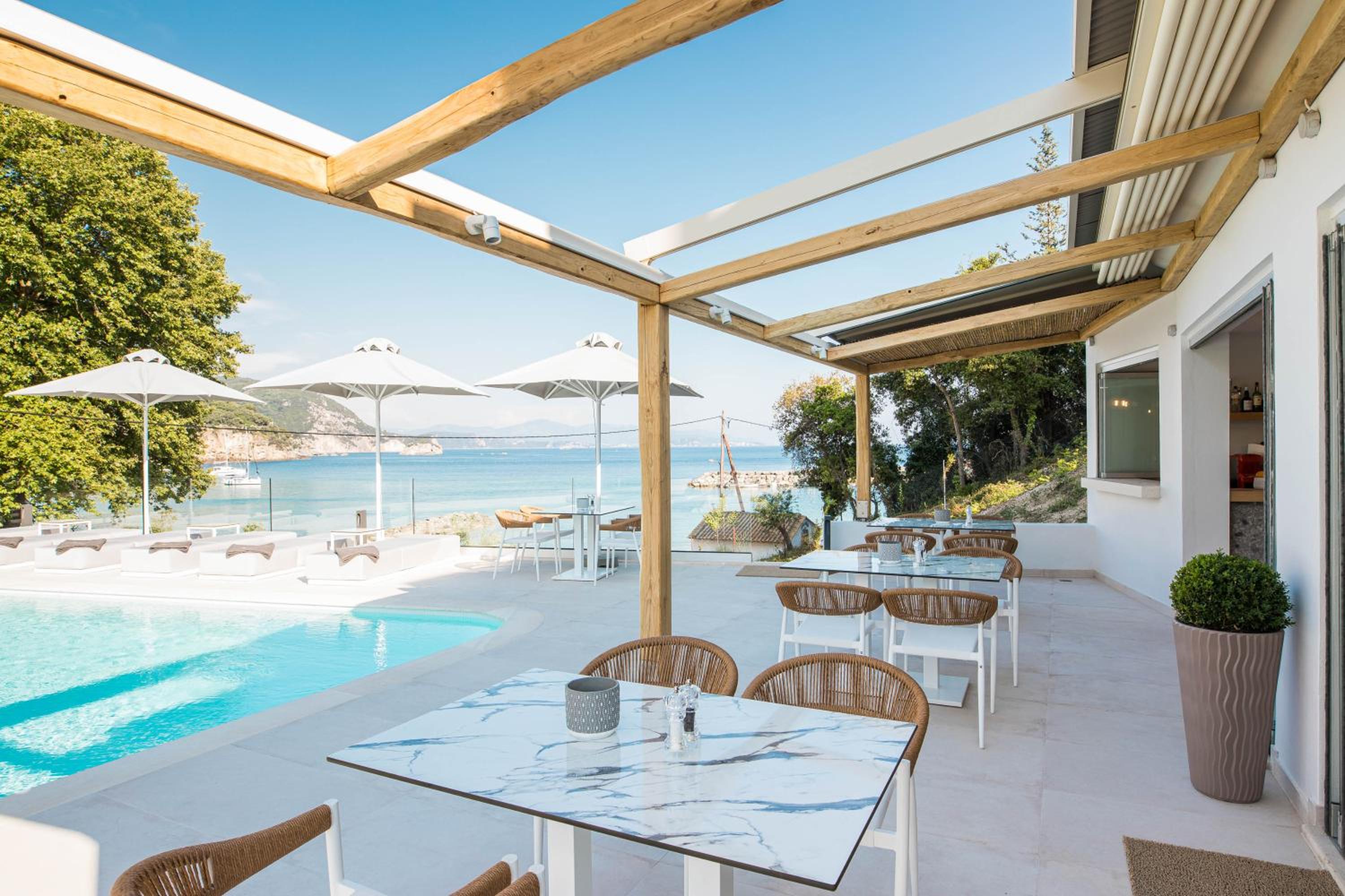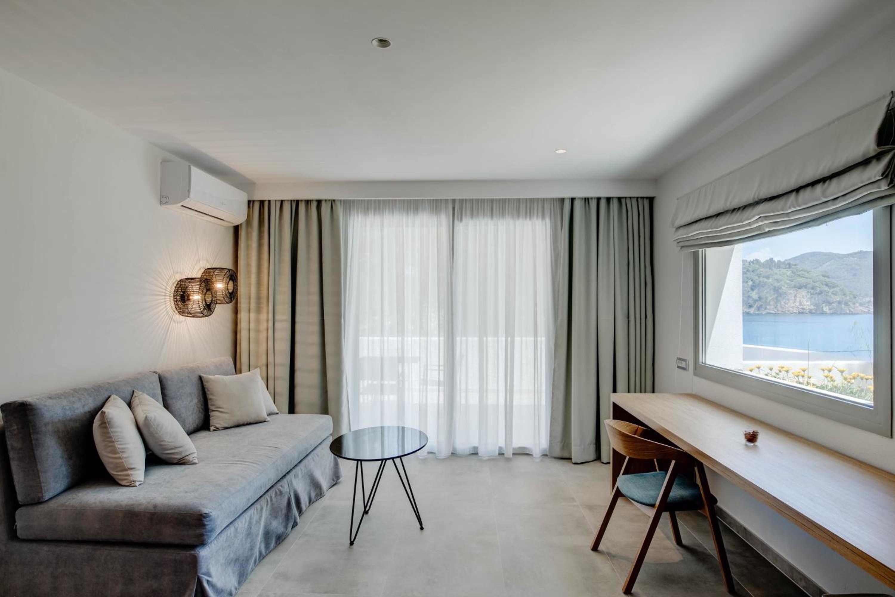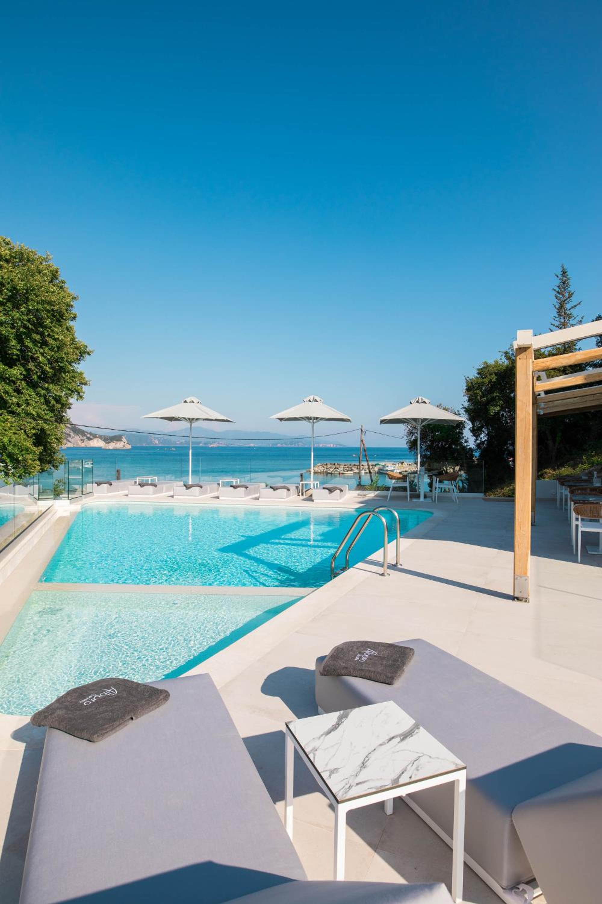 Otroligt stilren och fräsch inredning, utmärkt mat och fantastiskt trevlig personal! Hotellet har bara några få rum och man känner sig verkligen välkommen och hotellägaren är otroligt trevlig, hjälpsam och familjär. Sen kommer vi till läget, det går inte att hitta ett bättre läge på Valtos! Enastående utsikt över havet från rummen, poolen och restaurangen och bara några få steg ner till den egna stranden med solbäddar. Bara för hotellets gäster, lugnt och avskilt. Vi älskade Alboro och kommer definitivt åka tillbaka, stället har allt man kan önska!