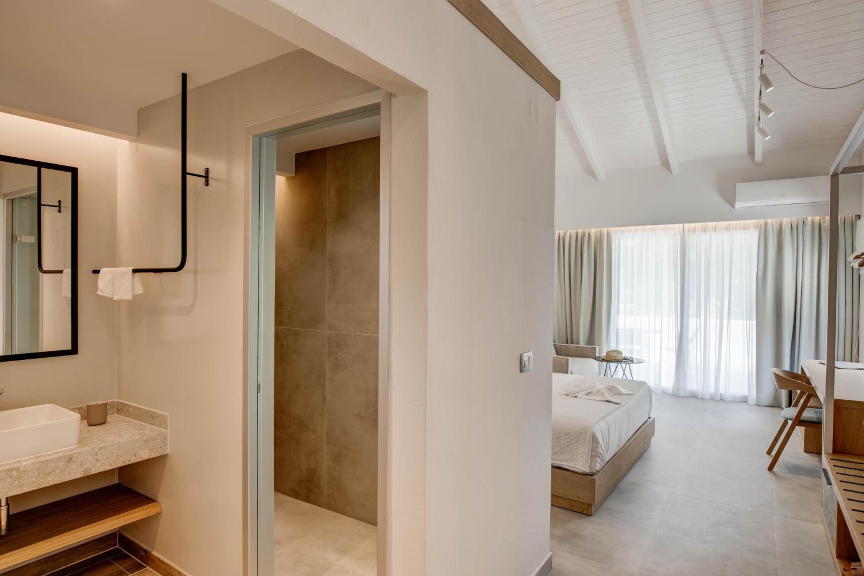 Alboro seaside suites, nestled just steps away from Valtos Beach in Parga, offers a serene escape with a seasonal outdoor pool, lush gardens, and a cozy shared lounge. The rooms boast modern amenities including air conditioning, private balconies overlooking the sea, and comfortable bedding. Guests can unwind by the pool or enjoy a refreshing drink at the on-site bar.