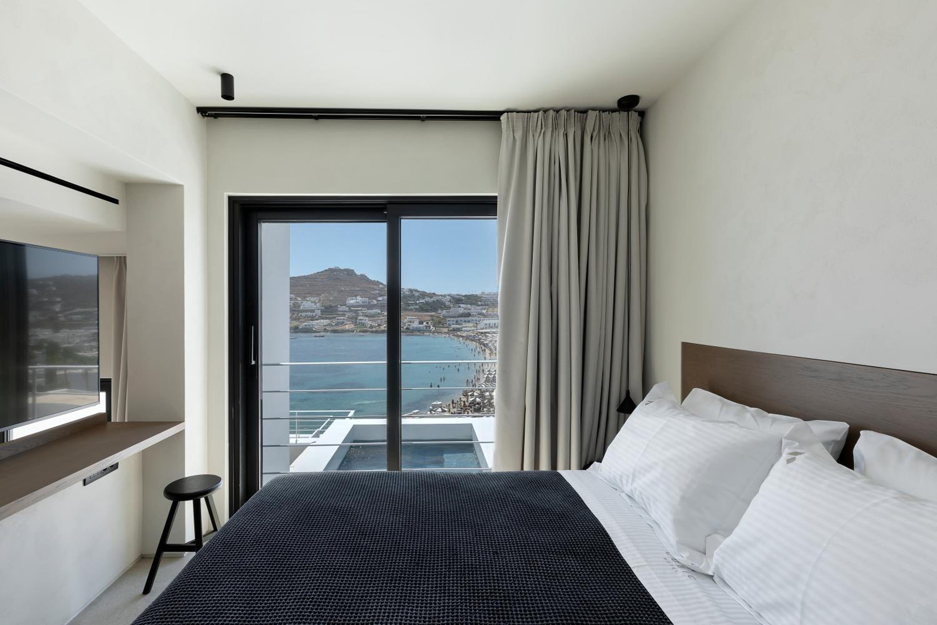Experience luxury and comfort at CUBIC Mykonos Seafront Design Suites - book now for an unforgettable seaside getaway!