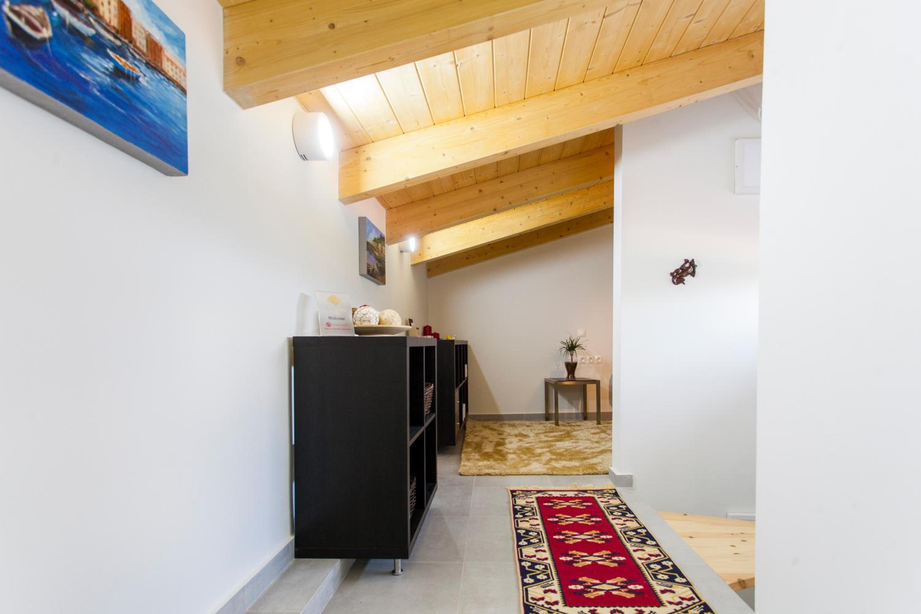 Tolle Lage, attraktiv gebaute Anlage, top modern und geschmackvoll eingerichtete Apartments, entzückender kleiner Steig/Treppchen zum Meer mit gutem Felseinstieg ins kristallklare Wasser. Sehr nette Gastgeber.