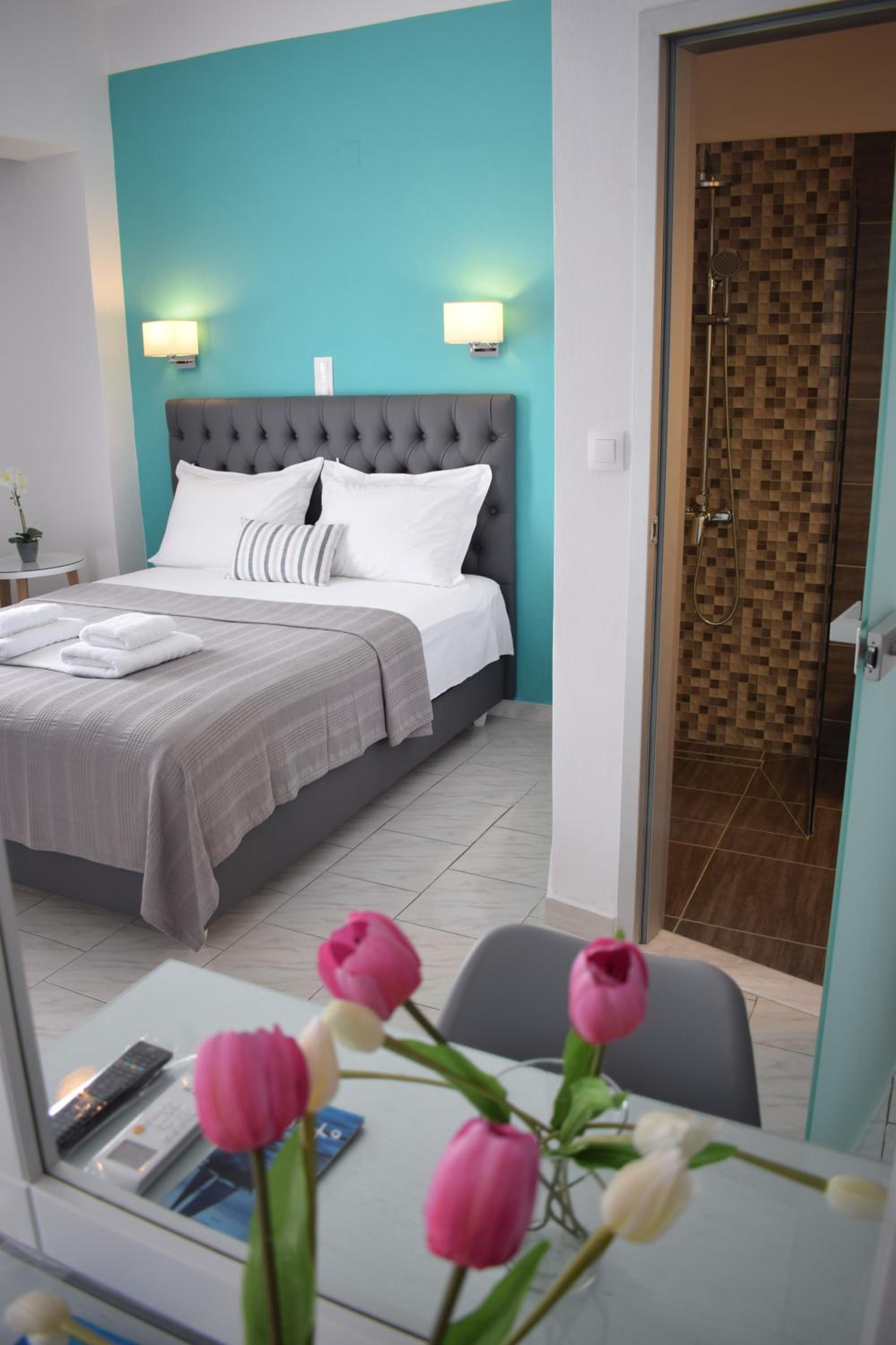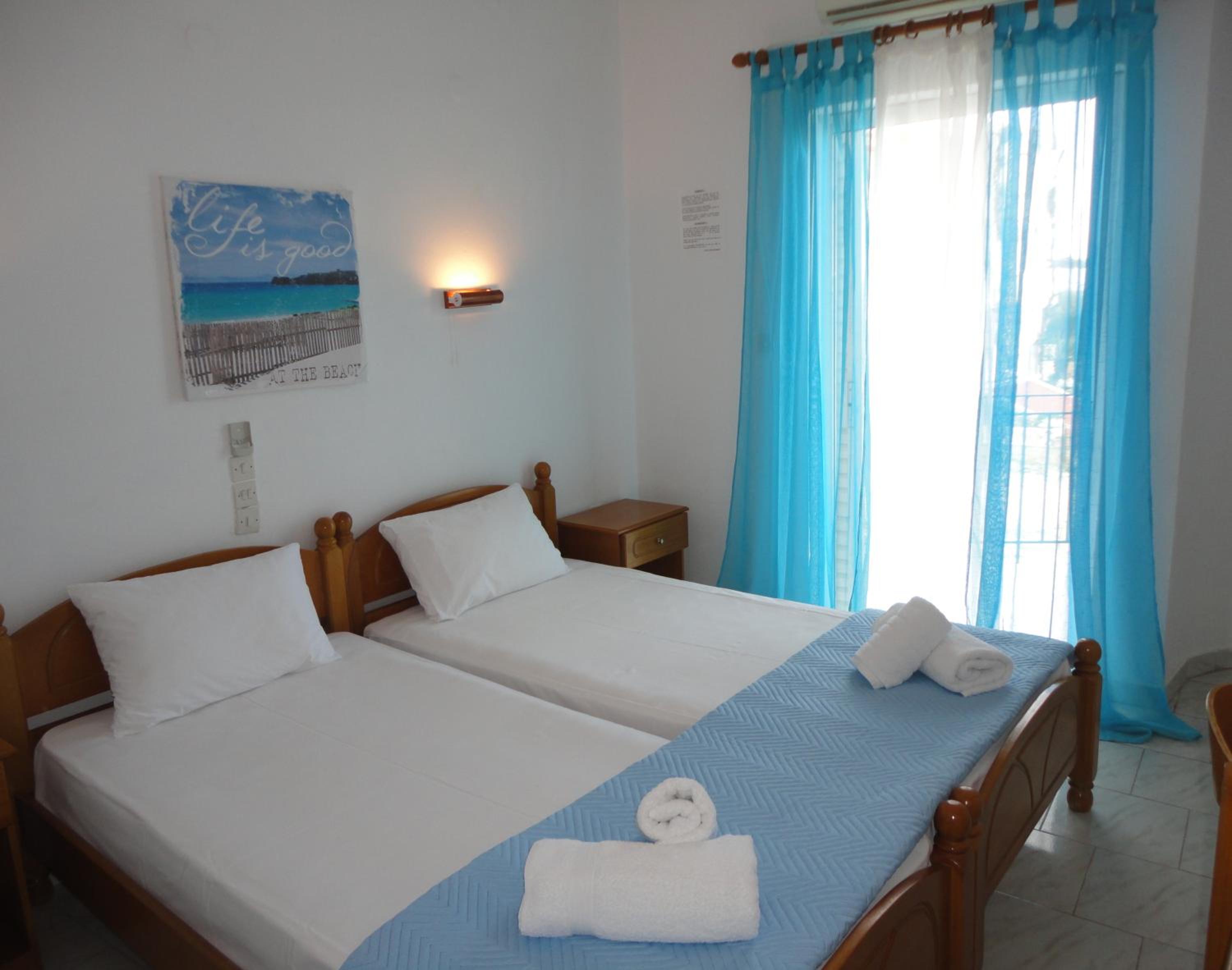 Experience the ultimate beach getaway at Mirto Beach Hotel & Restaurant, located directly on the sandy Blue Flag beach of Vrachos in Preveza. Enjoy complimentary sun loungers, umbrellas, and stunning sea views from your private balcony.
