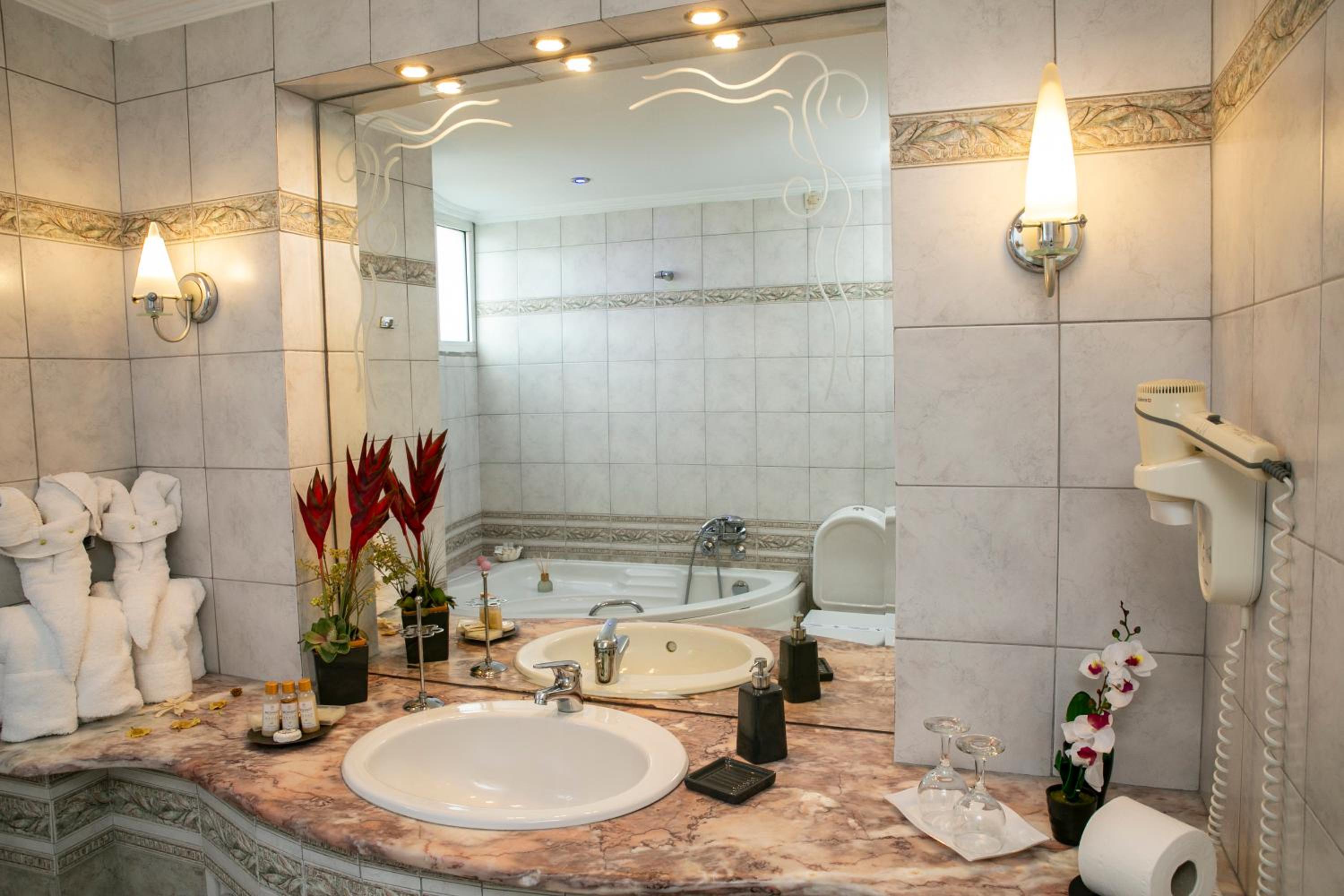 Indulge in well-appointed rooms boasting air conditioning, satellite TV, and direct-dial telephone. For added convenience, ironing facilities and a hair dryer are provided, with some rooms even featuring a luxurious spa bath for ultimate relaxation.