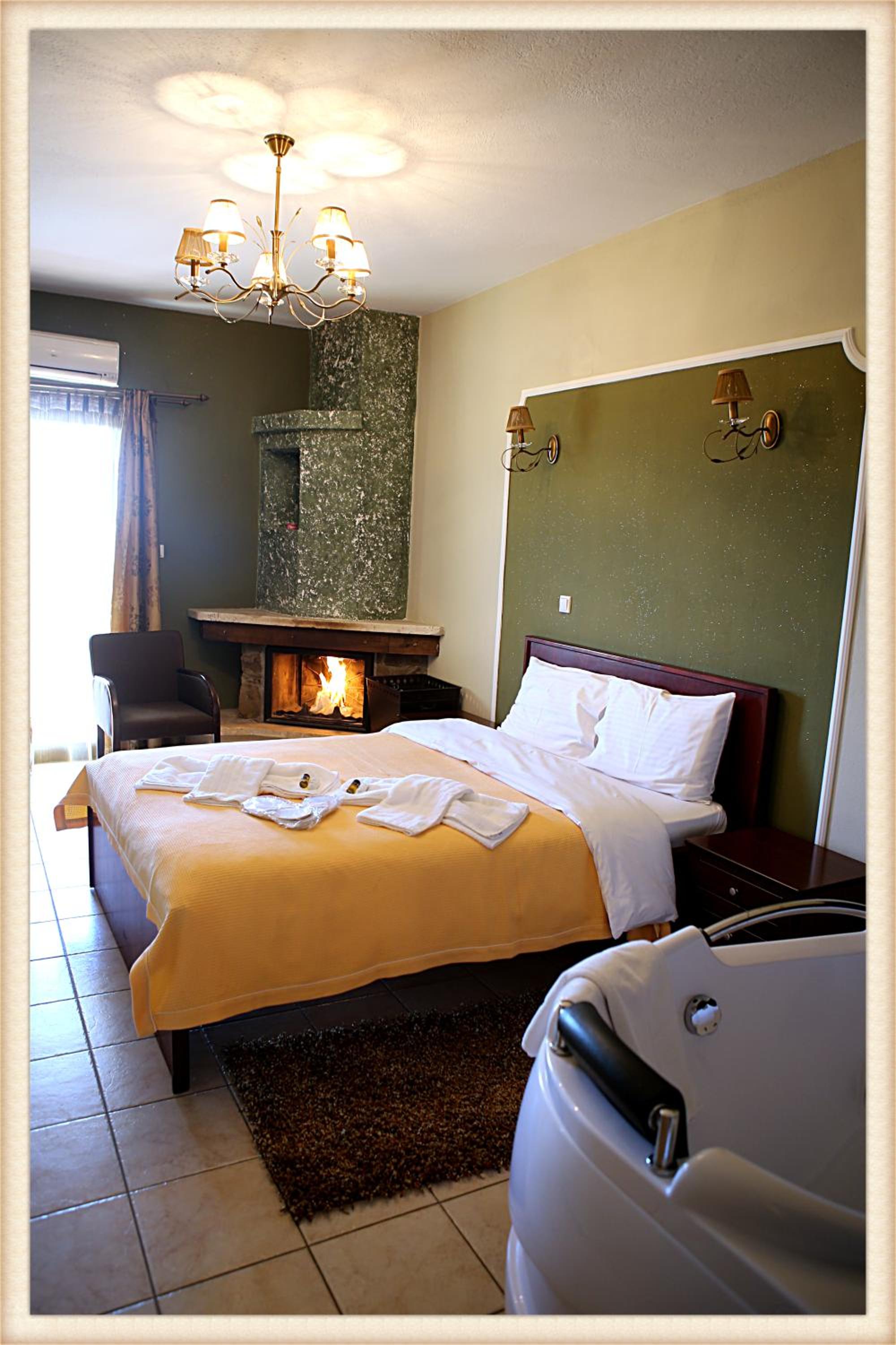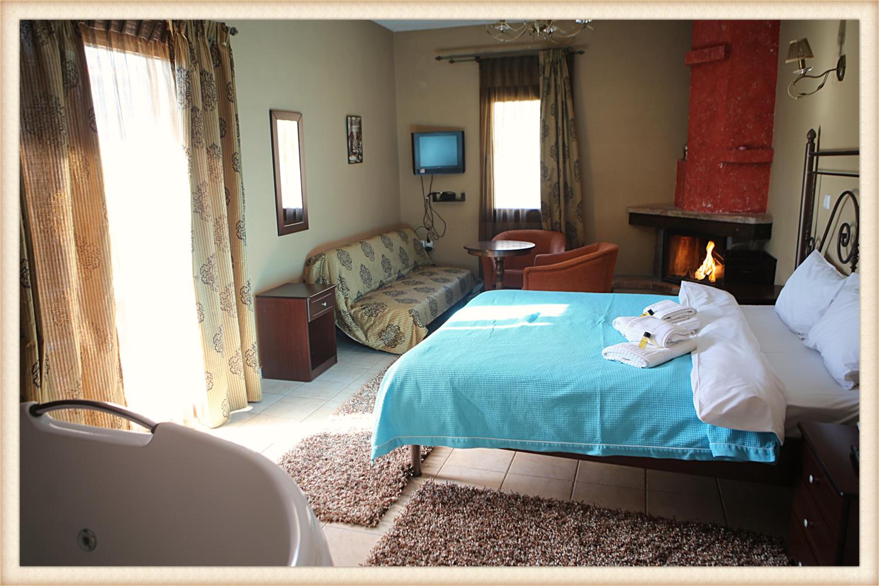 Voreas Hotel, just 1.5 km from Pozar hot springs, offers a luxurious stay with stunning views of Kaimaktsalan Mountain. The spacious units feature wooden-beamed ceilings, fireplaces, and living areas with flat-screen TVs. Indulge in herbal toiletries and hydromassage showers in the private bathrooms, and enjoy a complimentary bucket of firewood for your cozy nights.