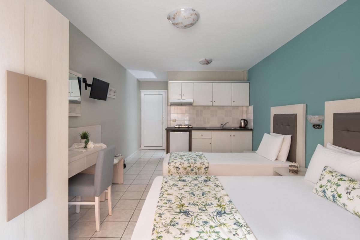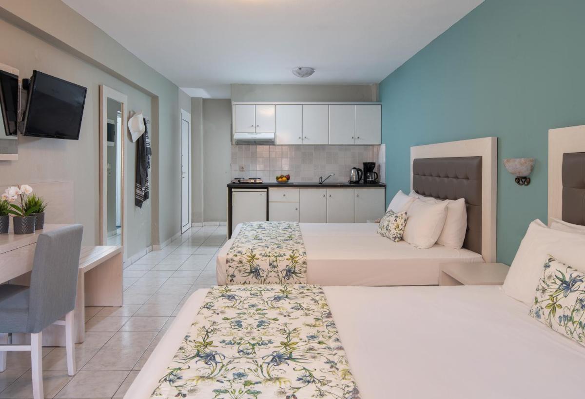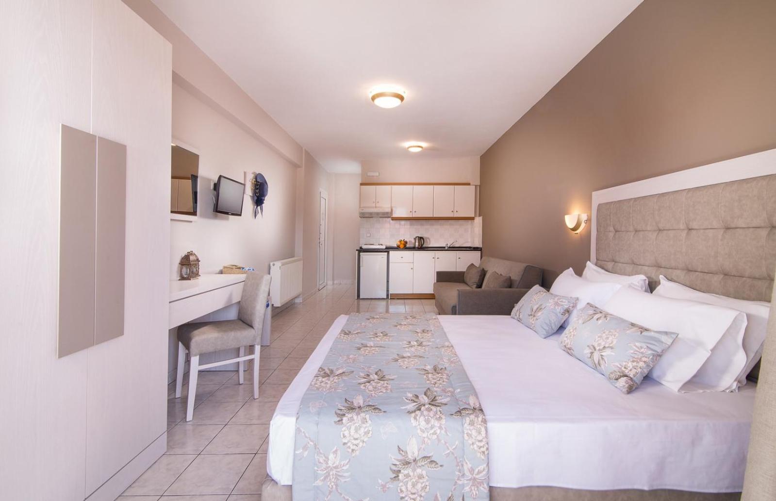 Hotel Olga is nestled in the picturesque town of Sarti, surrounded by the stunning Macedonia region. Just a short stroll away from both Sarti Beach and Achlada Beach, guests can enjoy the sun, sand, and crystal-clear waters at their convenience.