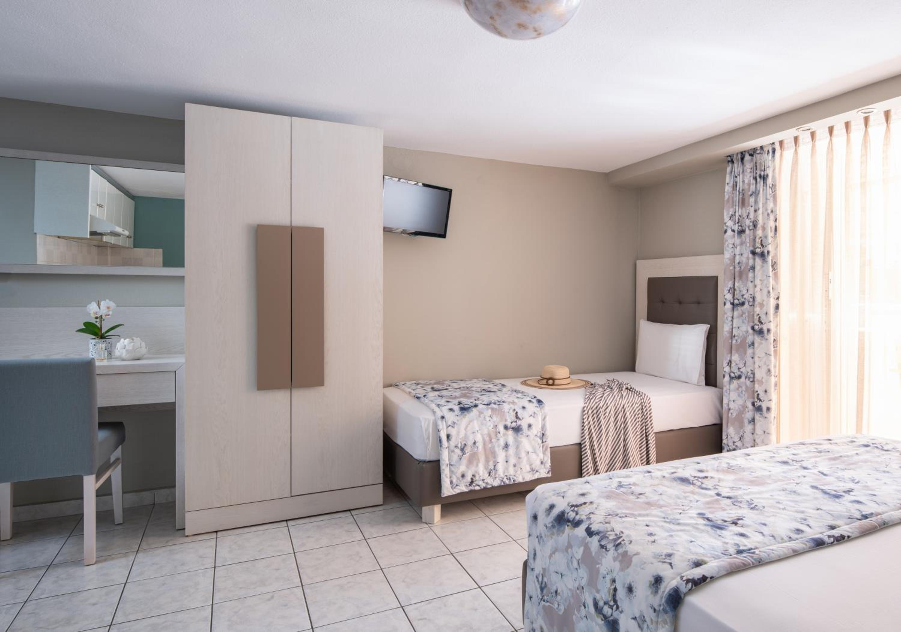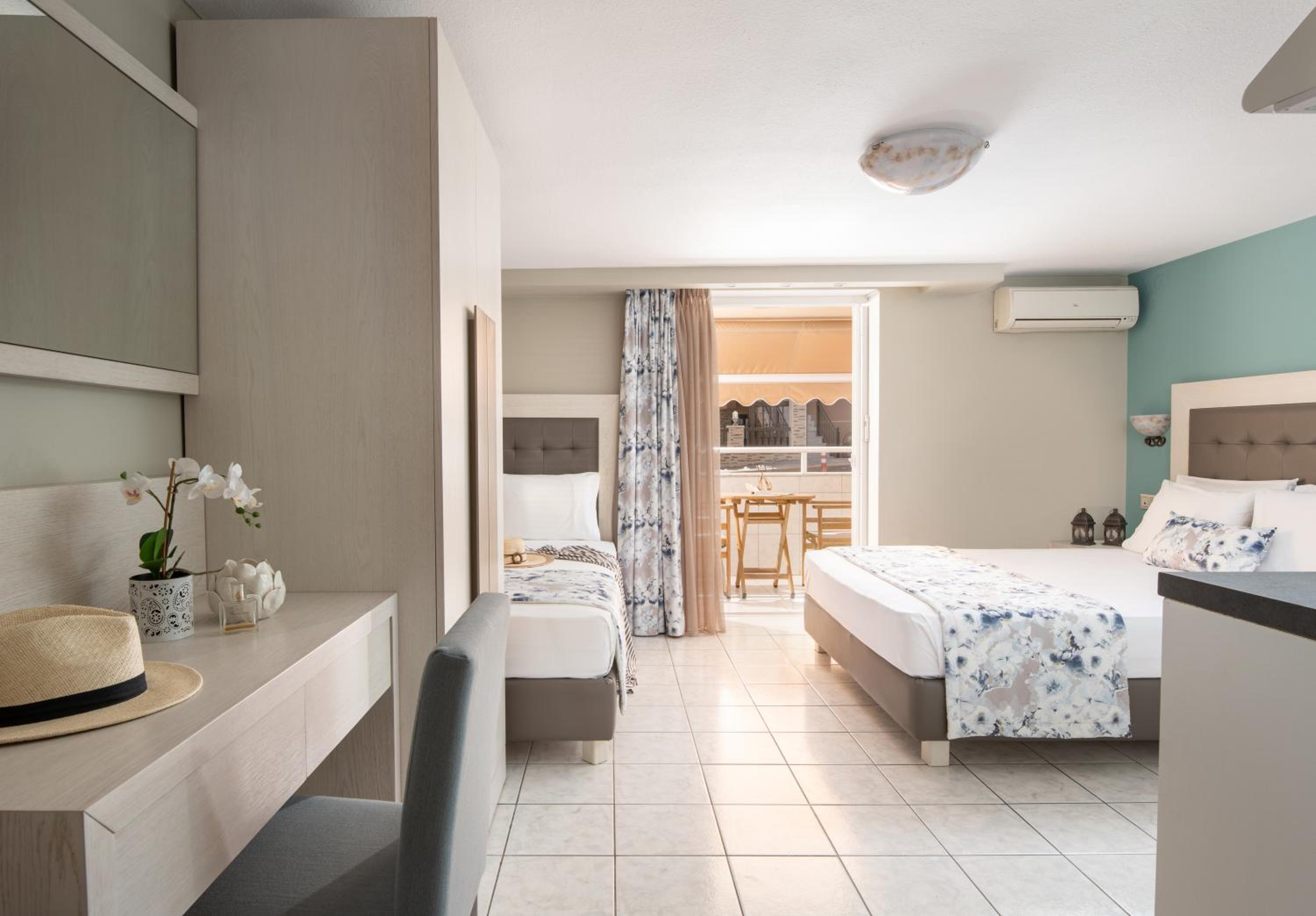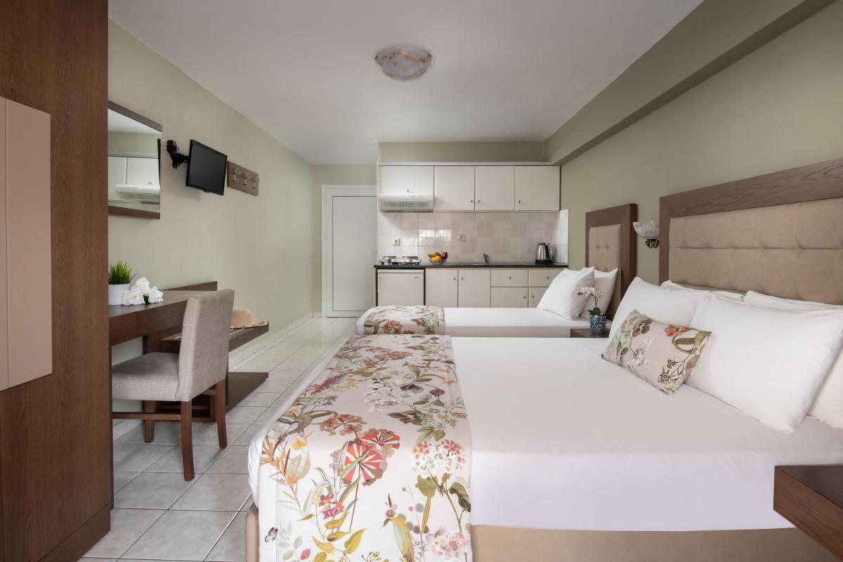 Hotel Olga is nestled in the picturesque town of Sarti, surrounded by the stunning Macedonia region. Just a short stroll away from both Sarti Beach and Achlada Beach, guests can enjoy the sun, sand, and crystal-clear waters at their convenience.