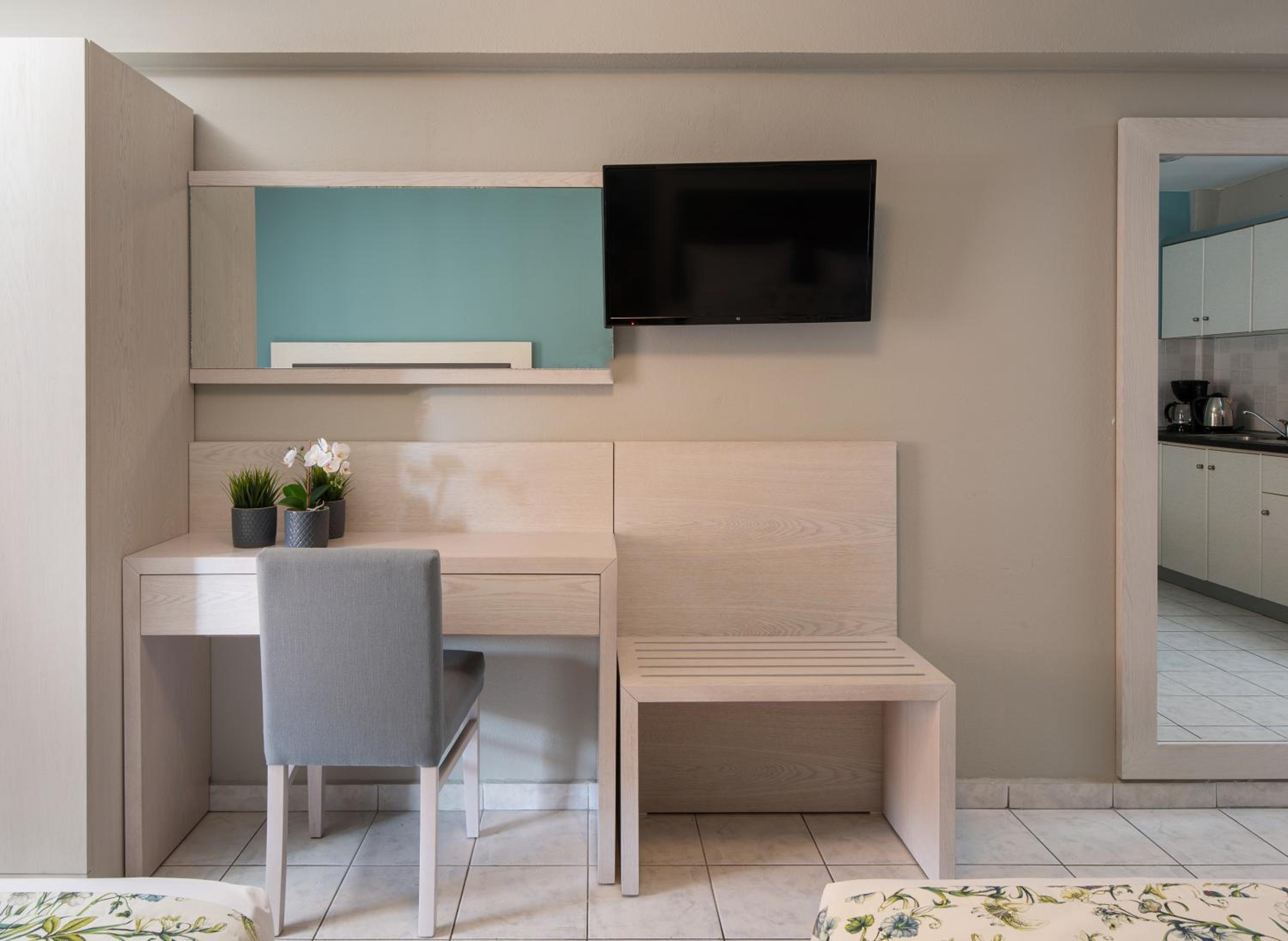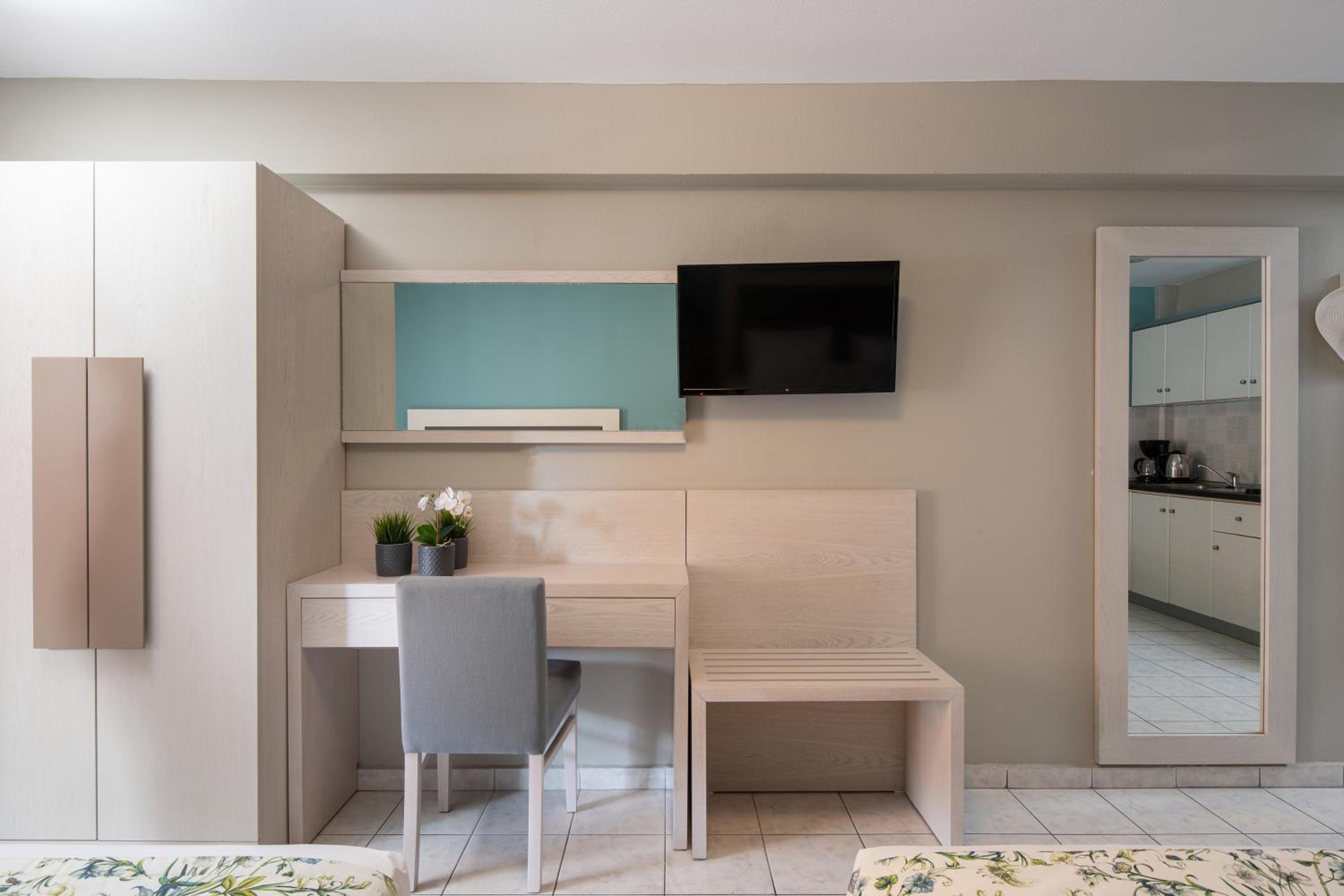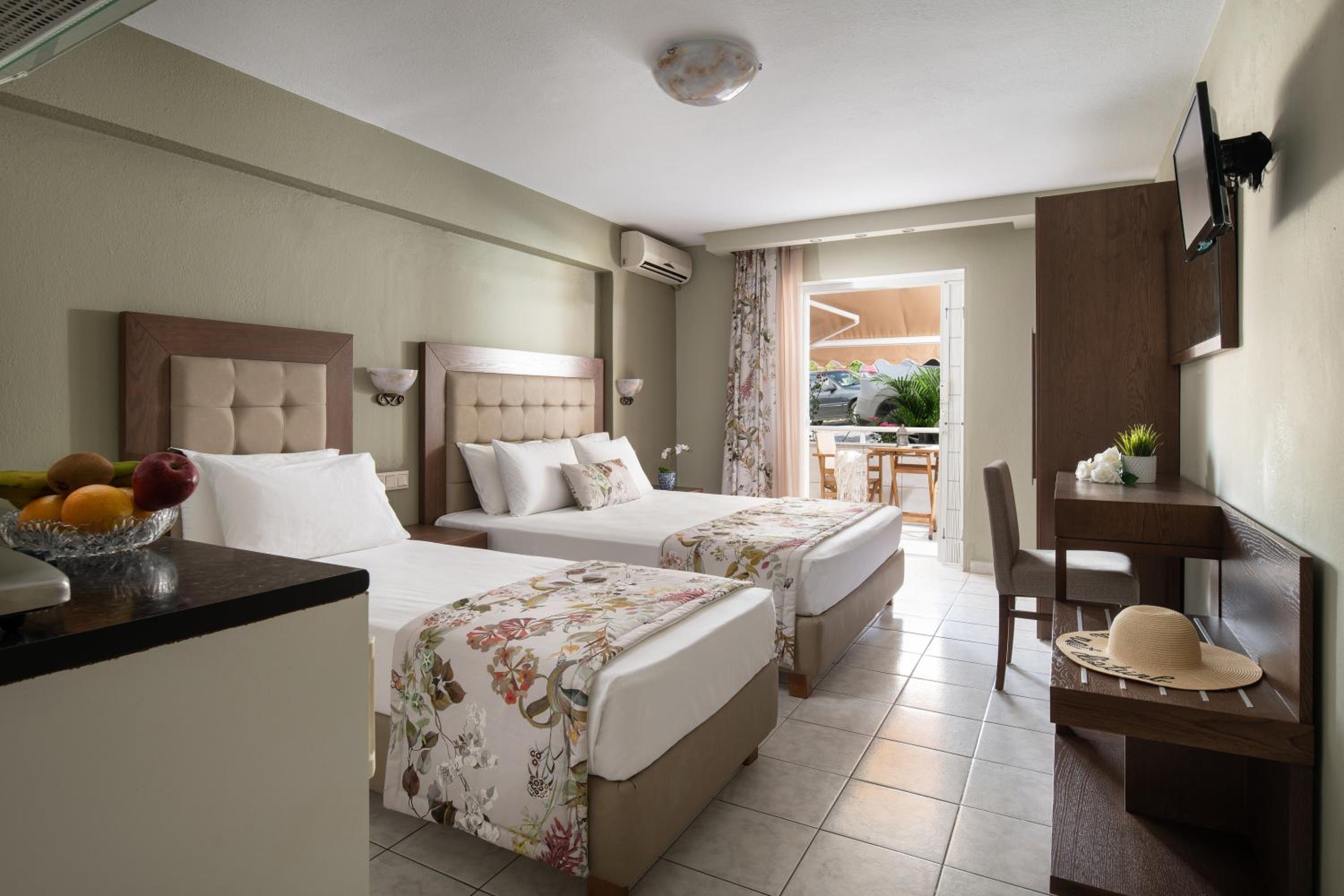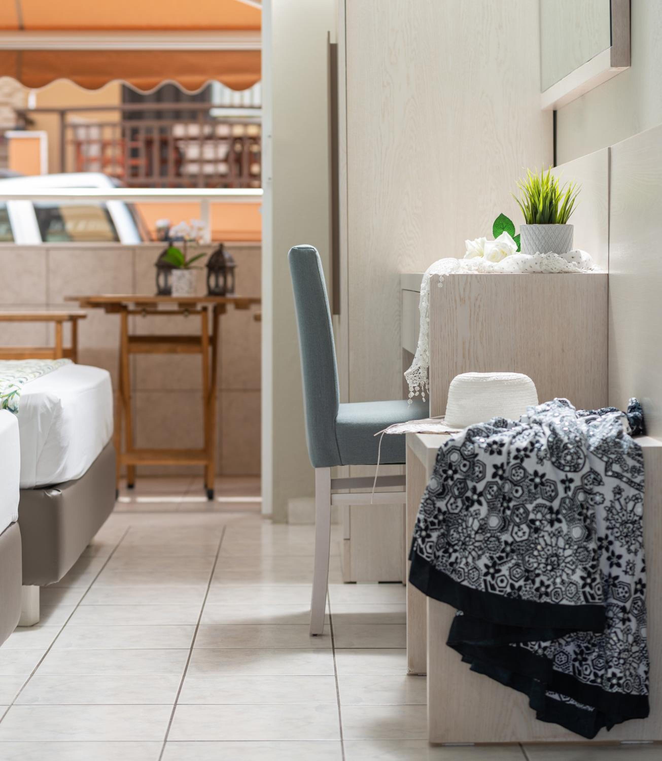Each room at Hotel Olga is designed for comfort and relaxation. From air conditioning to a private terrace offering city views, guests can unwind in style. Some units even boast mountain views and balconies, providing a tranquil setting to start or end the day.