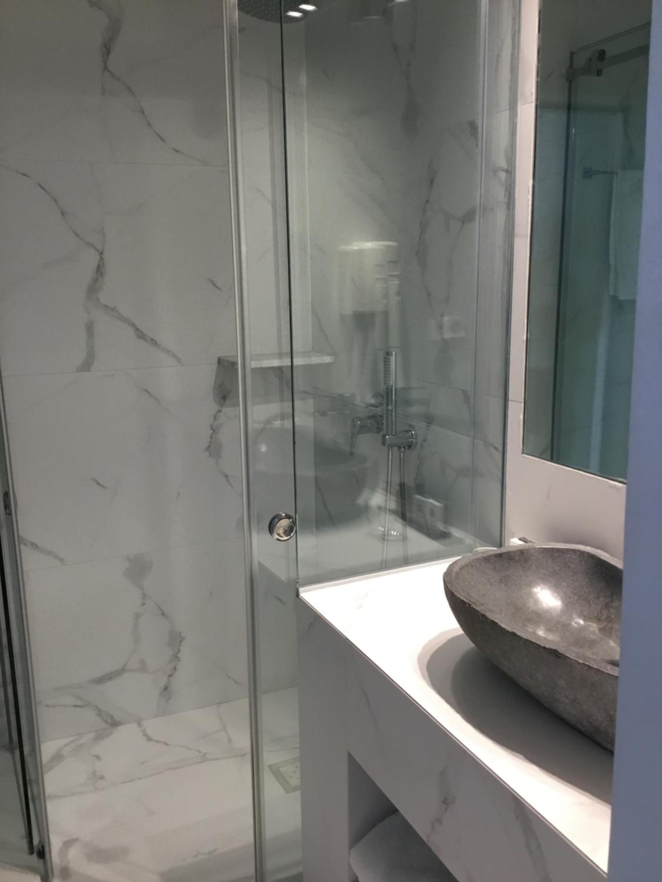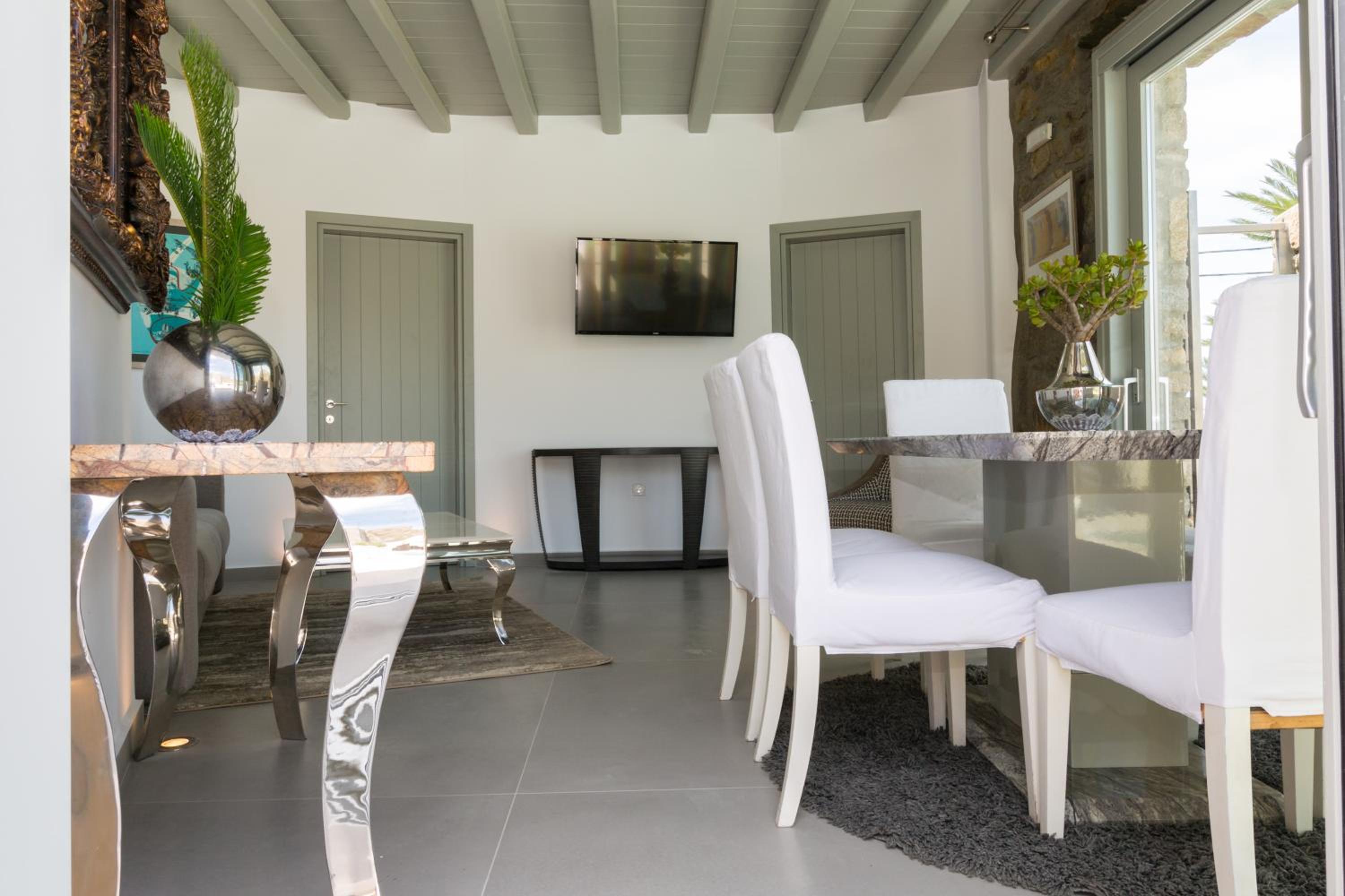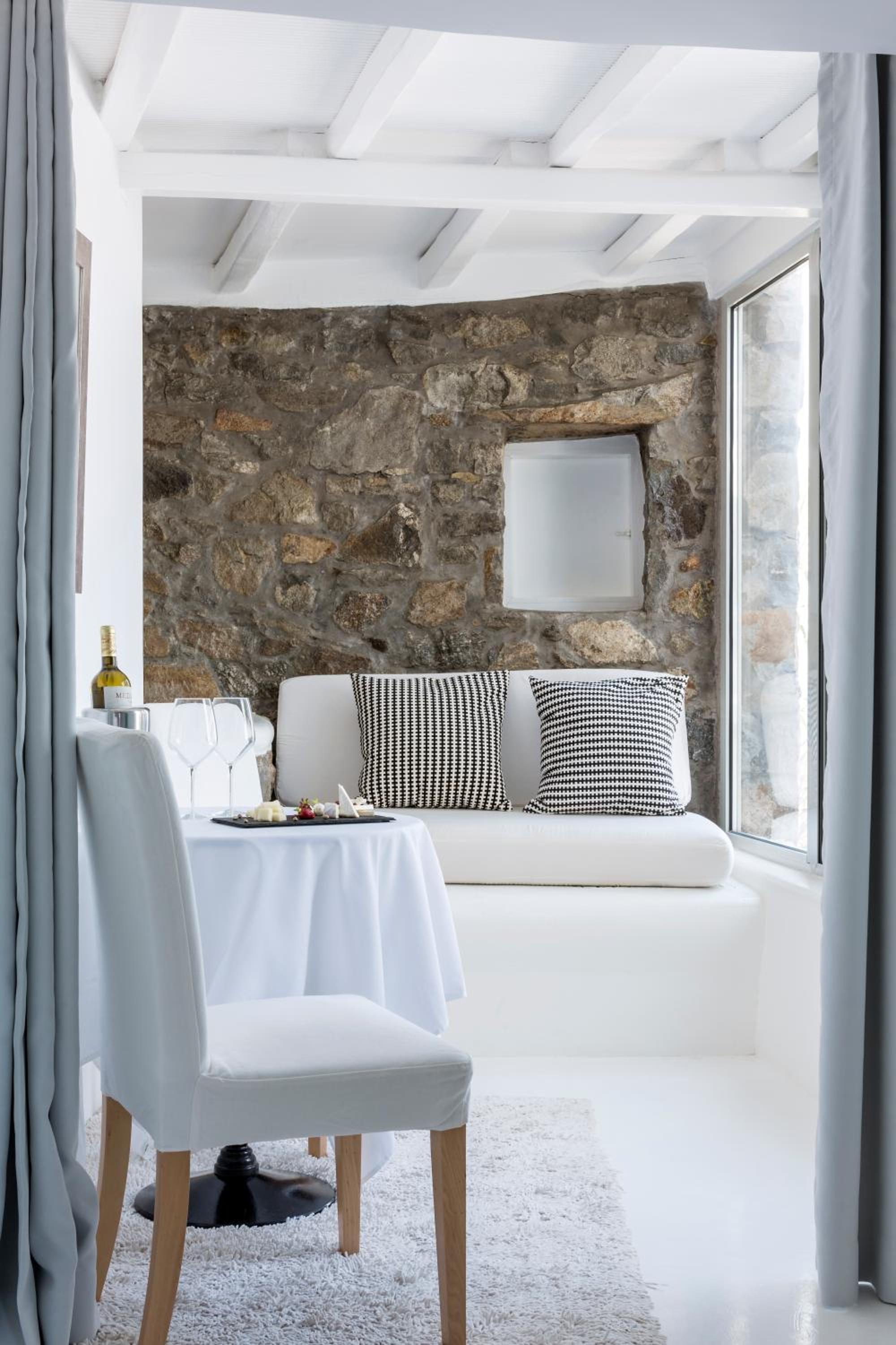 Our suite was spacious, spotless, and beautifully designed, striking the perfect balance between modern comfort and traditional Cycladic charm. The private terrace and sun beds were highlights, offering both privacy and panoramic scenery.