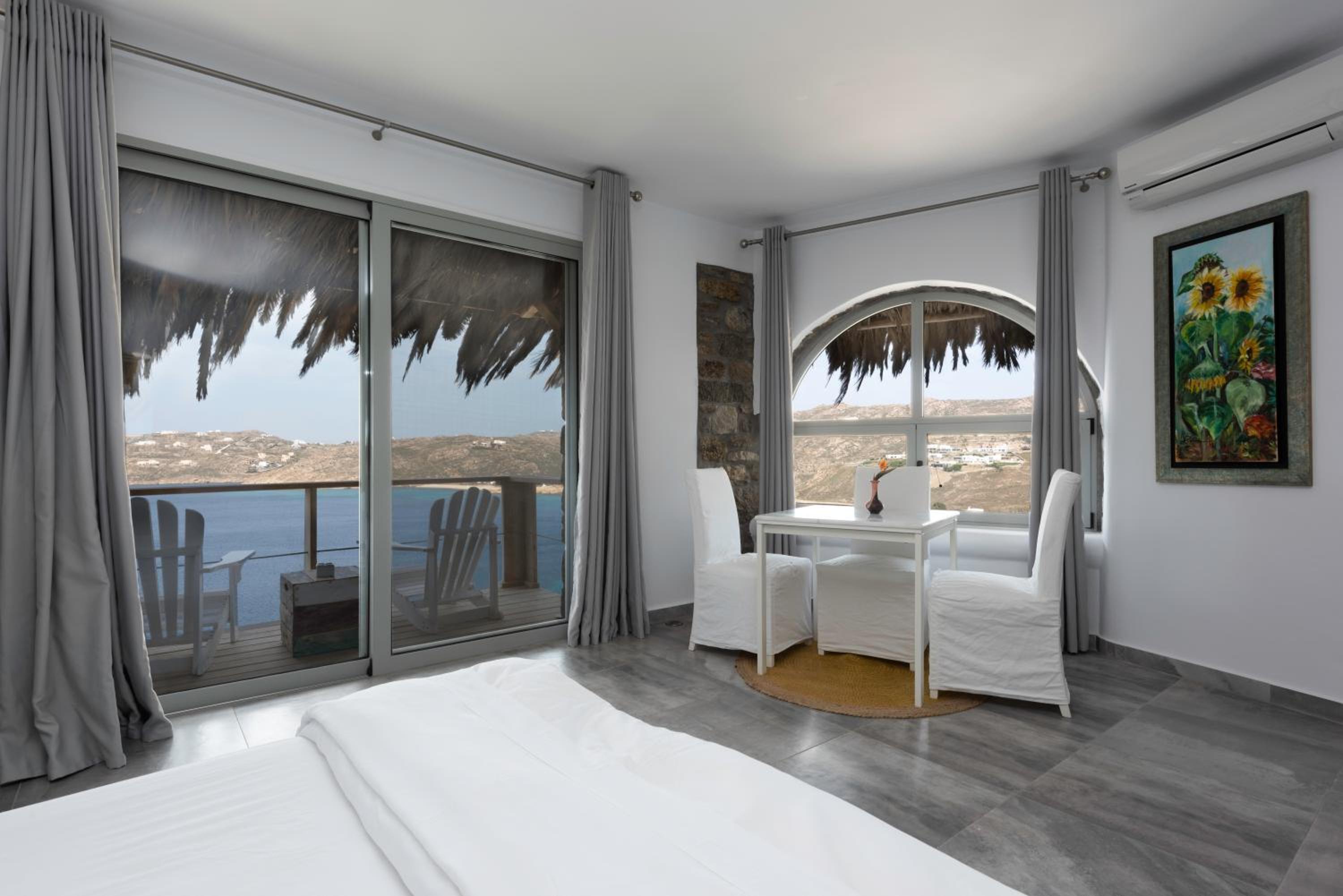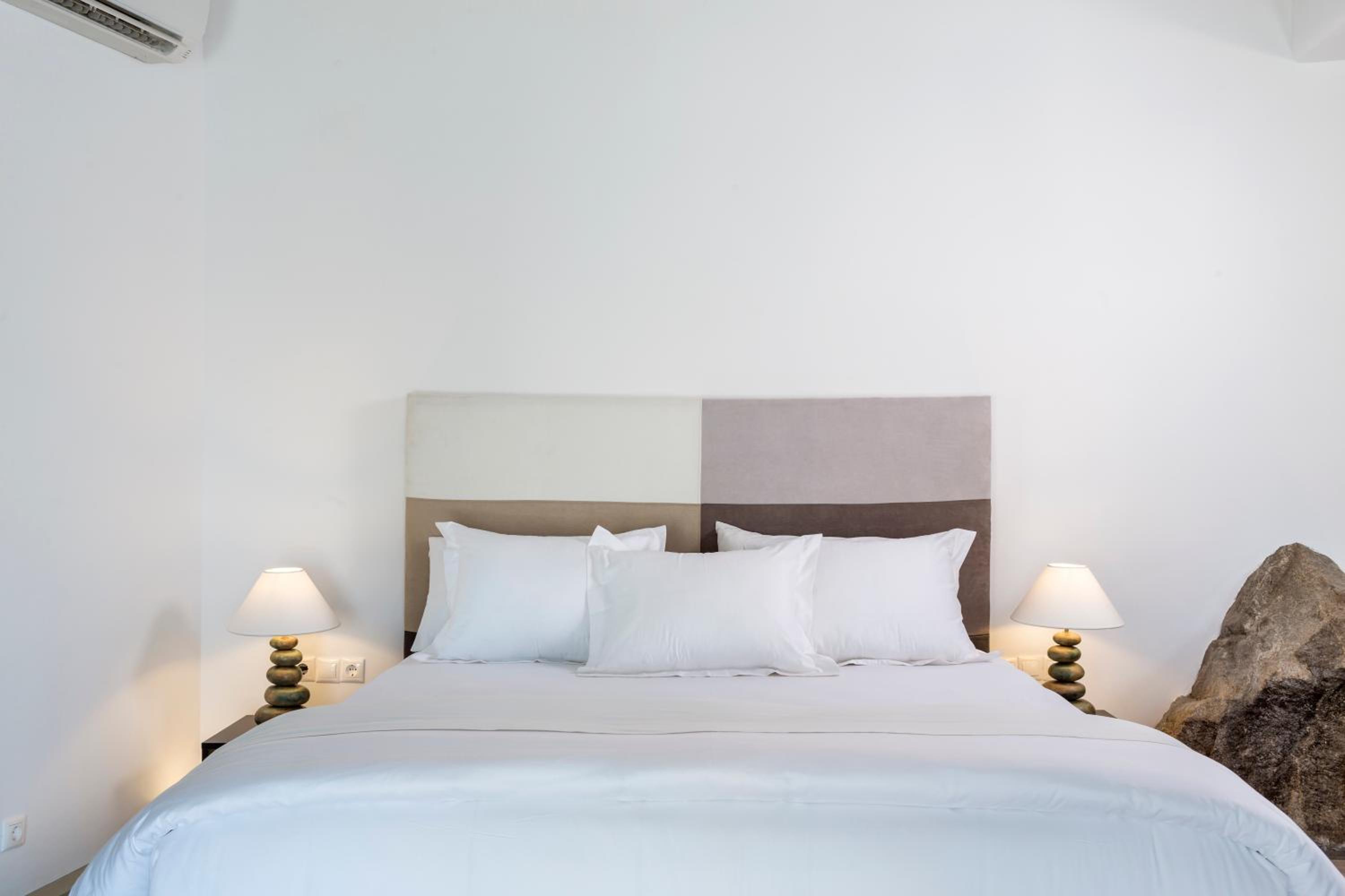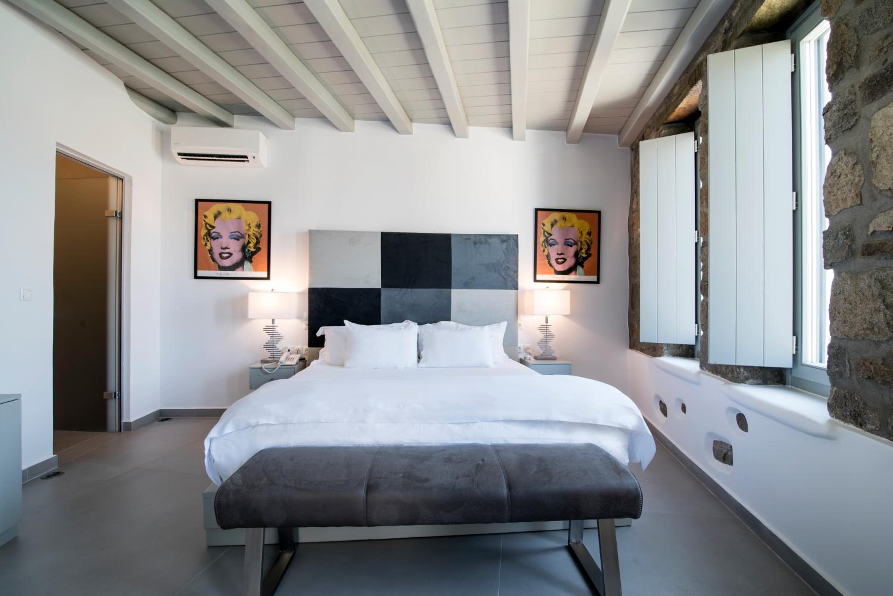 The room we were first given had a v-shaped sunken mattress with a dirty cover, the staff changed the cover but could not change us to another room for the first night as the manager had already left for that day, it was very dissapointing, we couldnt rest at all that night. However next day the manager was very kind and apologetic and changed us to a lovely room with breathtaking views, which saved our Mykonos experience.