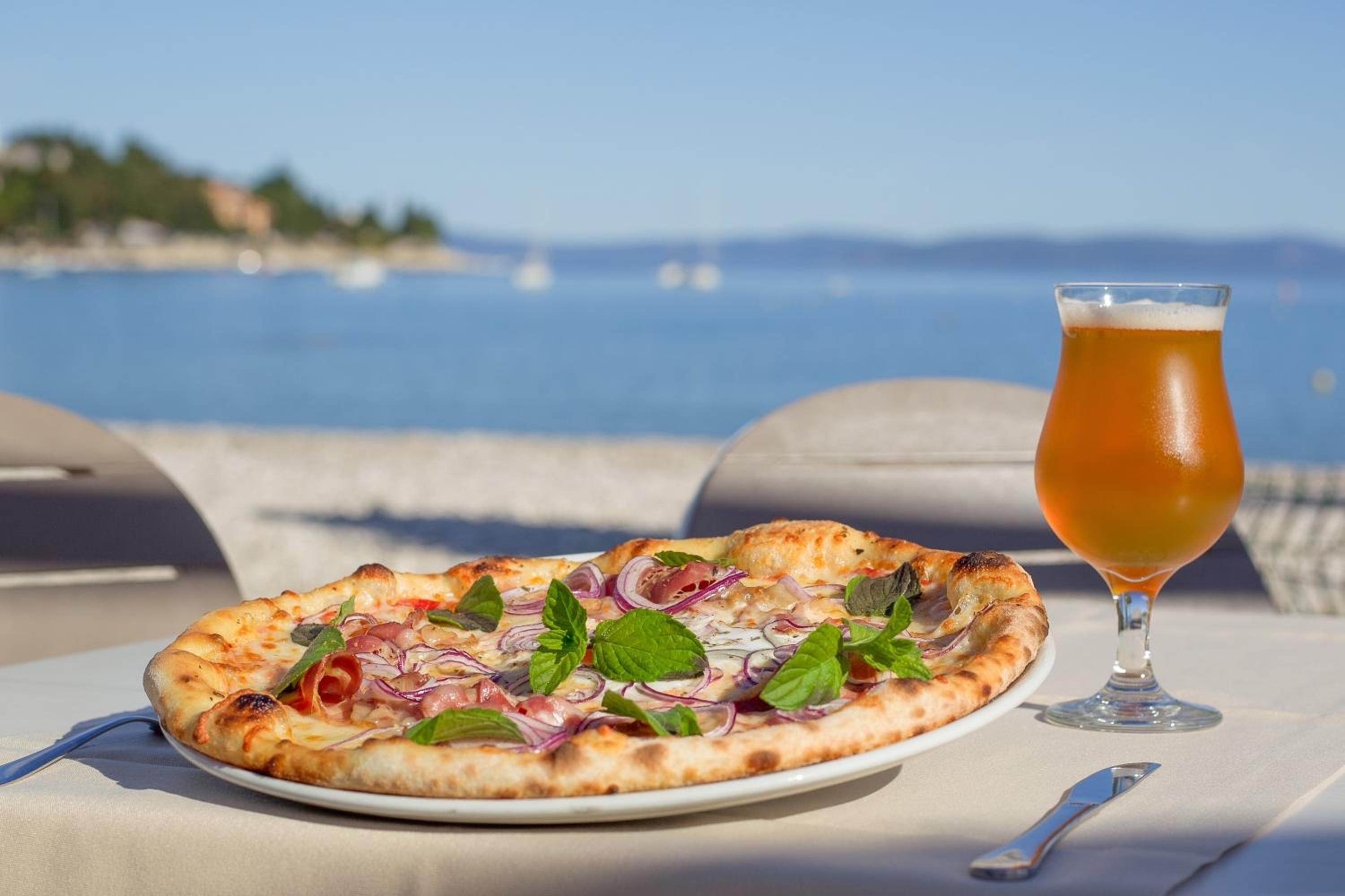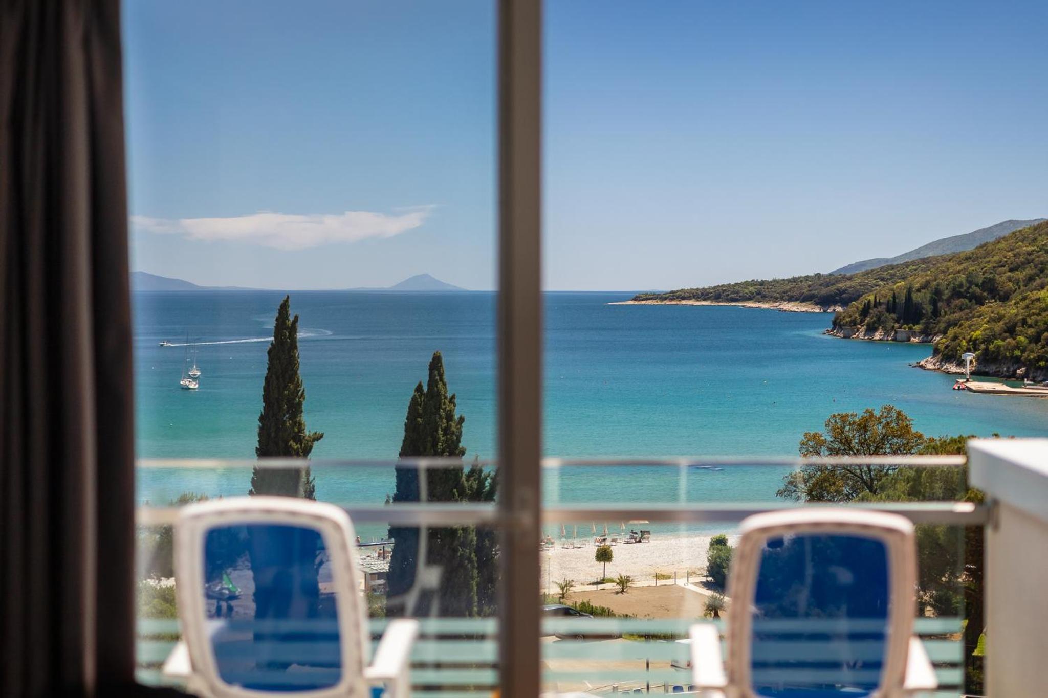 This hotel offers a prime spot just 50 meters from the beach in Rabac, overlooking one of Croatia's most stunning bays.