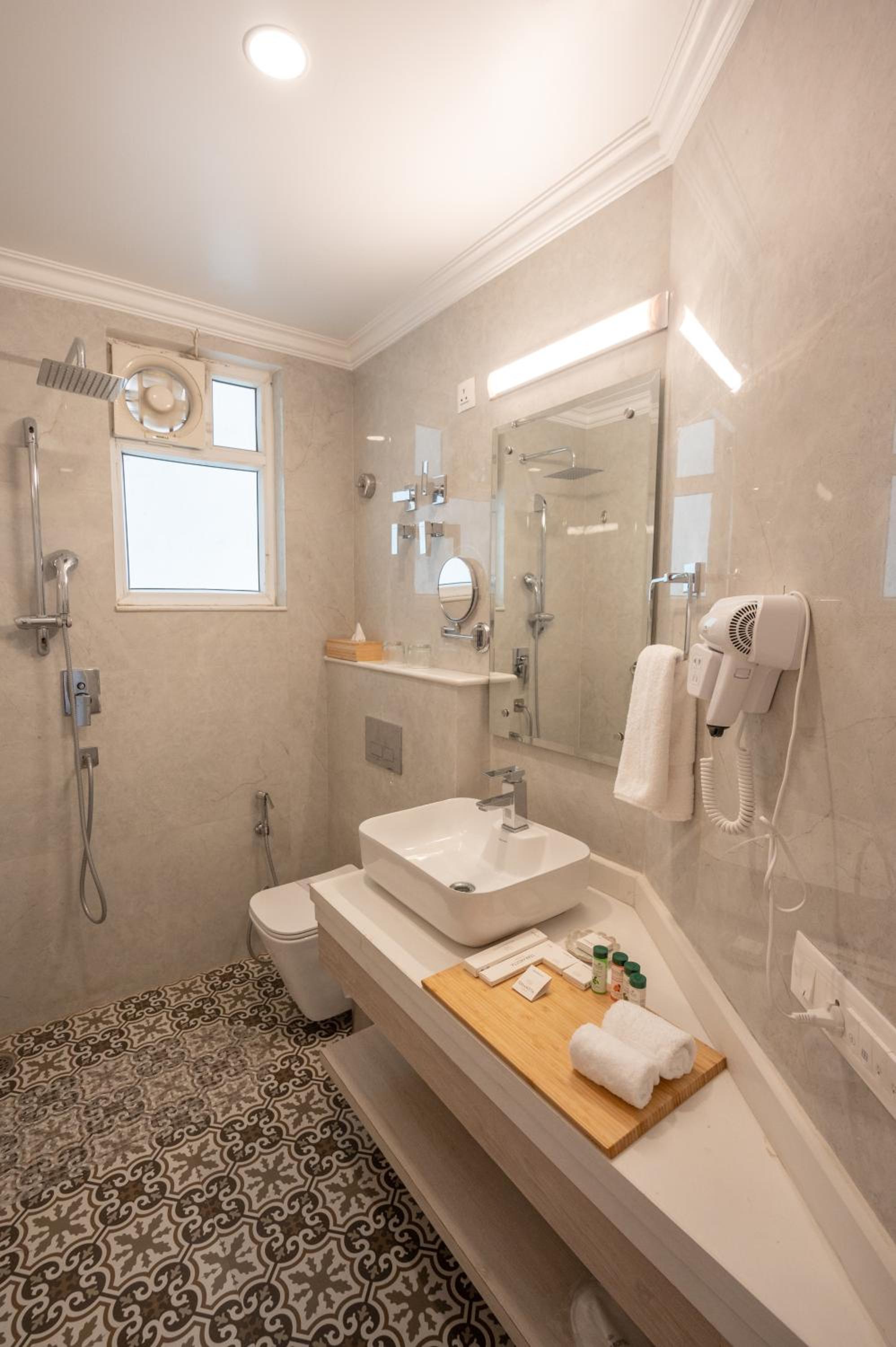 The hotel is new and all the facilities are new, close to the Ganges and the market.