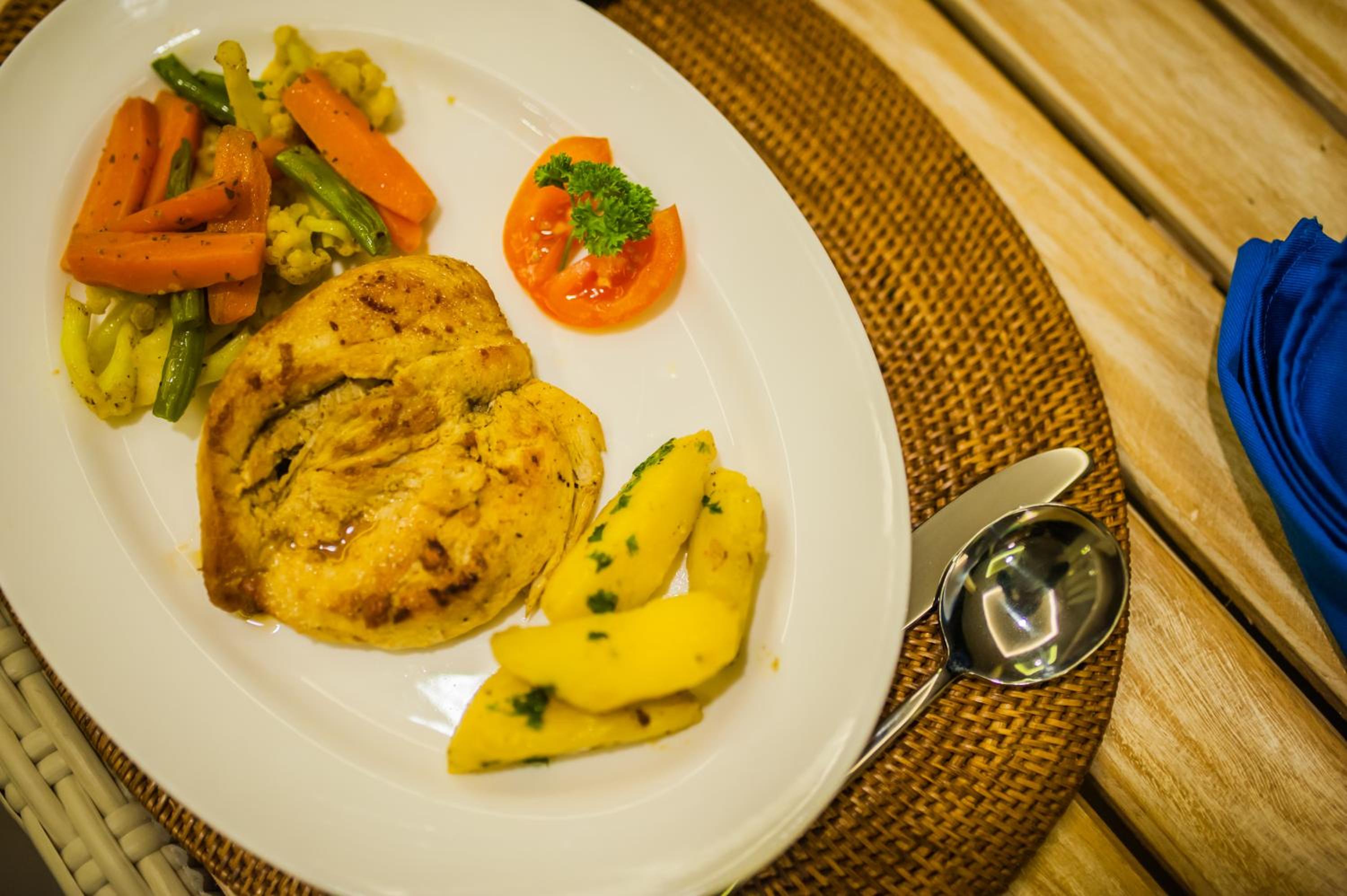 The staff were super friendly and accomodating. It is very close to the beach and a good snorkelling spot. The pool at the resort is a good size and split across two levels. The breakfast was nice and we requested to have it in our room. Great views from the balcony out over the ocean.