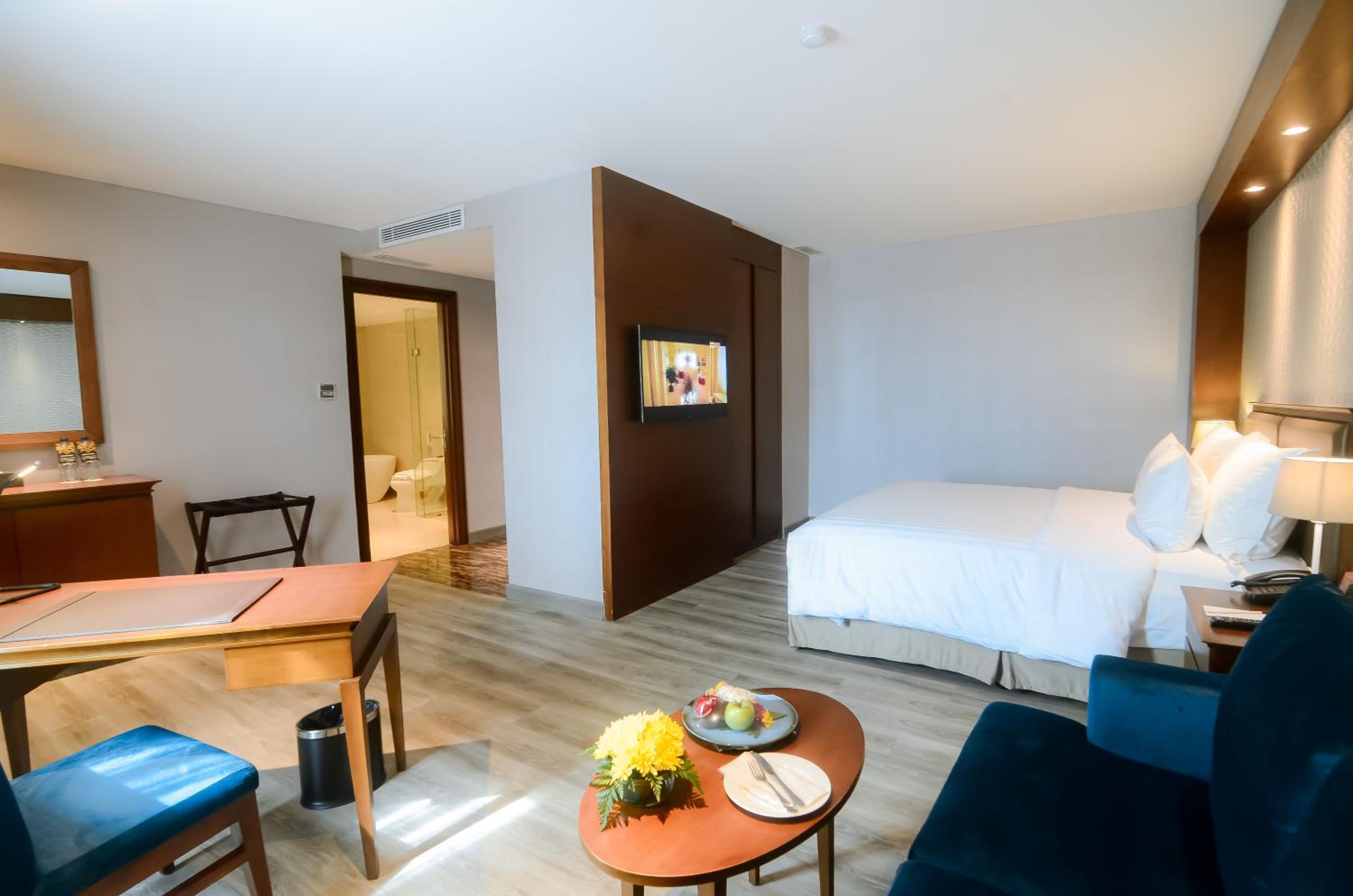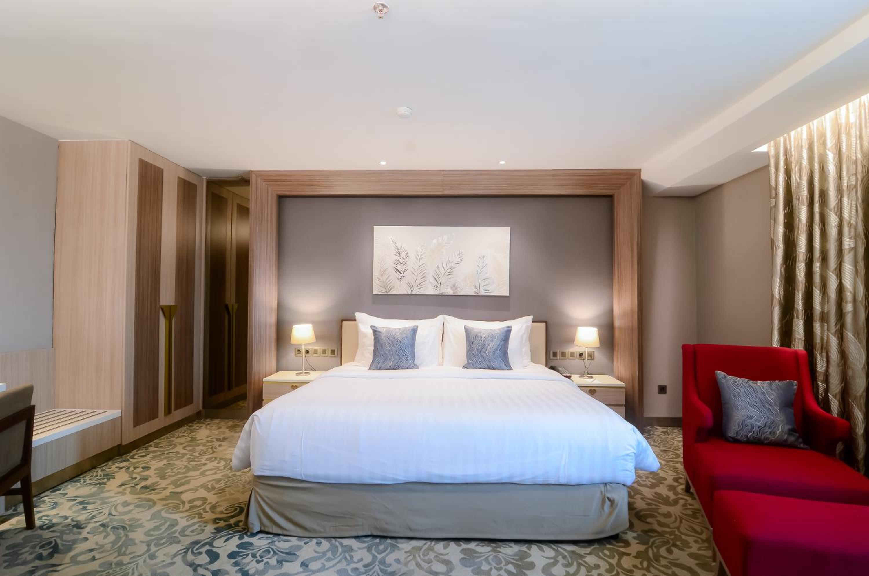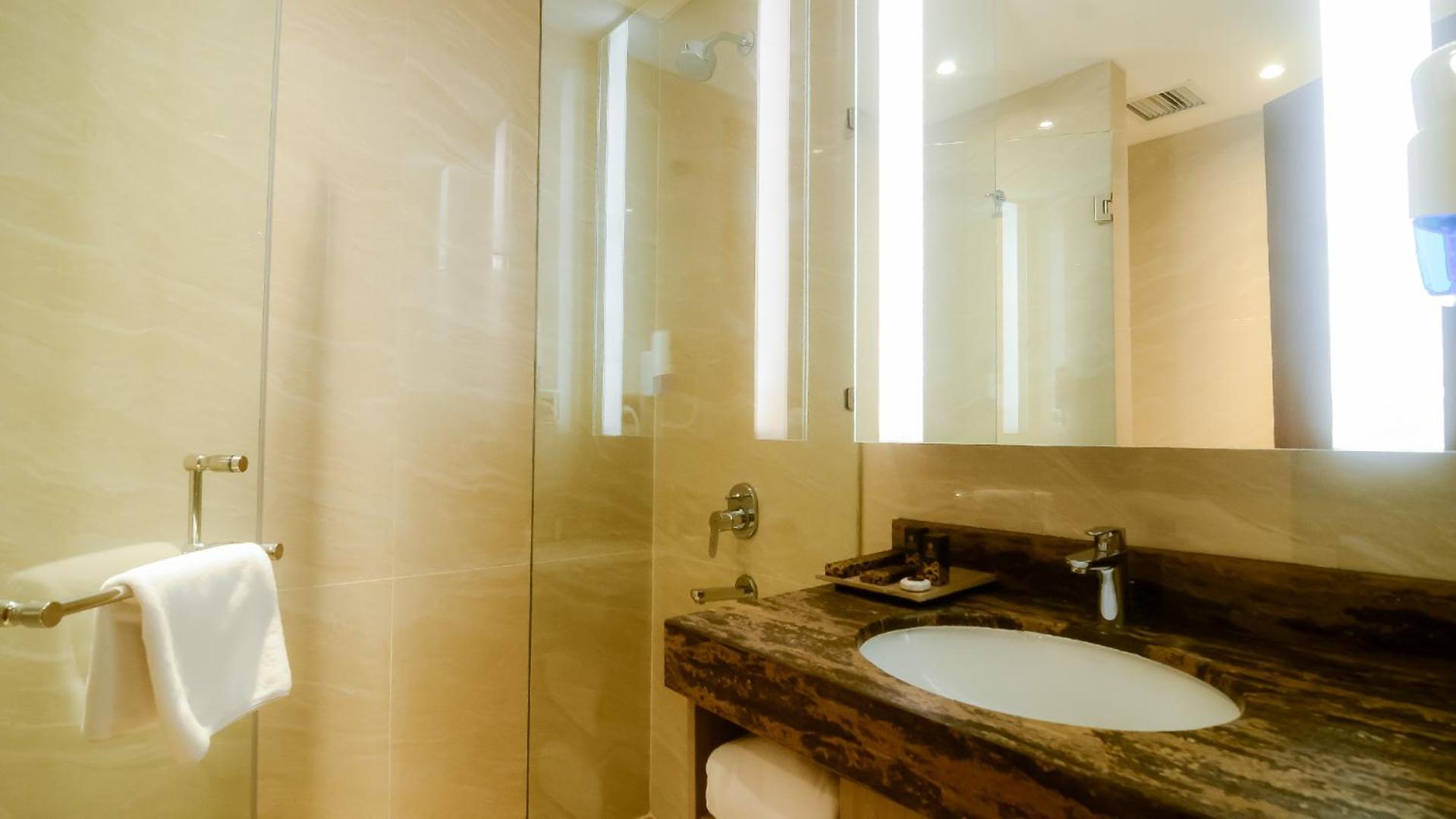 The Excelton Hotel in Palembang offers 5-star accommodation with impeccable services. Each guest room is equipped with modern amenities, including air conditioning, flat-screen TV, and a private bathroom. Selected rooms even feature a kitchen for added convenience.