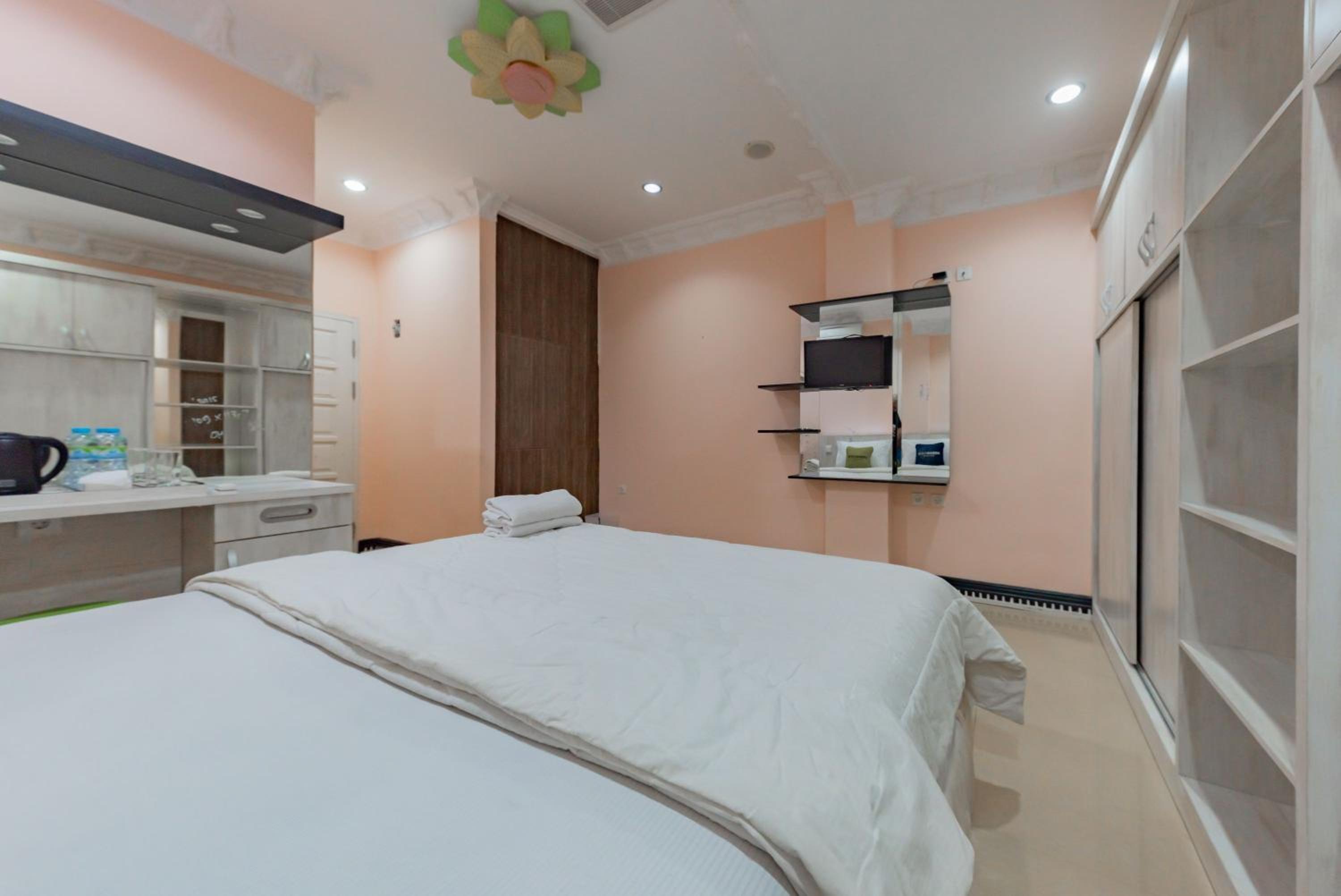 Room clean, Smell good, blanket comfy, bathroom have a hot water, give a bottled water, everything was very good with the price