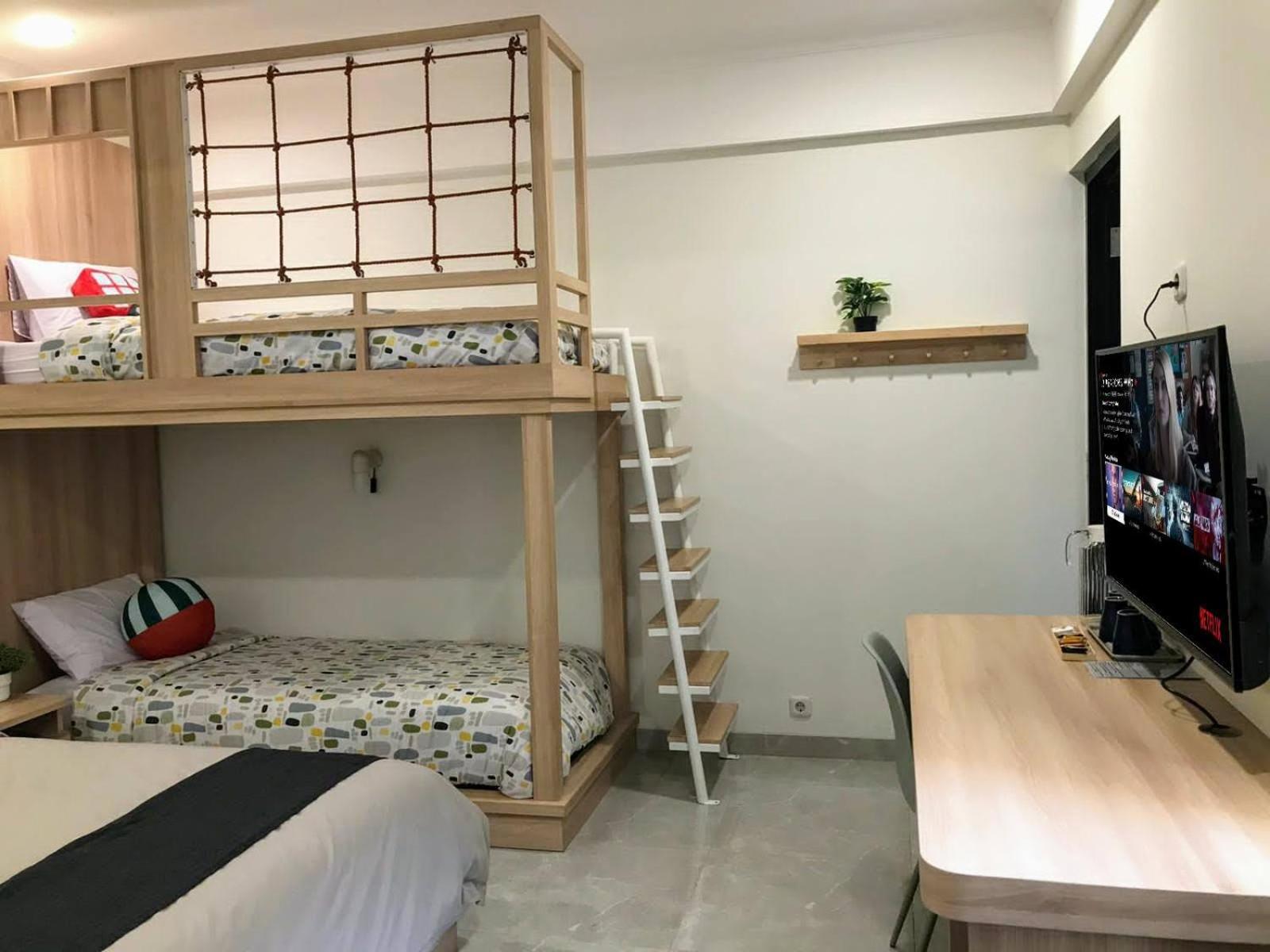 The bed was very comfortable it felt like a home. The air conditioning was good, the fridge was cold and well maintained, the floor was clean and there was a warm and hot water dispenser.