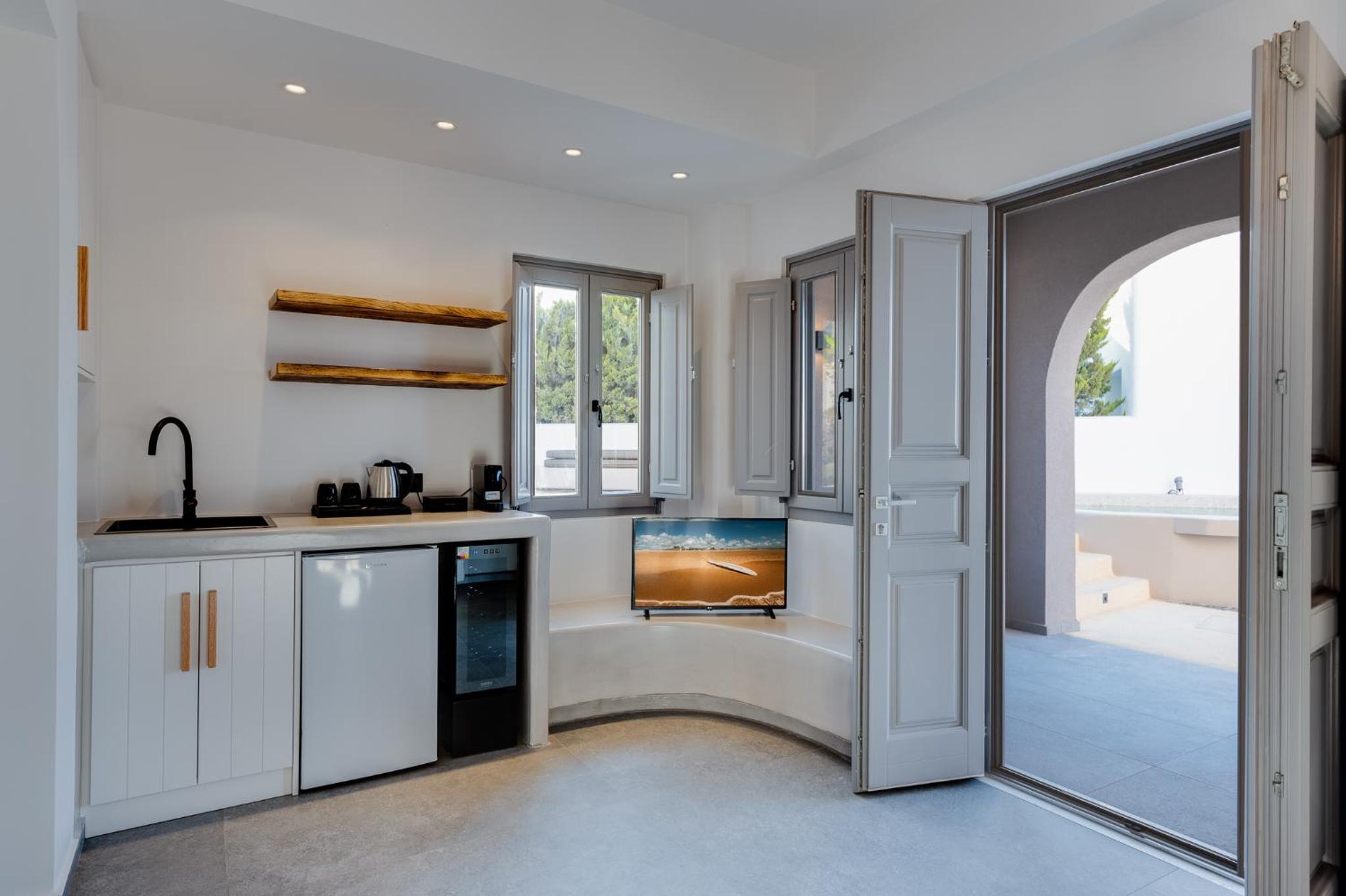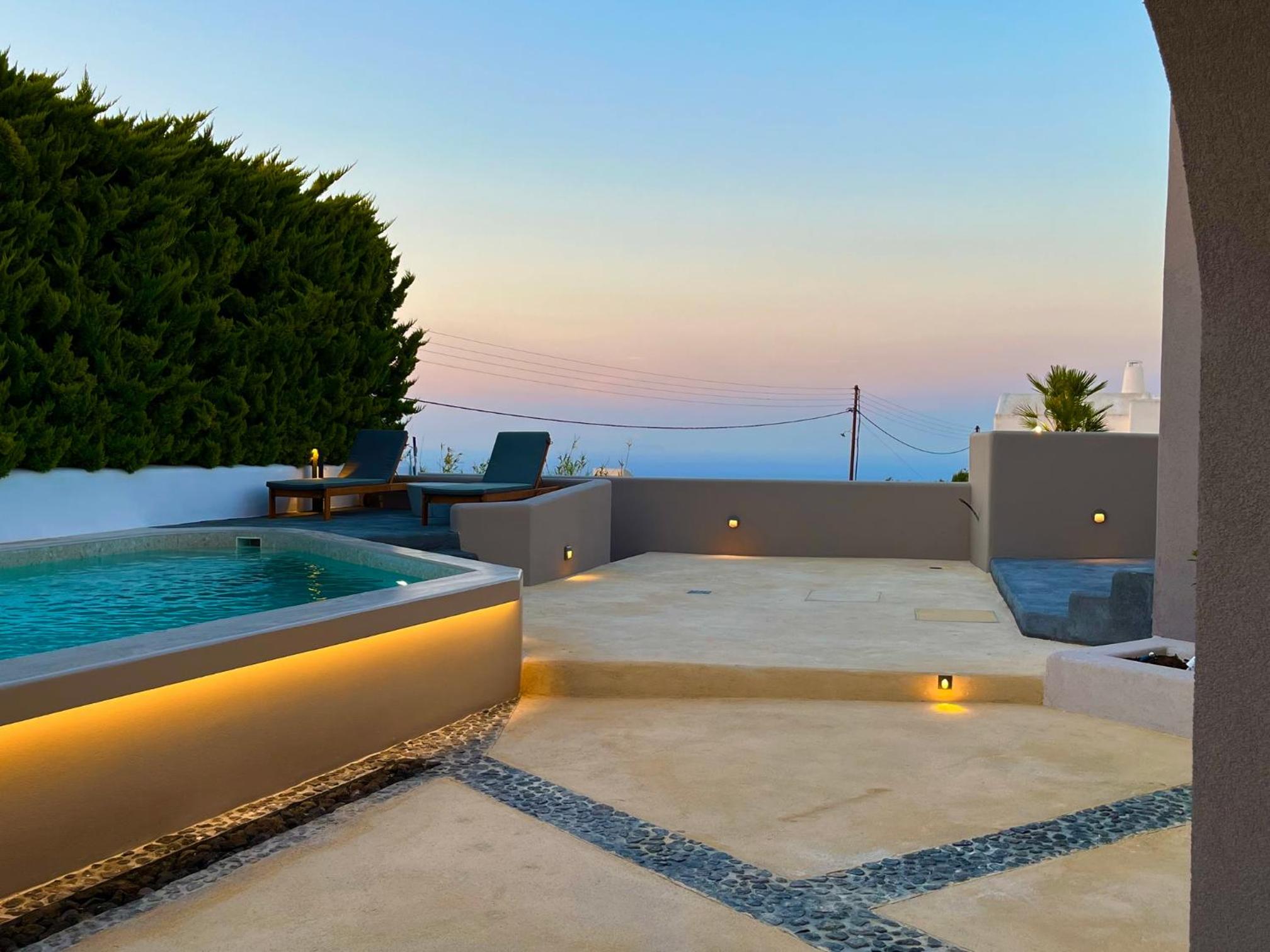 Private plunge pool spa was great. Very good breakfast bought up to our room daily. We found the receptionist Dimitria to be lovely and very accommodating. Dimitria organise the taxi ride for us coming from the Ferry.