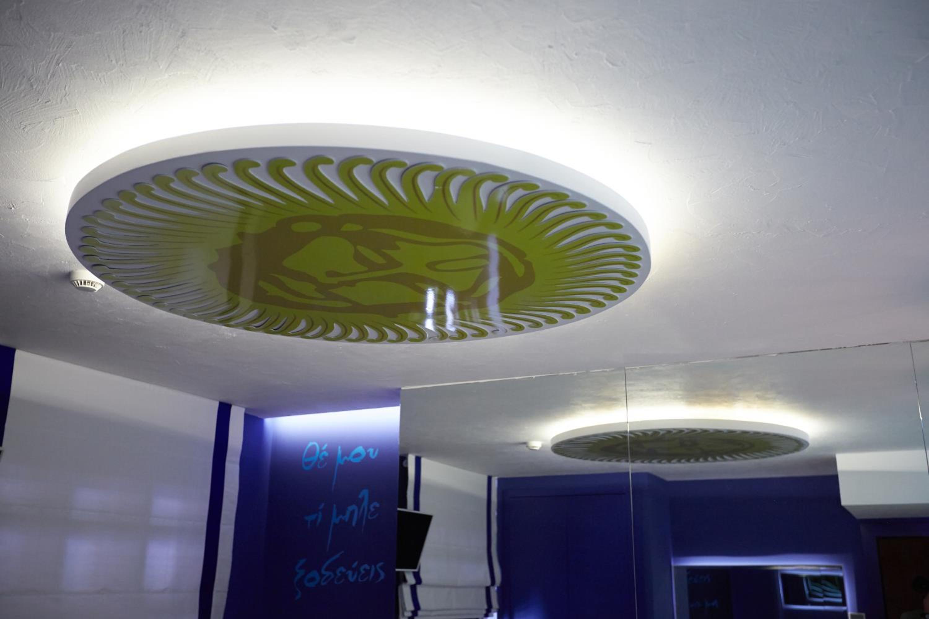 Immerse yourself in creativity within the air-conditioned rooms inspired by Greek filmmakers, poets, and artists. Modern furnishings, vibrant colors, and parquet floors create a lively ambiance. Enjoy modern amenities like a flat-screen TV, fridge, and safe, while the luxurious bathrooms offer bathrobes and complimentary toiletries.