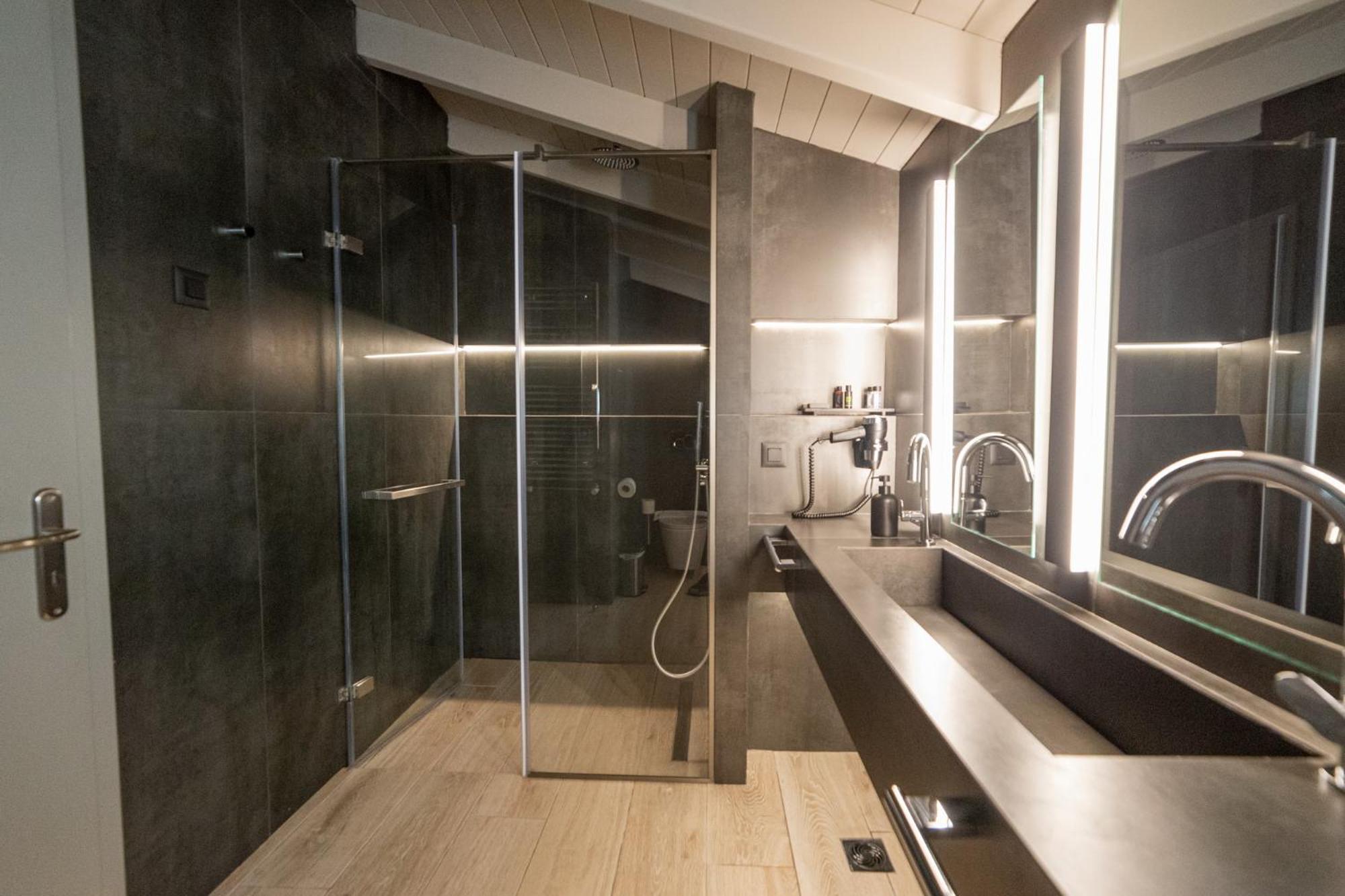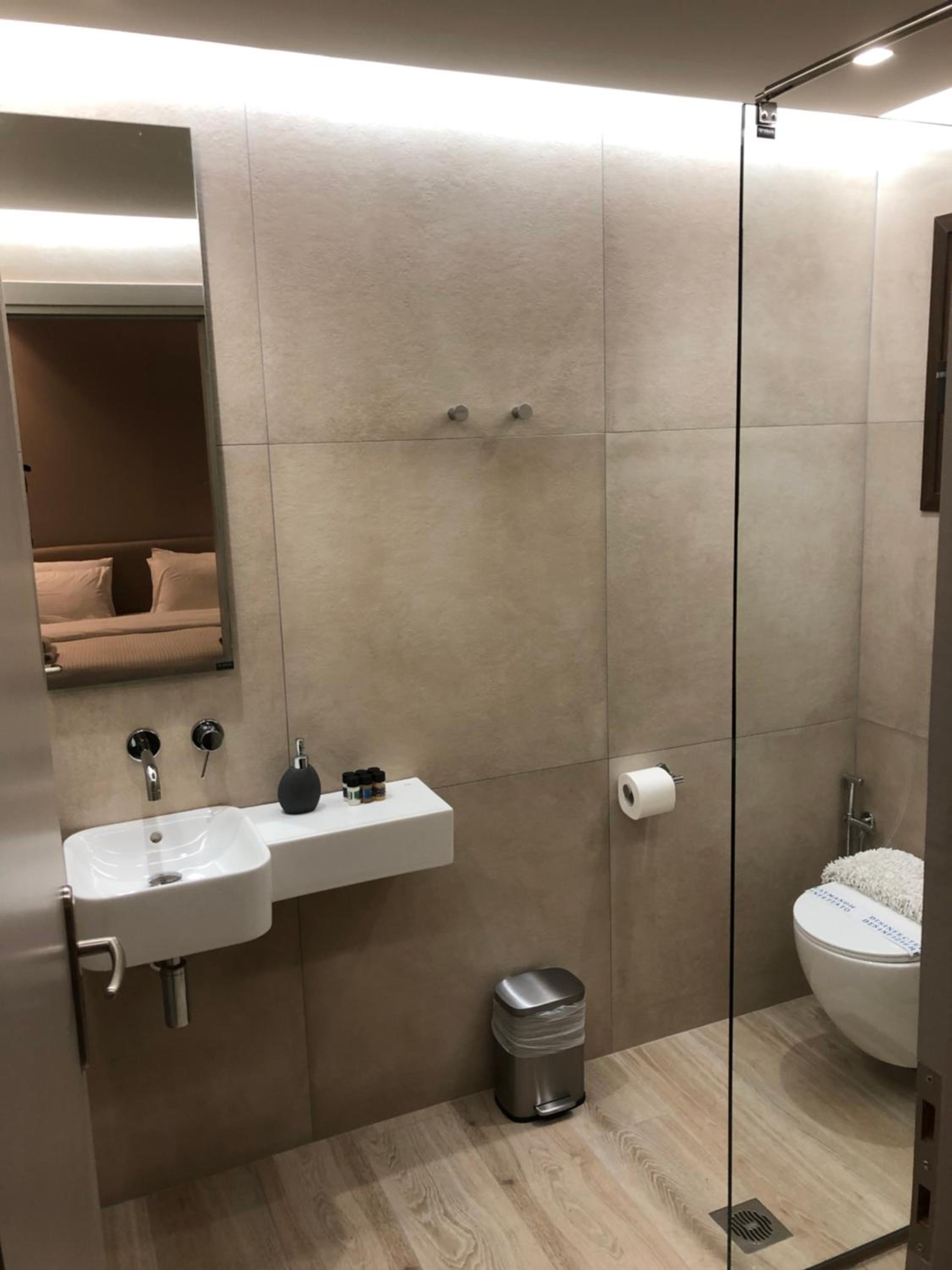 Not possible to take a shower without drawning all the bathroom.