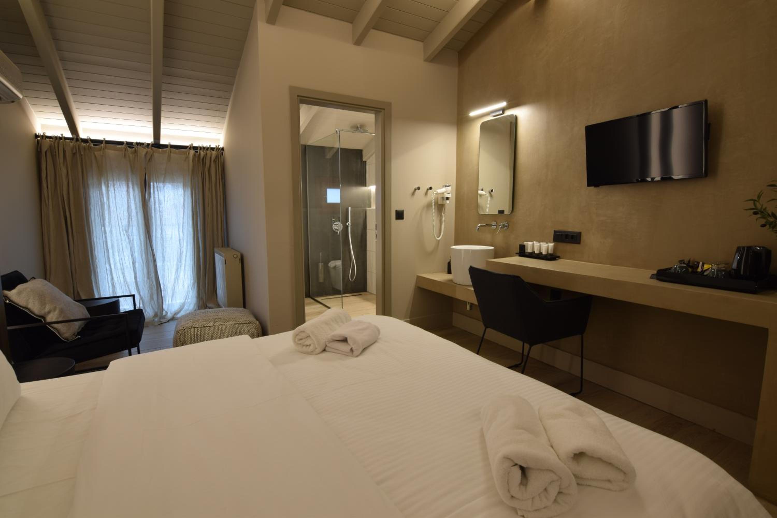 Experience a stay like no other at the 3-storey Anesis Hotel, boasting uniquely styled rooms with autonomous heating, TV, and some even with a fireplace for extra coziness.