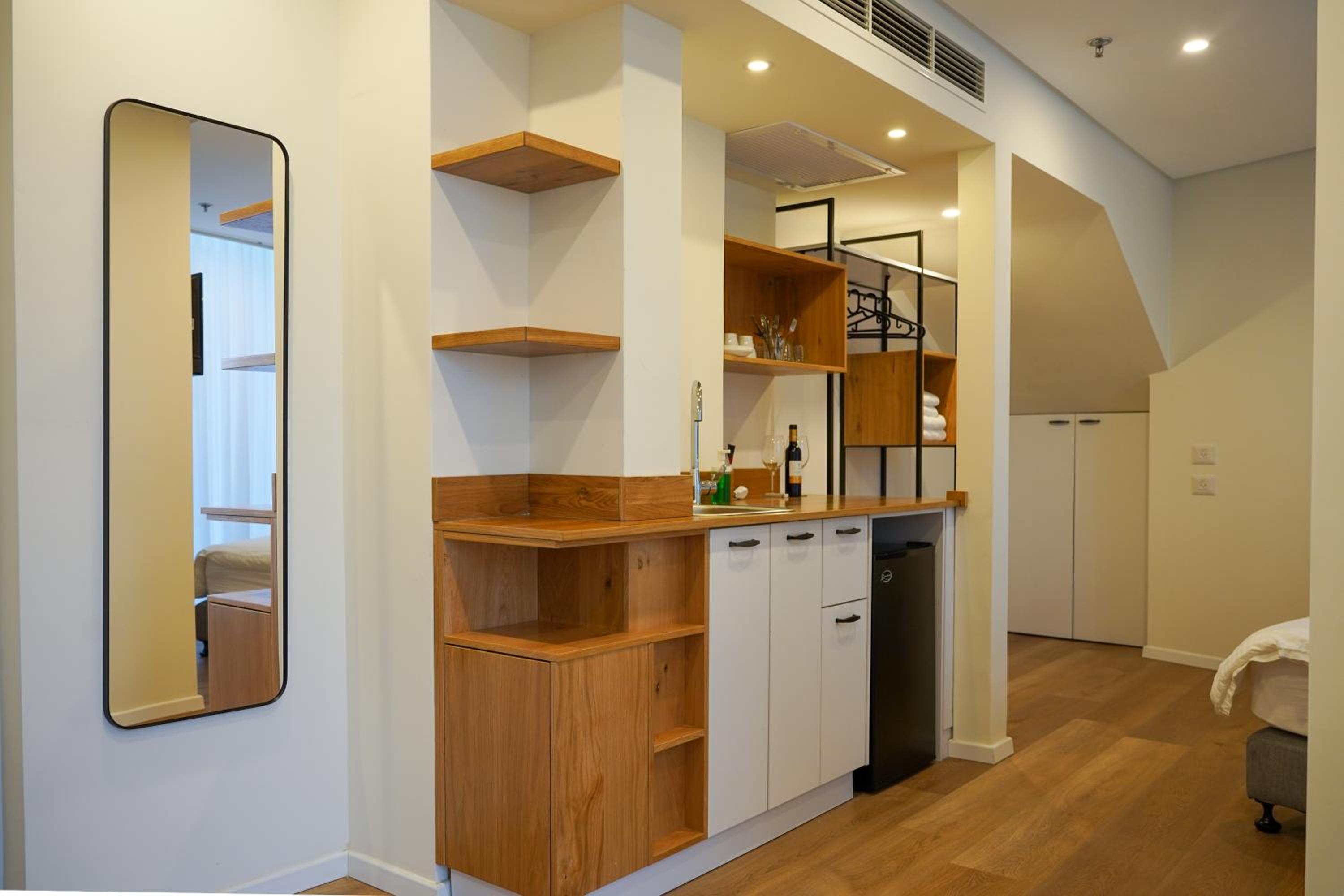 חדר קטן, חסר שולחן ליד המראה.