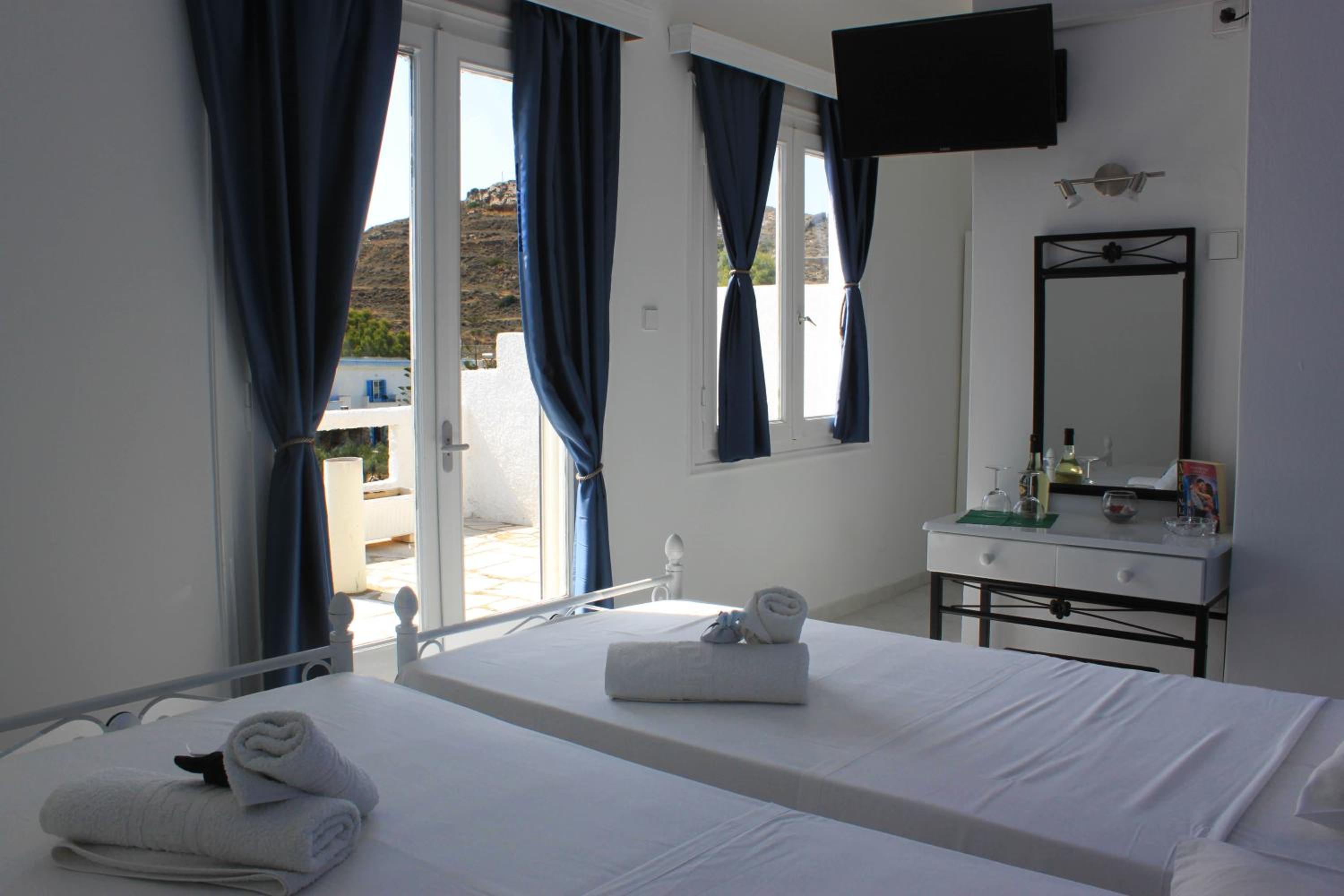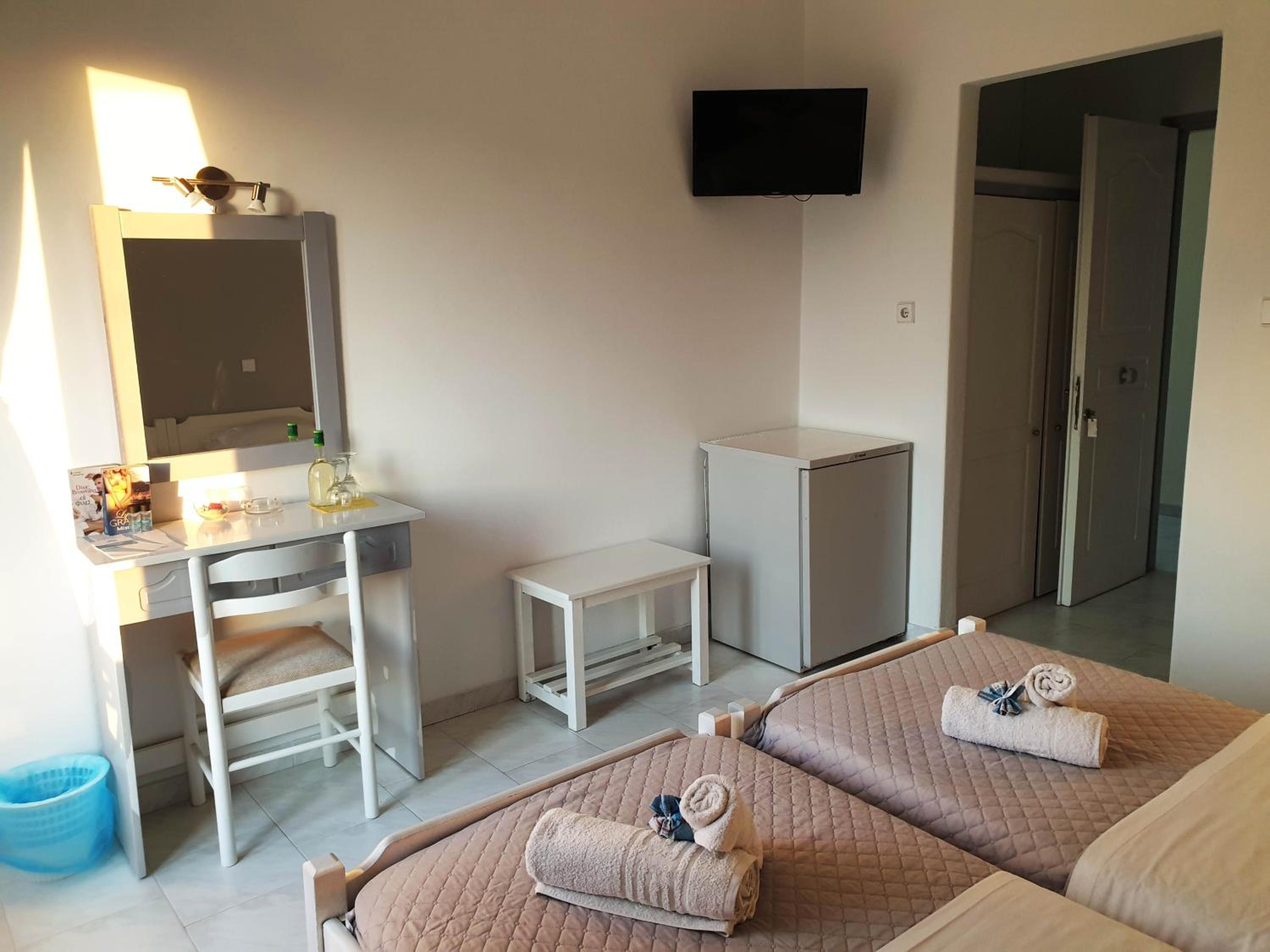 Beautiful position right on beach - staff are lovely and kind and I would happily stay here again - katerina and breakfast staff are ace and pick up from port was punctual and communication excellent