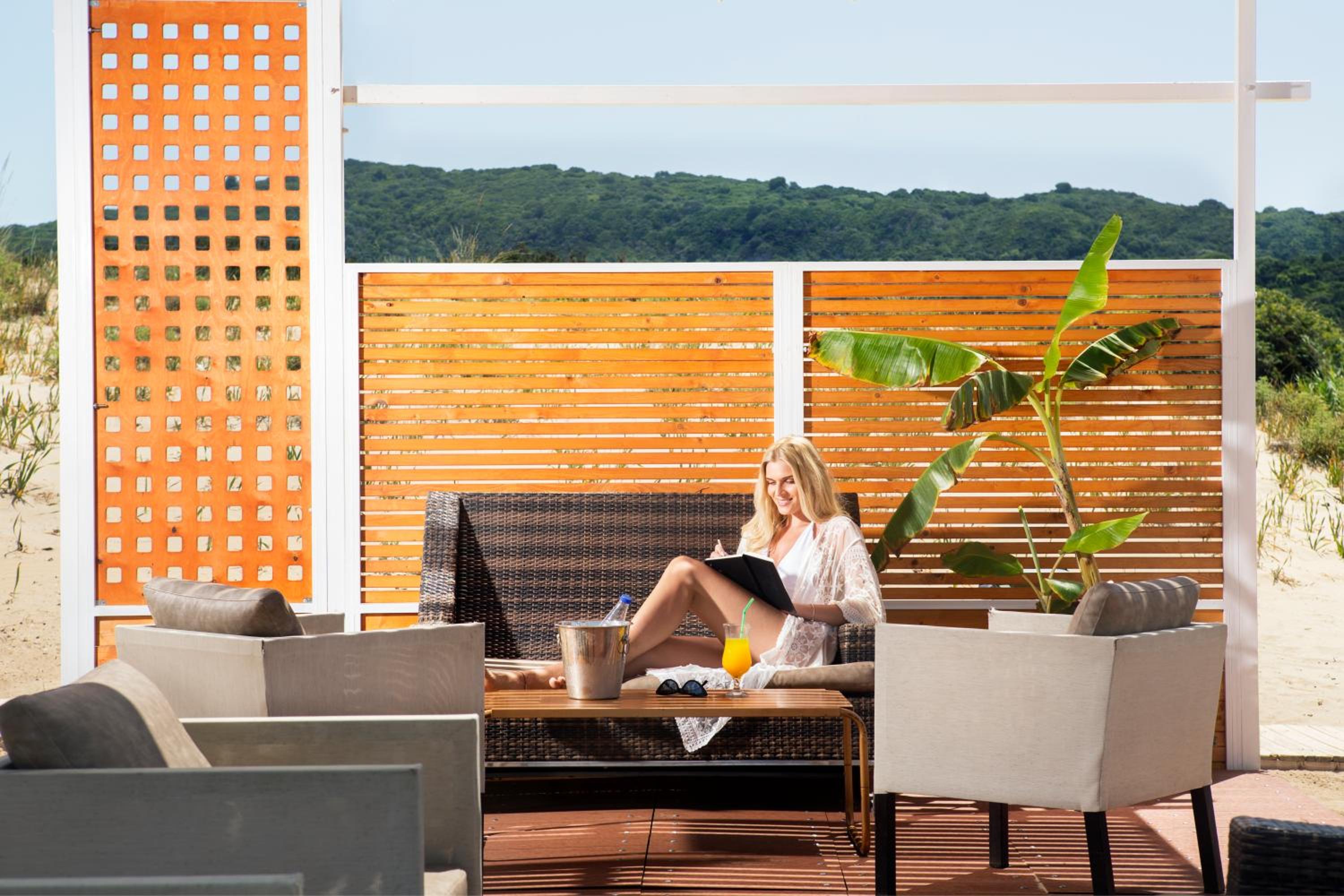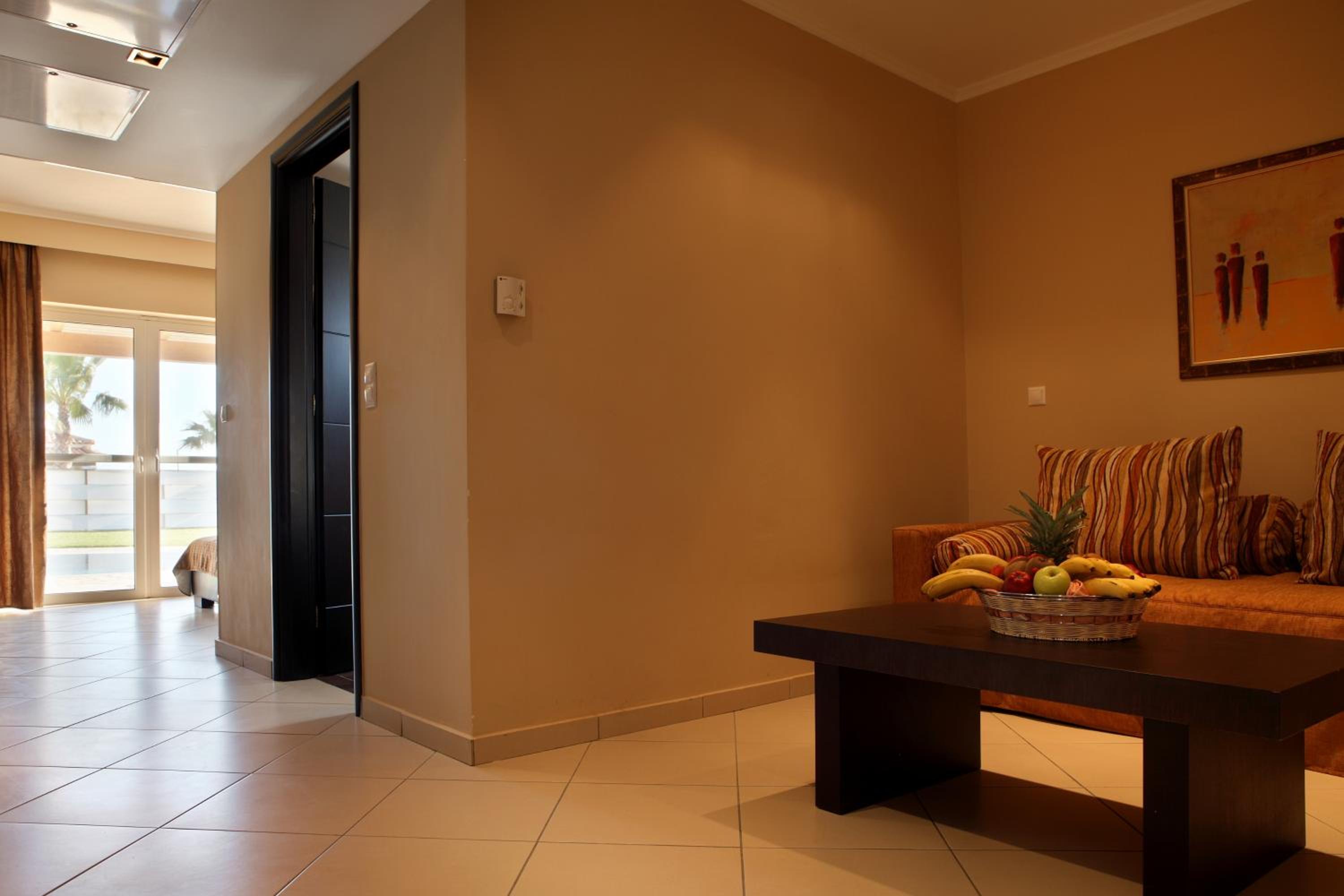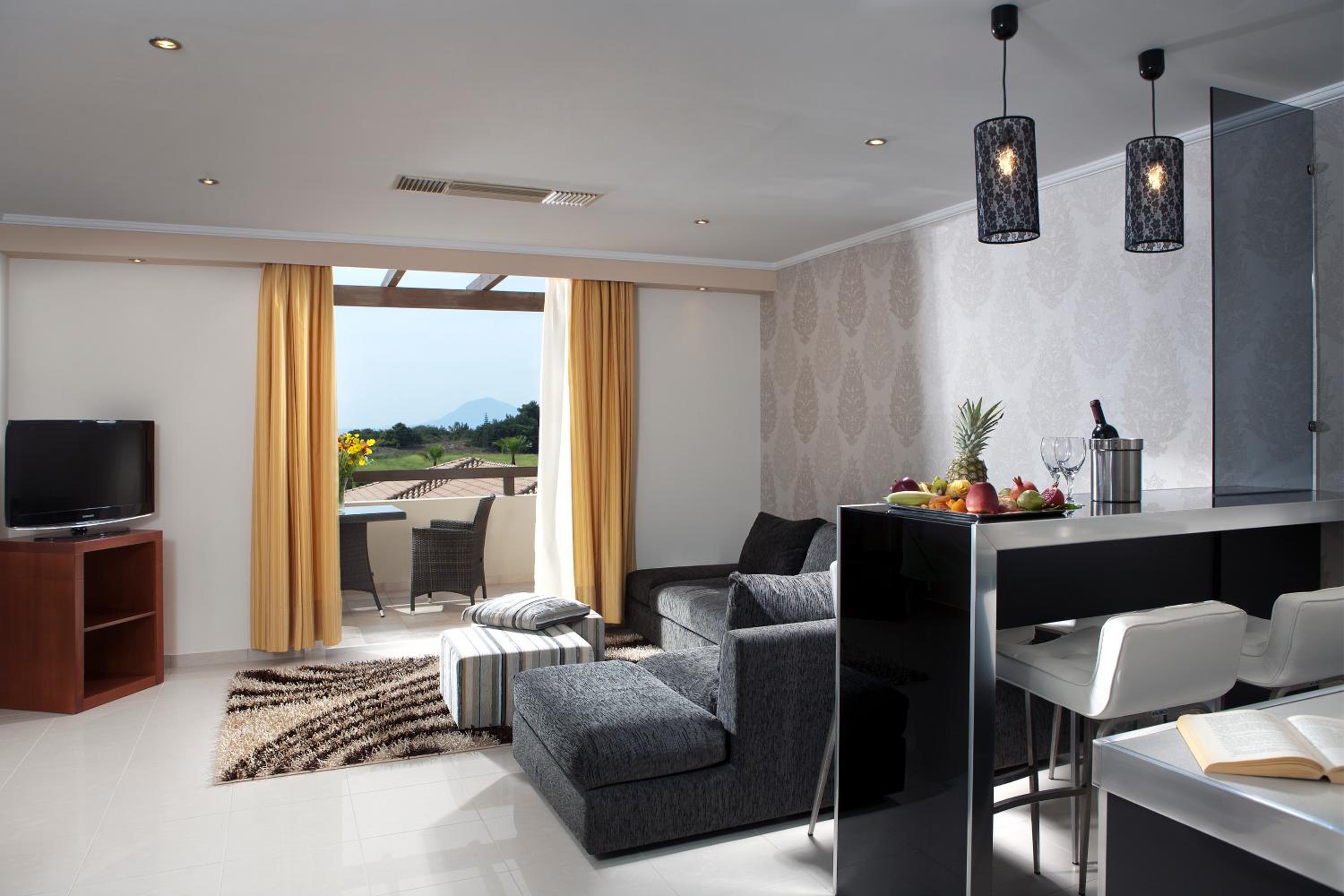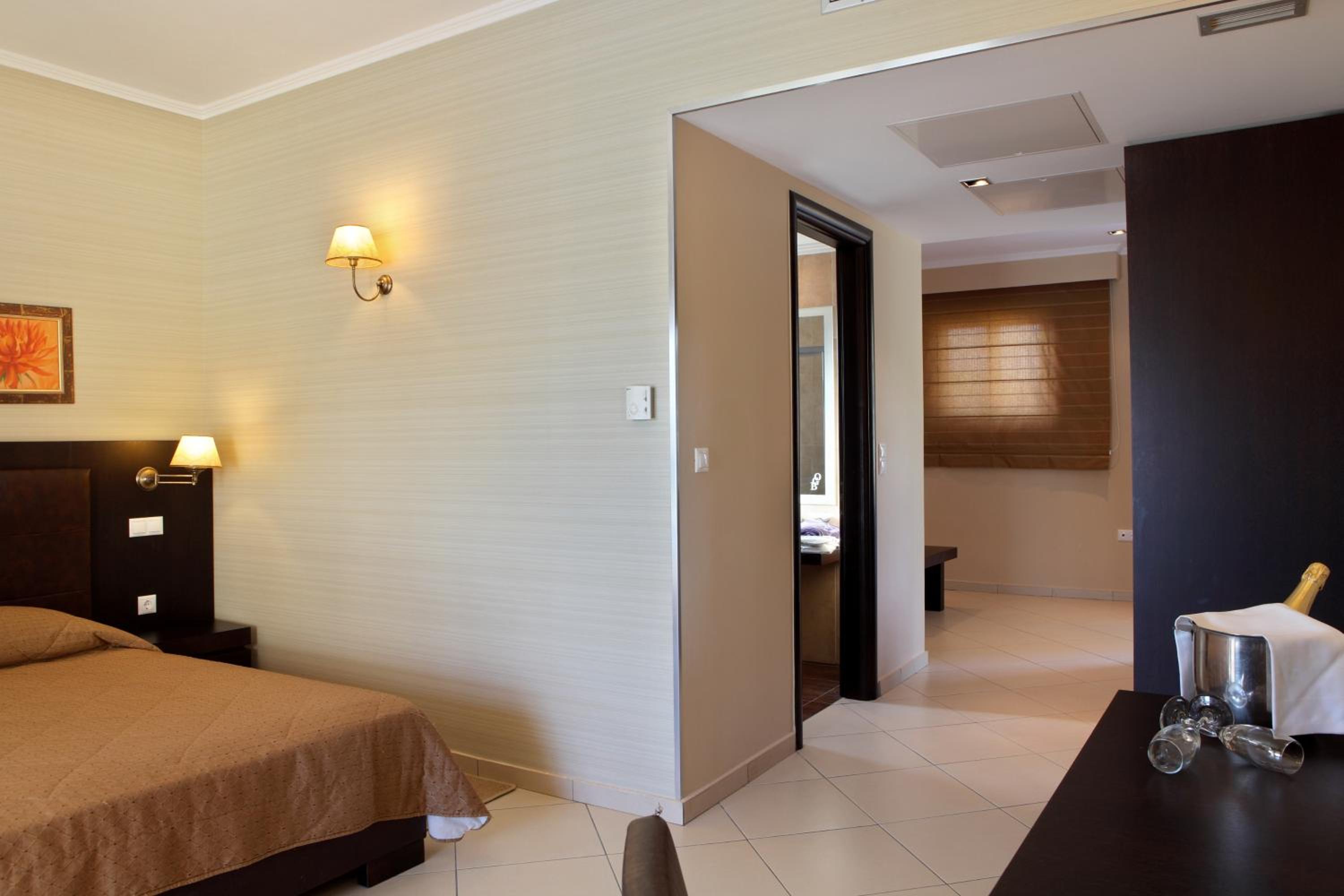 The spacious rooms at Olympia Golden Beach with large balconies and free Wi-Fi offer a comfortable stay for guests. Some rooms even provide direct access to a sharing or private pool, ensuring a relaxing experience.
