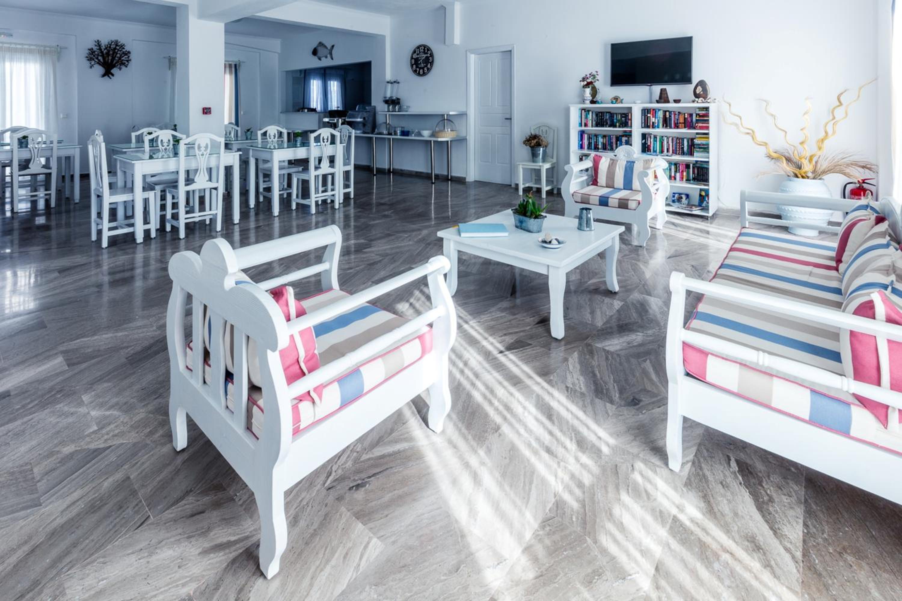 Unwind by the outdoor pool or soak up the sun on the terrace while sipping on refreshing drinks from the on-site snack bar. The proximity to the Black Beach offers guests a perfect retreat for a day of seaside relaxation.