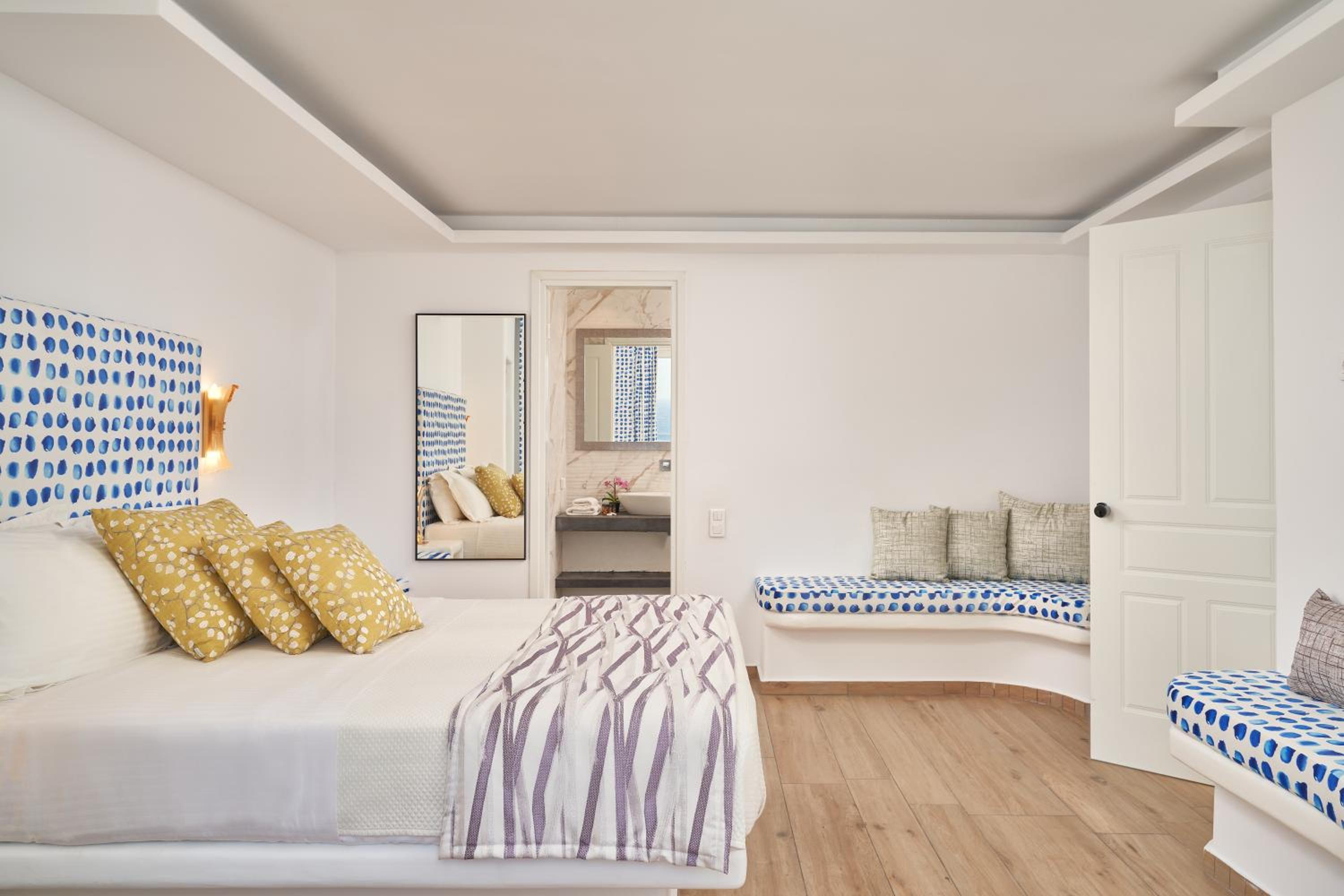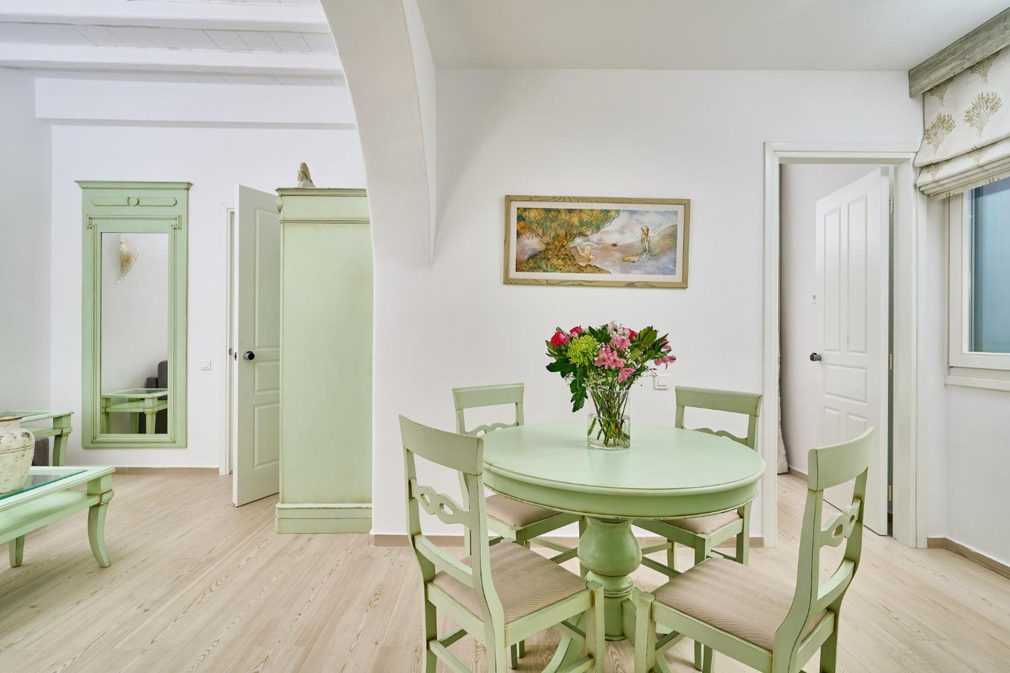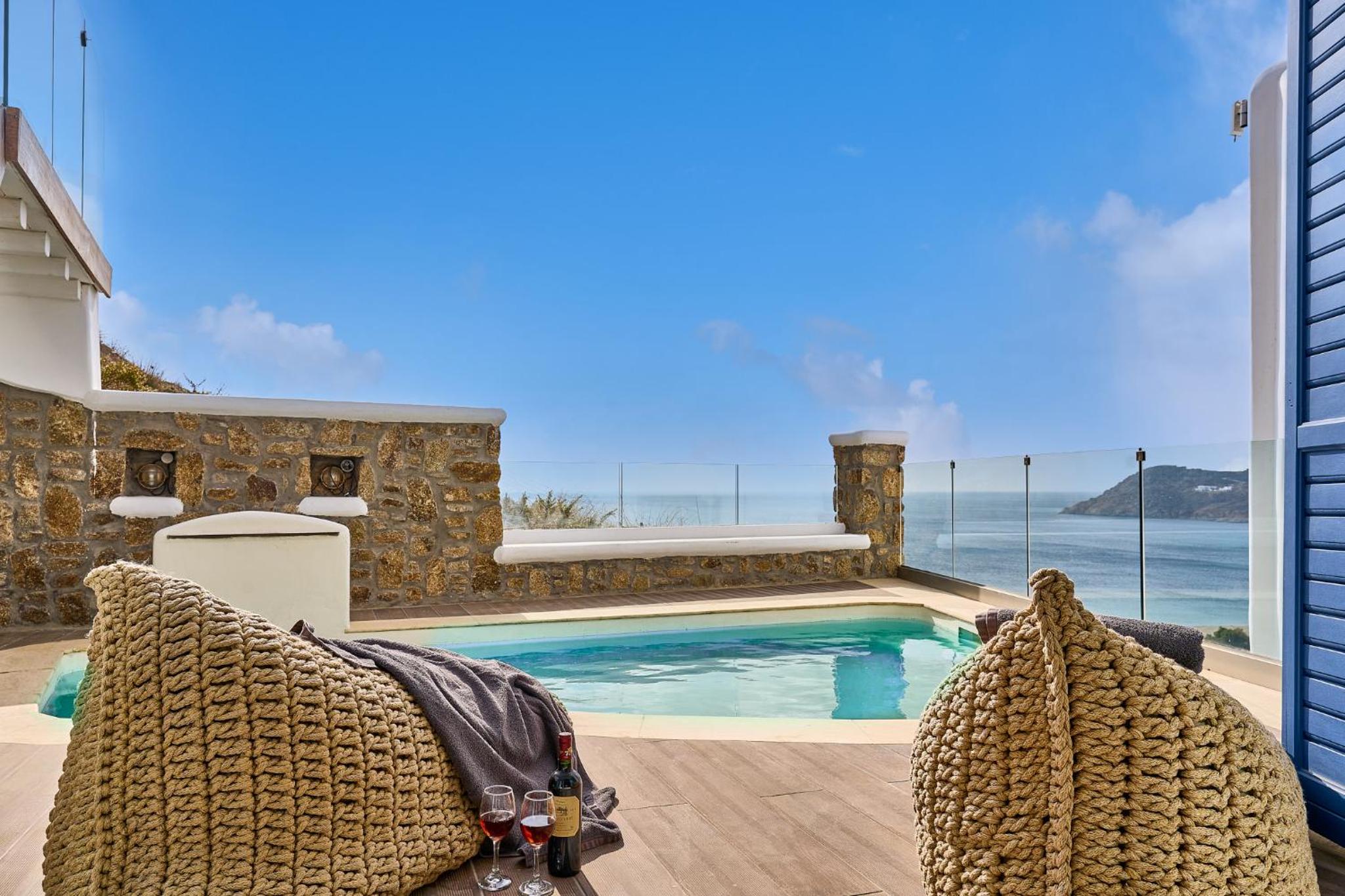 Experience luxury at its finest at Arte & Mare Elia Luxury Suites & Villas, where you can wake up to breathtaking views of the Aegean Sea or relax by the pool in the comfort of your own suite.