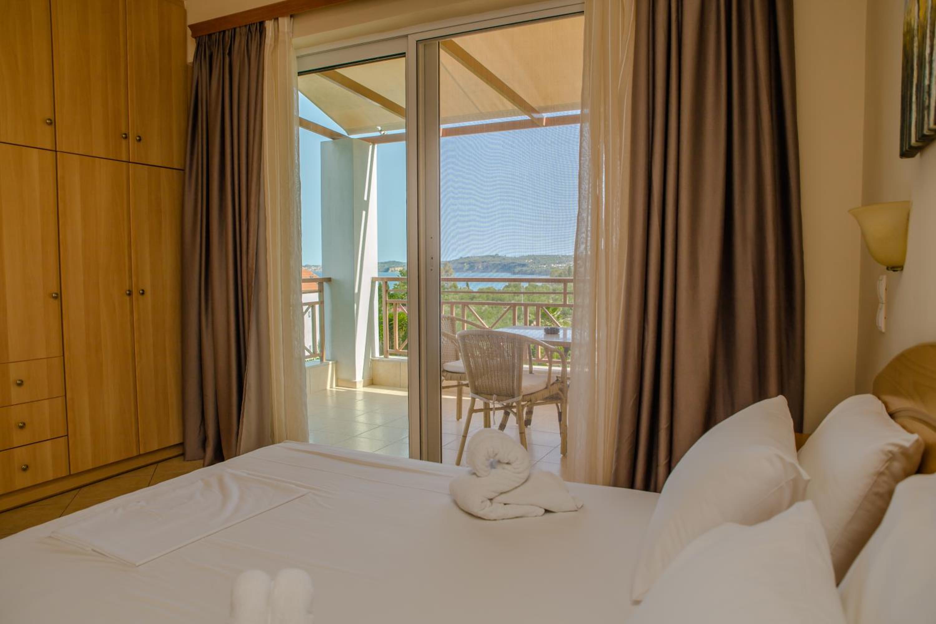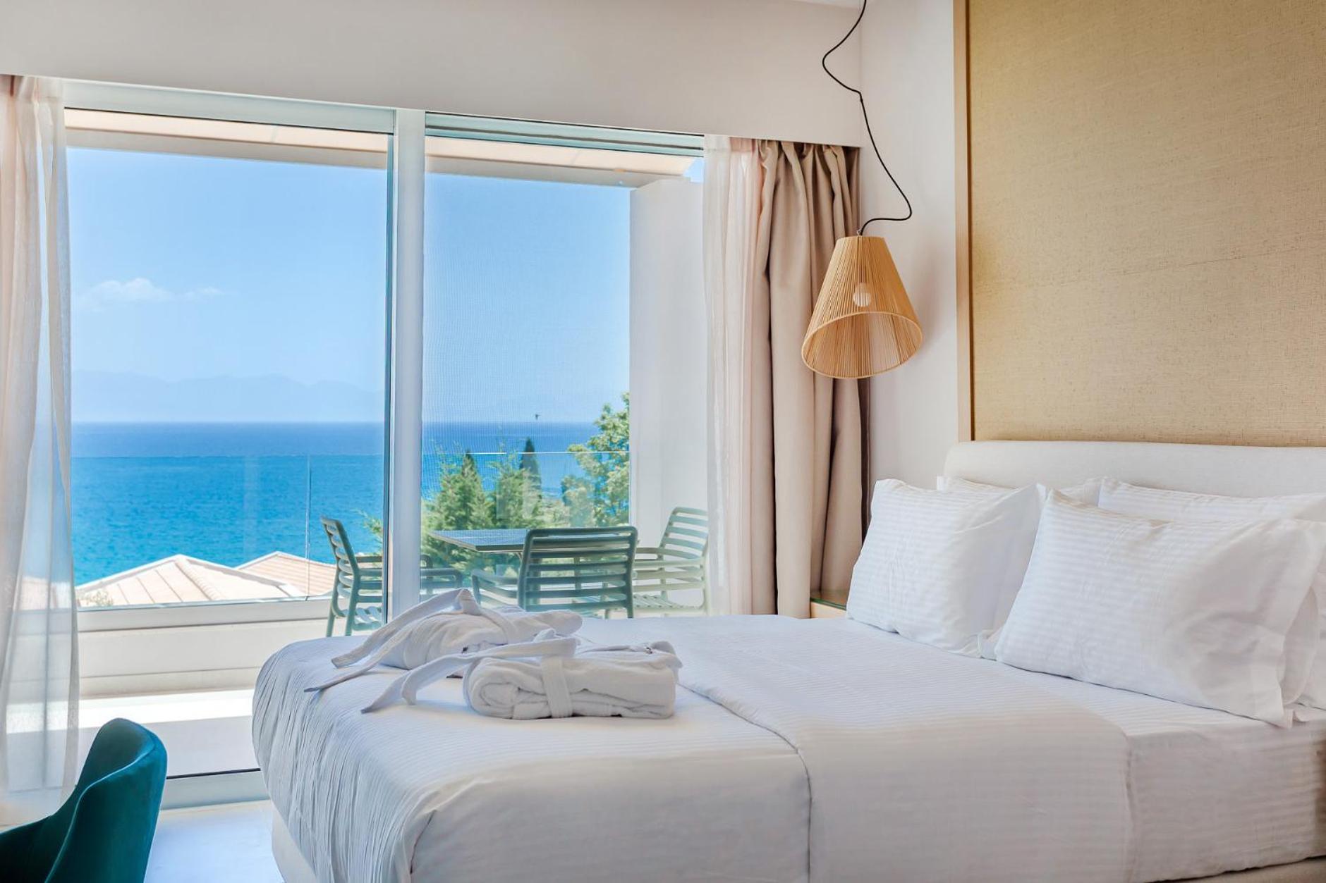 Breathtaking Views: Enjoy stunning sea views overlooking the Messinian Bay from Colonides Beach Hotel, located just a stone's throw away from Colonides Beach and Peroulia Beach.