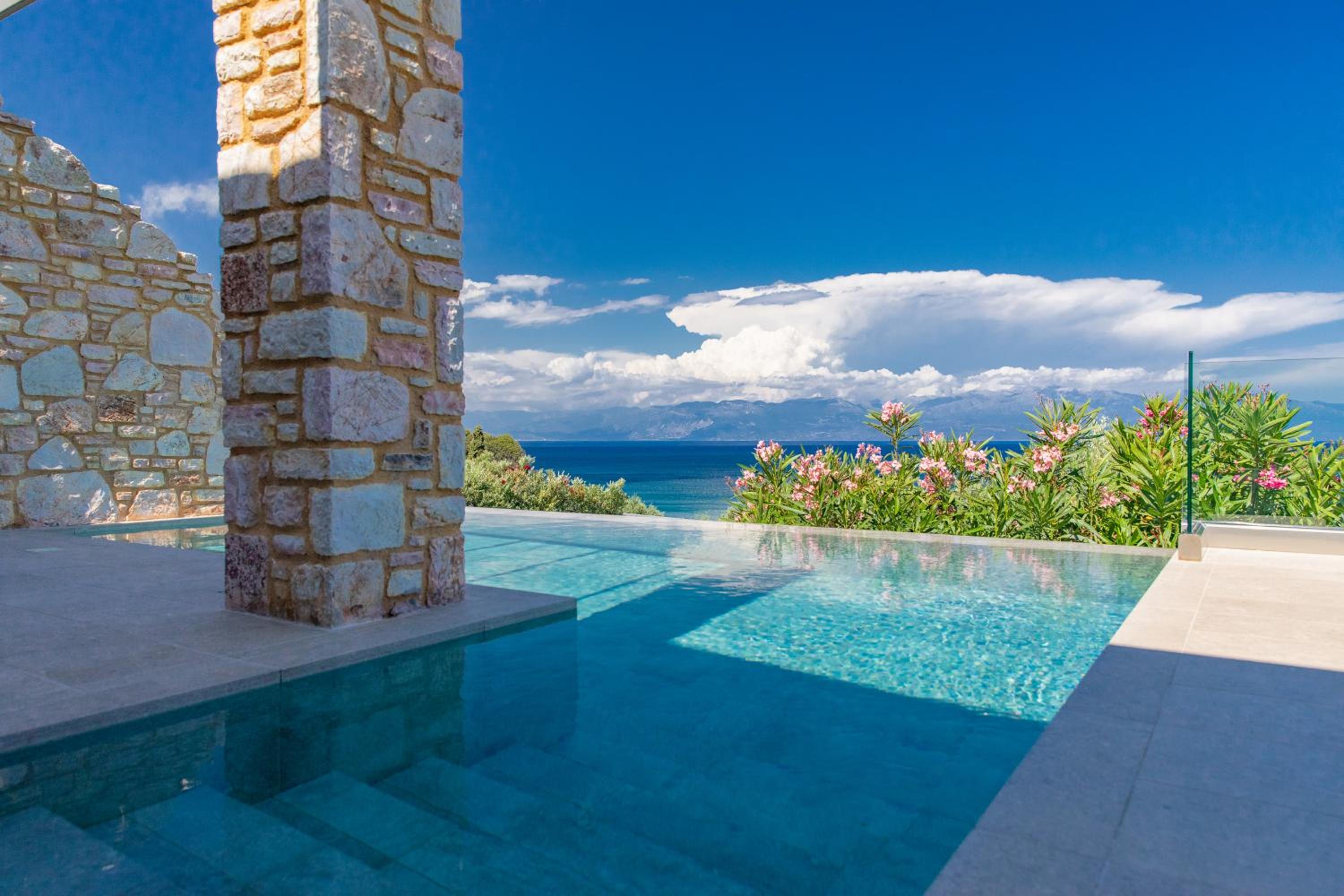 L’emplacement, la piscine à débordement avec vue sur la mer et l’ensemble des infrastructures.