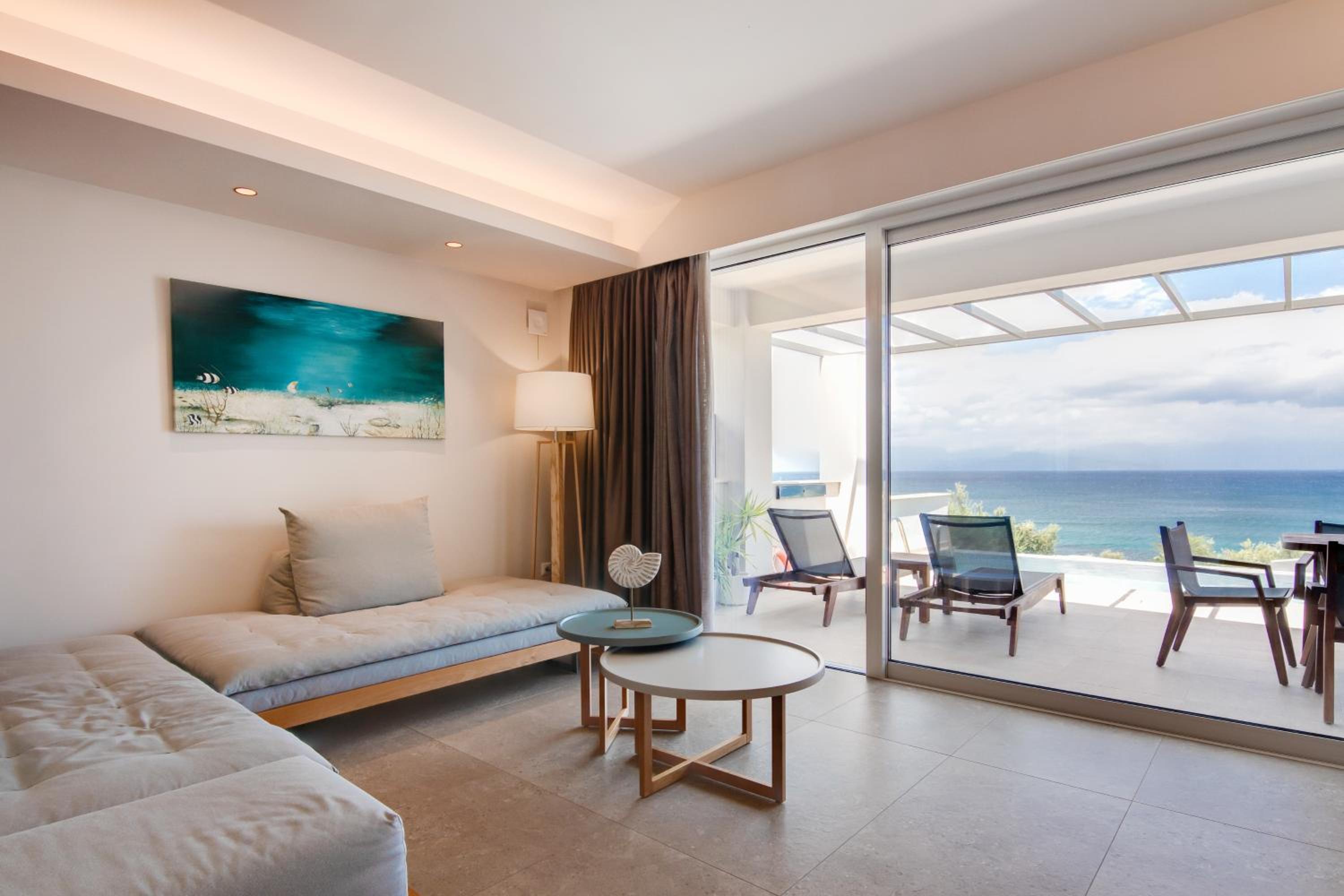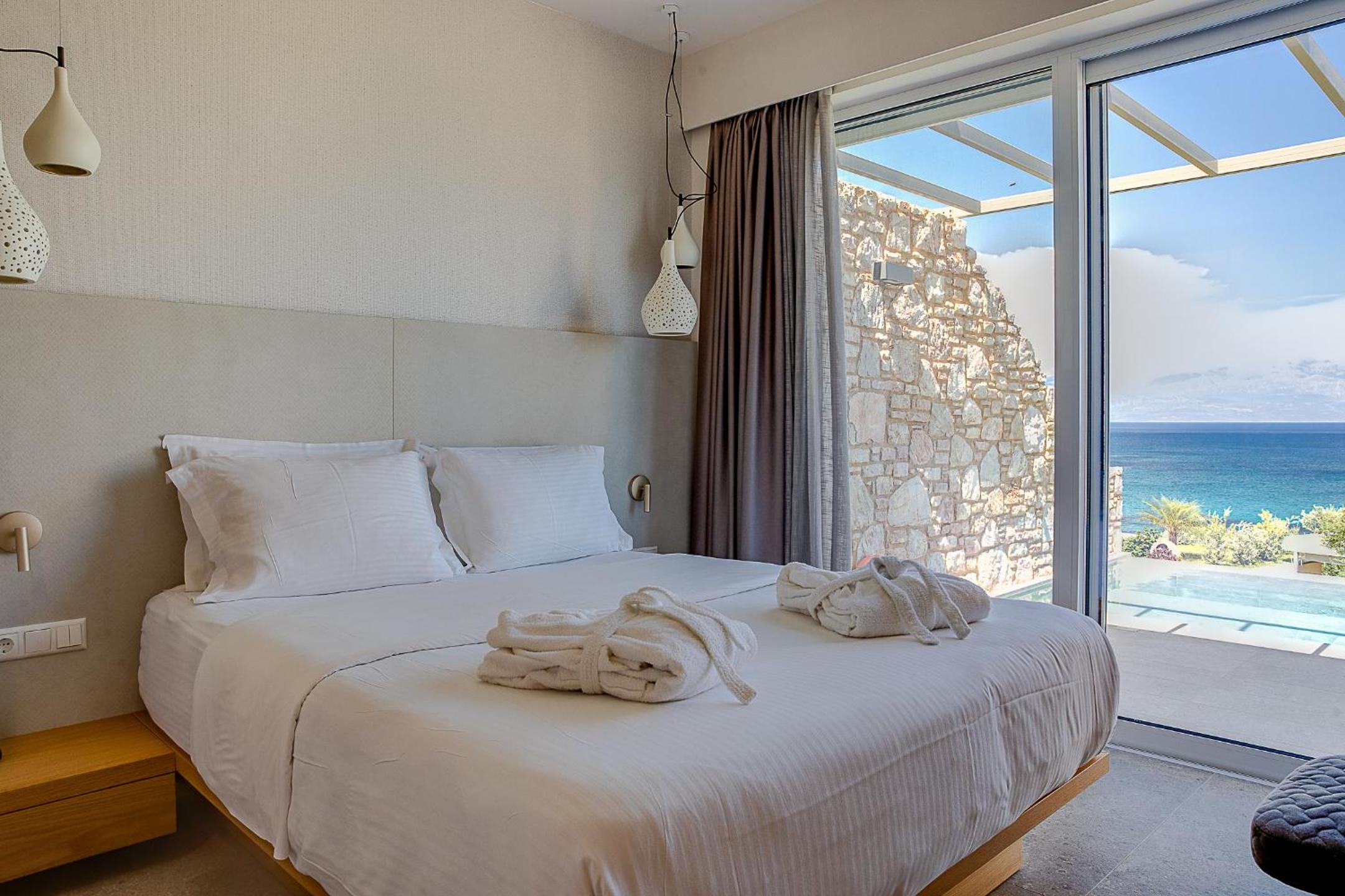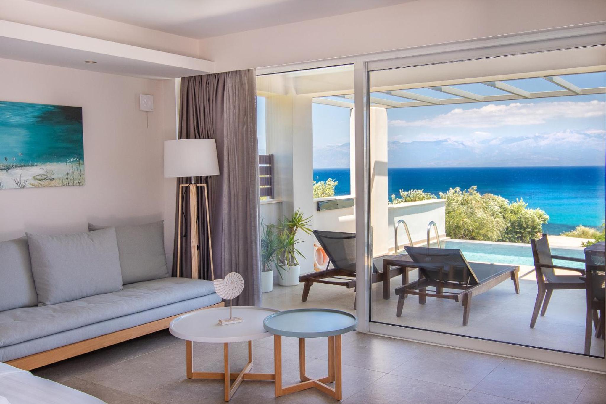 Das Boutique Hotel ist wunderbar ruhig zwischen Olivenhainen gelegen, unterhalb des Hotels mit herrlichen Infinity-Pool und feiner Küche läugt man in 2 Minuten zur kleinen Bucht mit Sandstrand. Es ist einfsch herrlich.