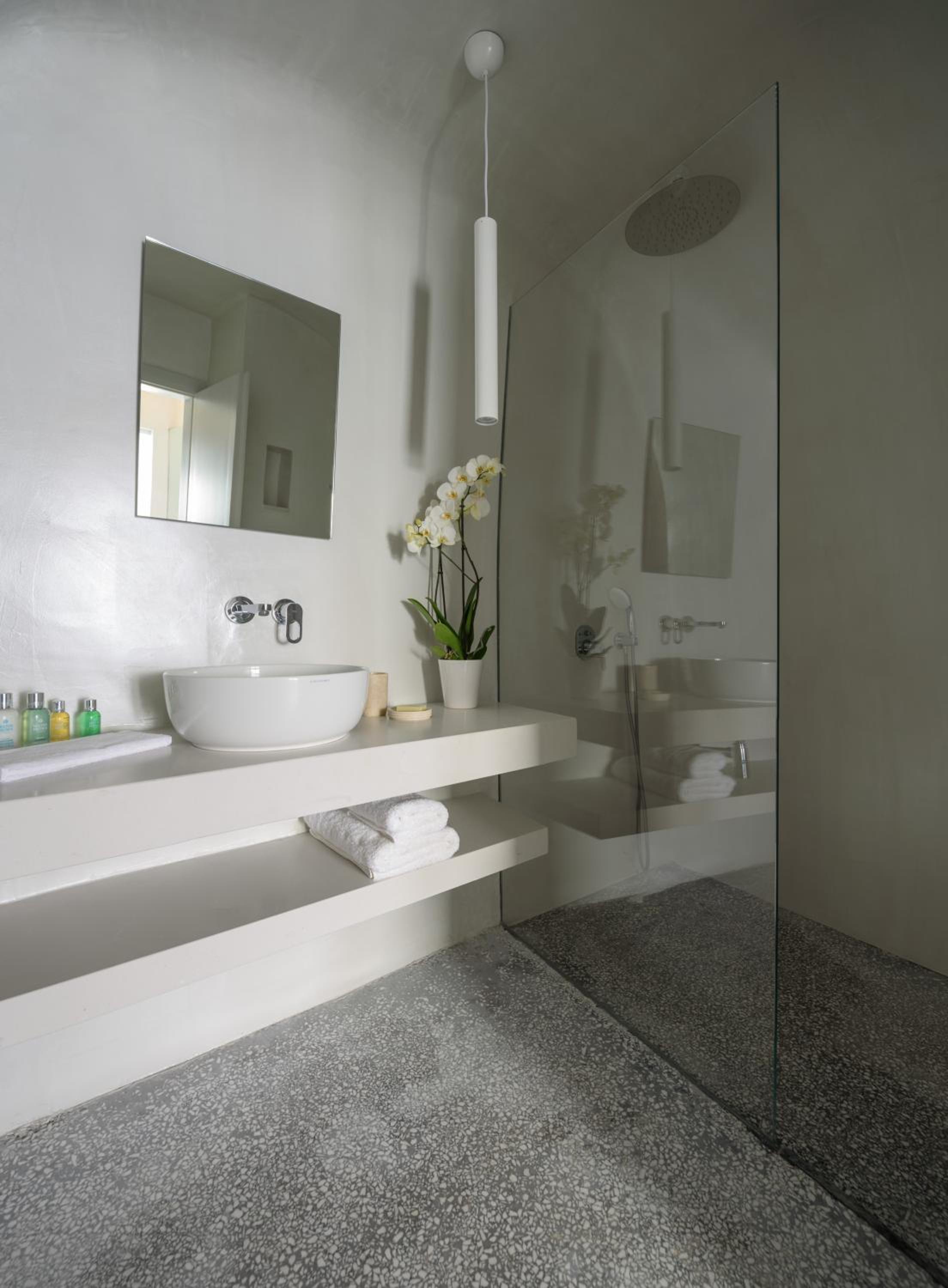 We stayed in the Echoes Suite with private outdoor plunge pool and semi outdoor hot tub with Caldera View. Our stay here was absolutely unforgettable! The staff were incredibly attentive, and the room was spotless and spacious with two full bathrooms. We loved the heated plunge pool and the unique hot tub that was accessed through the bedroom. The view was breathtaking, and the location was ideal - just a 10 minute walk to Oia yet wonderfully private. A delicious breakfast served on our balcony looking at the spectacular view each morning was the highlight, A truly special place that exceeded our expectations!!