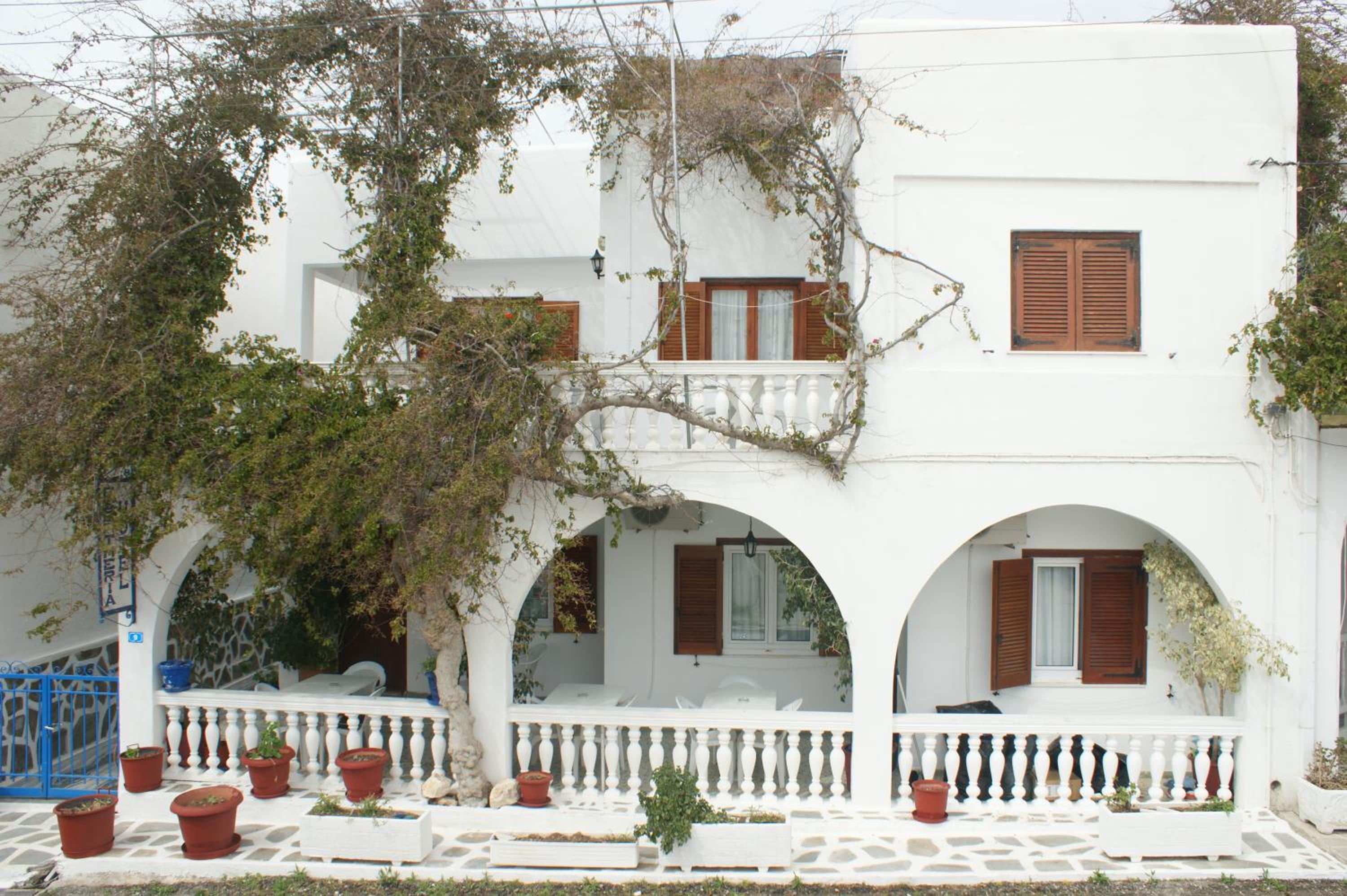 Hotel Eleftheria, covered in vibrant bougainvillea, is a charming retreat in Parikia Town, a stone's throw away from Livadia Beach and a short stroll to bustling restaurants, bars, and shops.