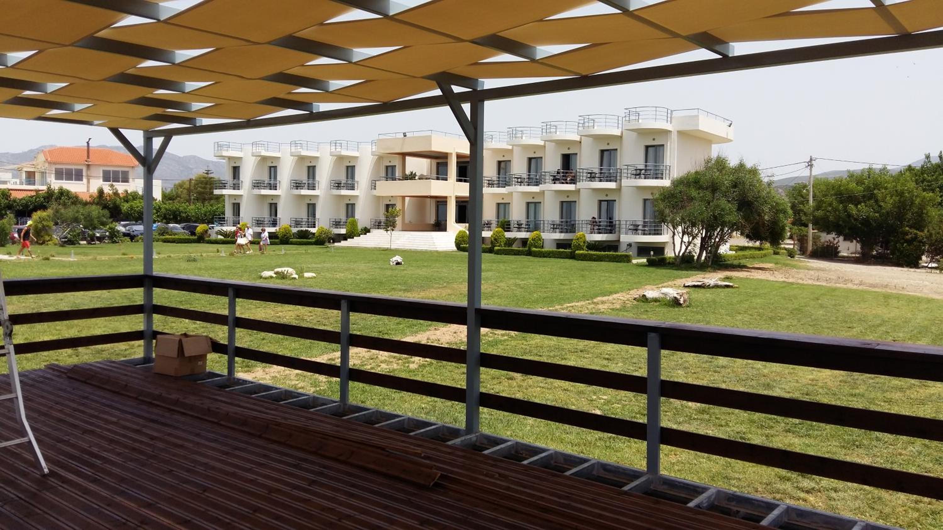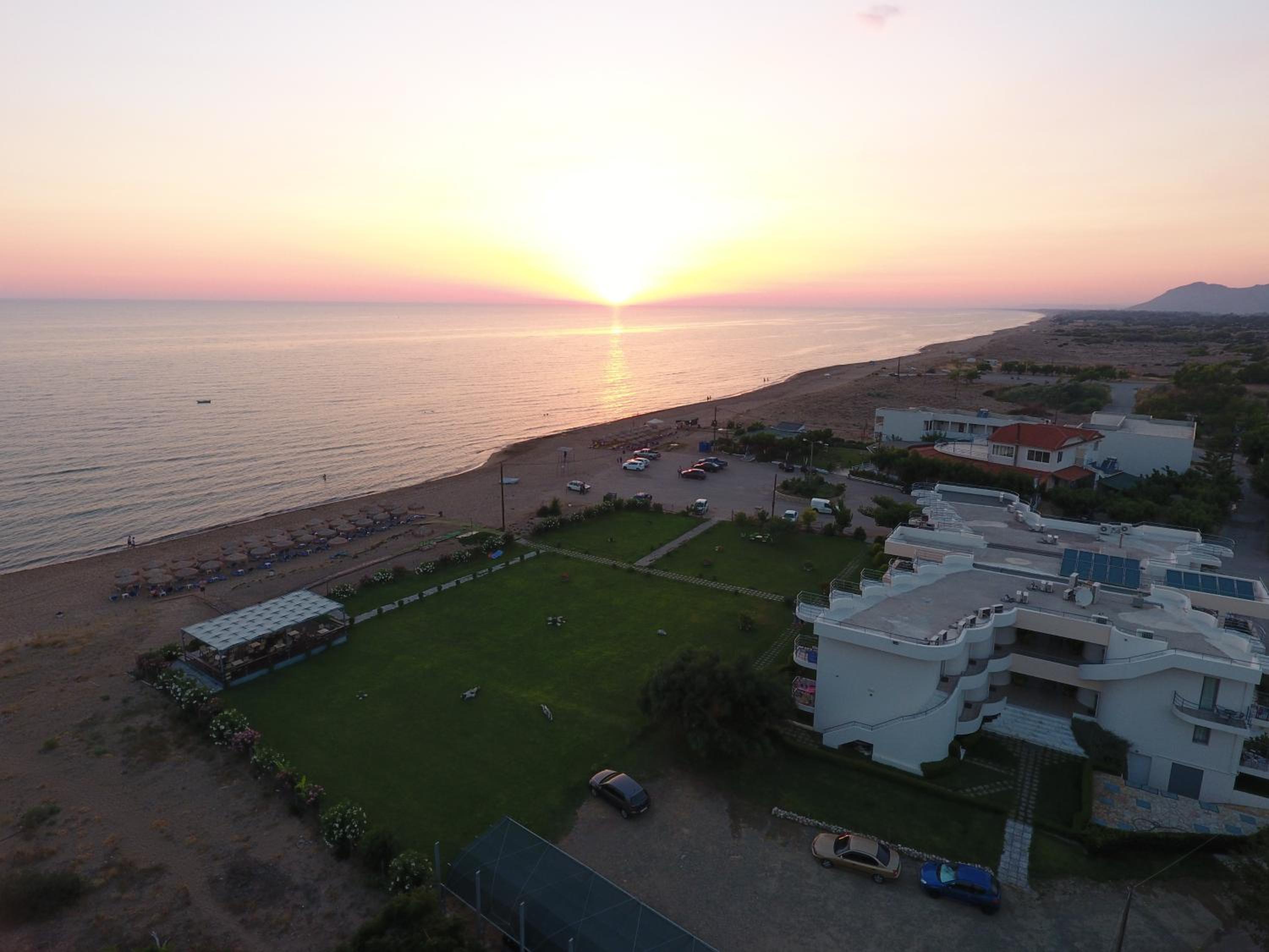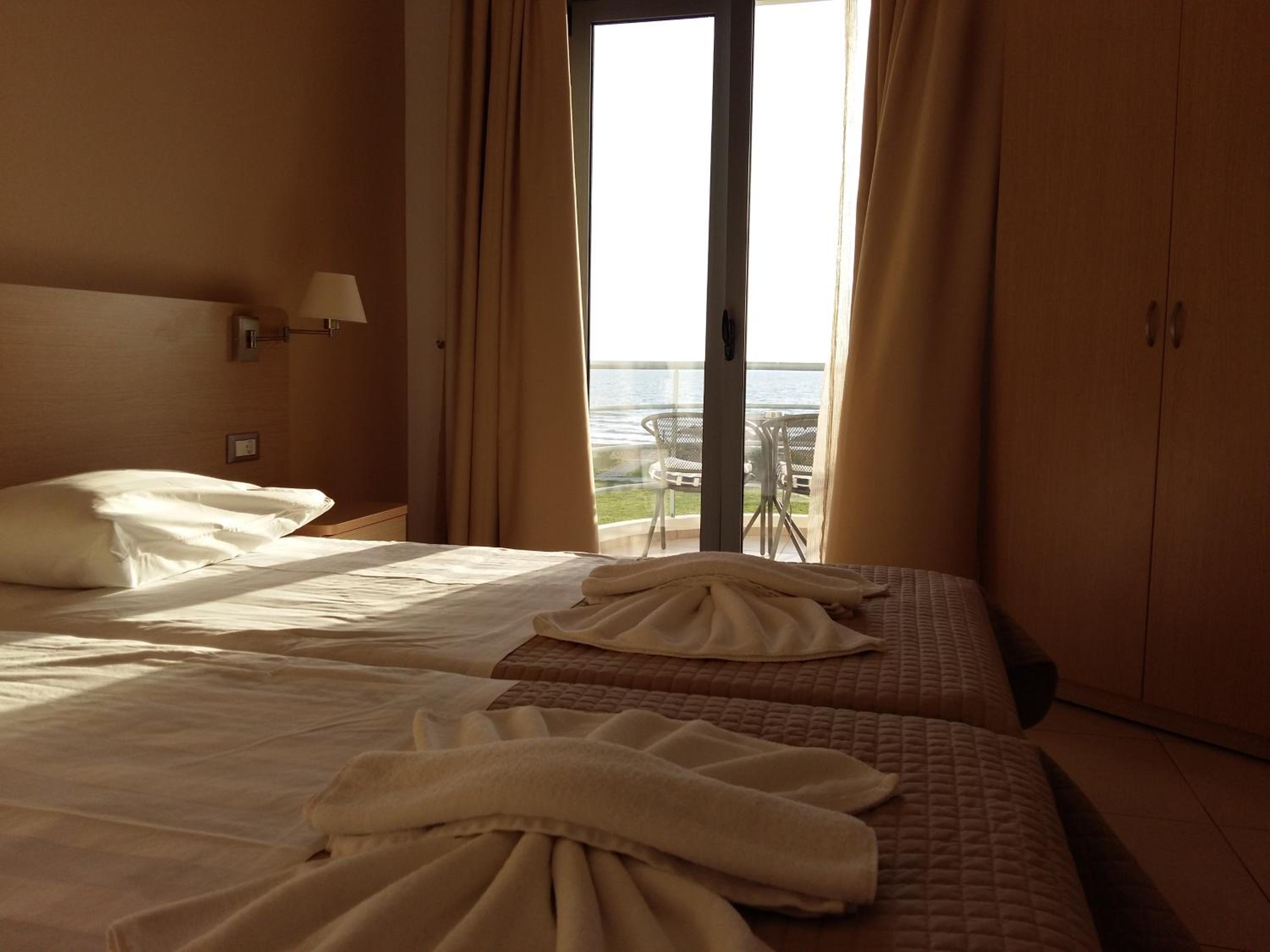 Lokacija je vec kot odlicna, ob najboljsi plazi v tem predelu. V mestecu je kar nekaj vrhunskih tavern. Zajtrk je povprecen. Postelje mehke, klima dela super. Cistoca je ok. Soba je bila velika. Na plazi vsaki sobi pripada en komplet( sencnik in dva lezalnika). Iz pticje perspektive ima hotel obliko metulja, zelo zanimiva arhitektura!