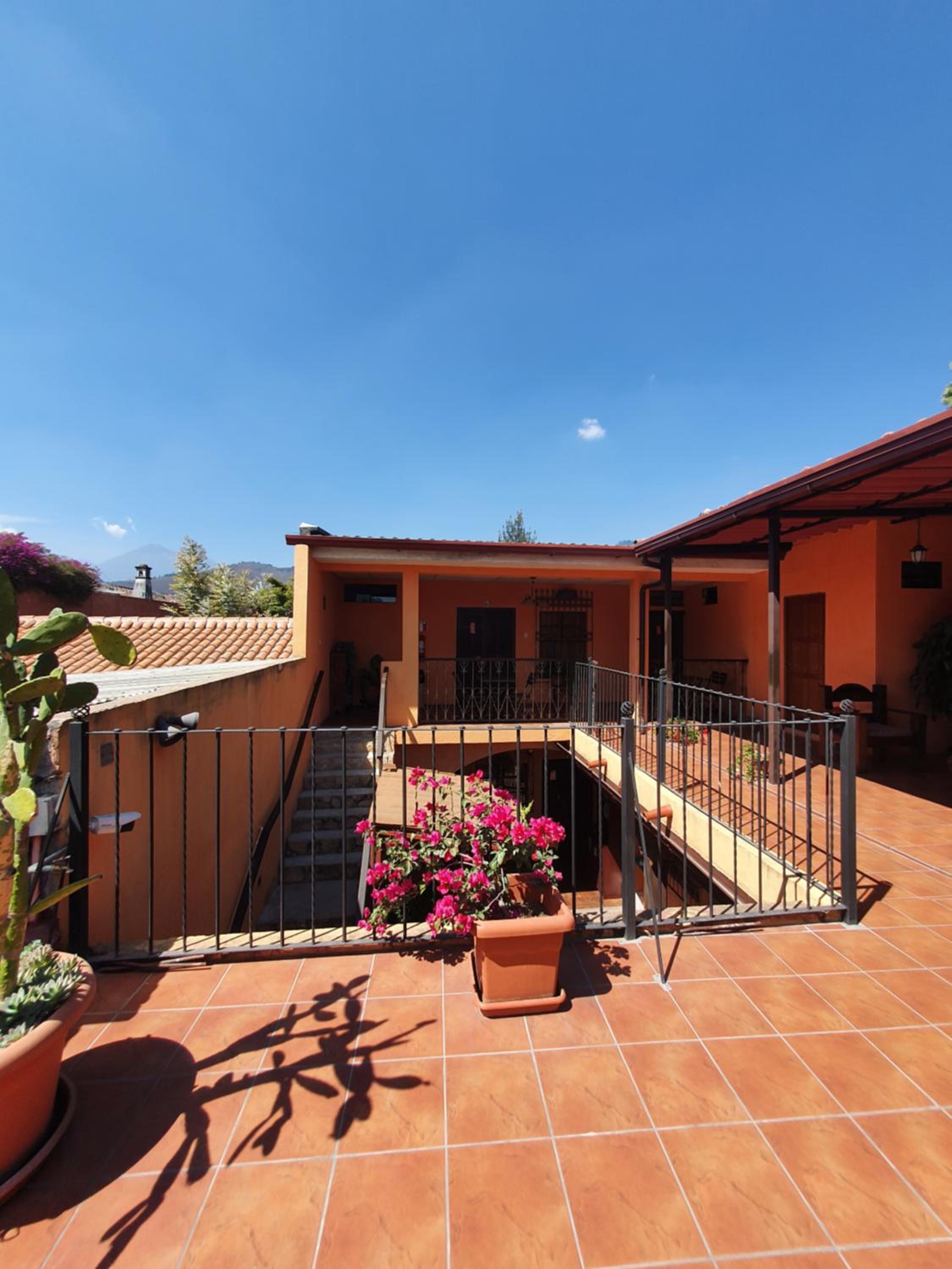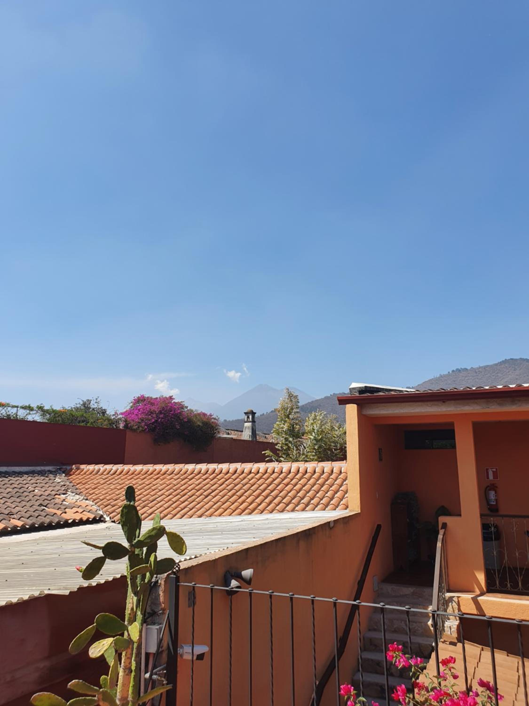 O hotel tem um terraço superior com uma vista privilegiada dos 3 vulcões, Água, Acatenango e Fuego. Se tiver de retornar, ficarei hospedada neste hotel novamente. Recomendo.