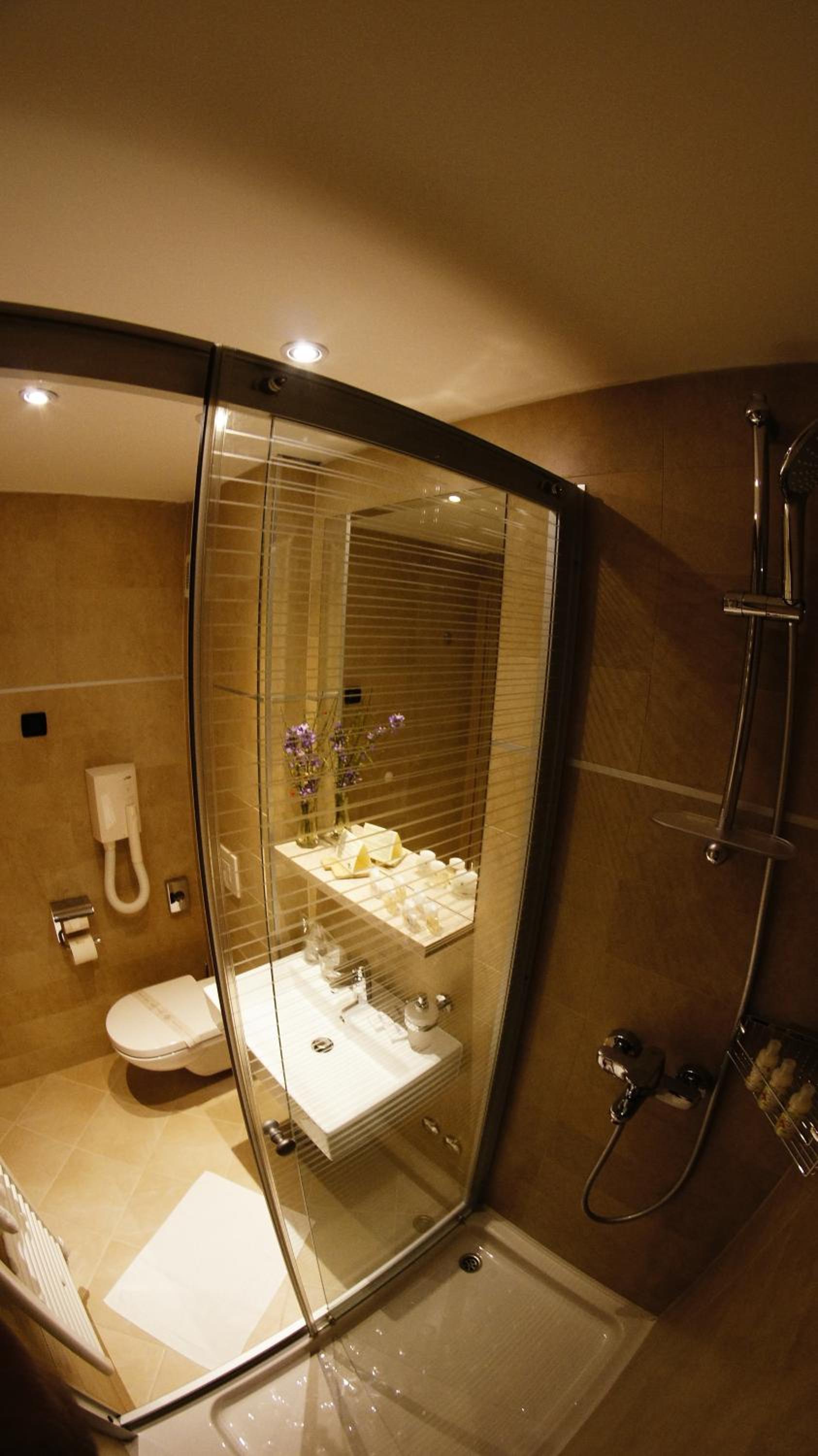 Luxurious Accommodation: Hotel Kimen - Annex offers air-conditioned rooms with modern amenities including a flat-screen TV, safe, desk, and minibar. The private bathrooms feature a shower and hairdryer for ultimate comfort.