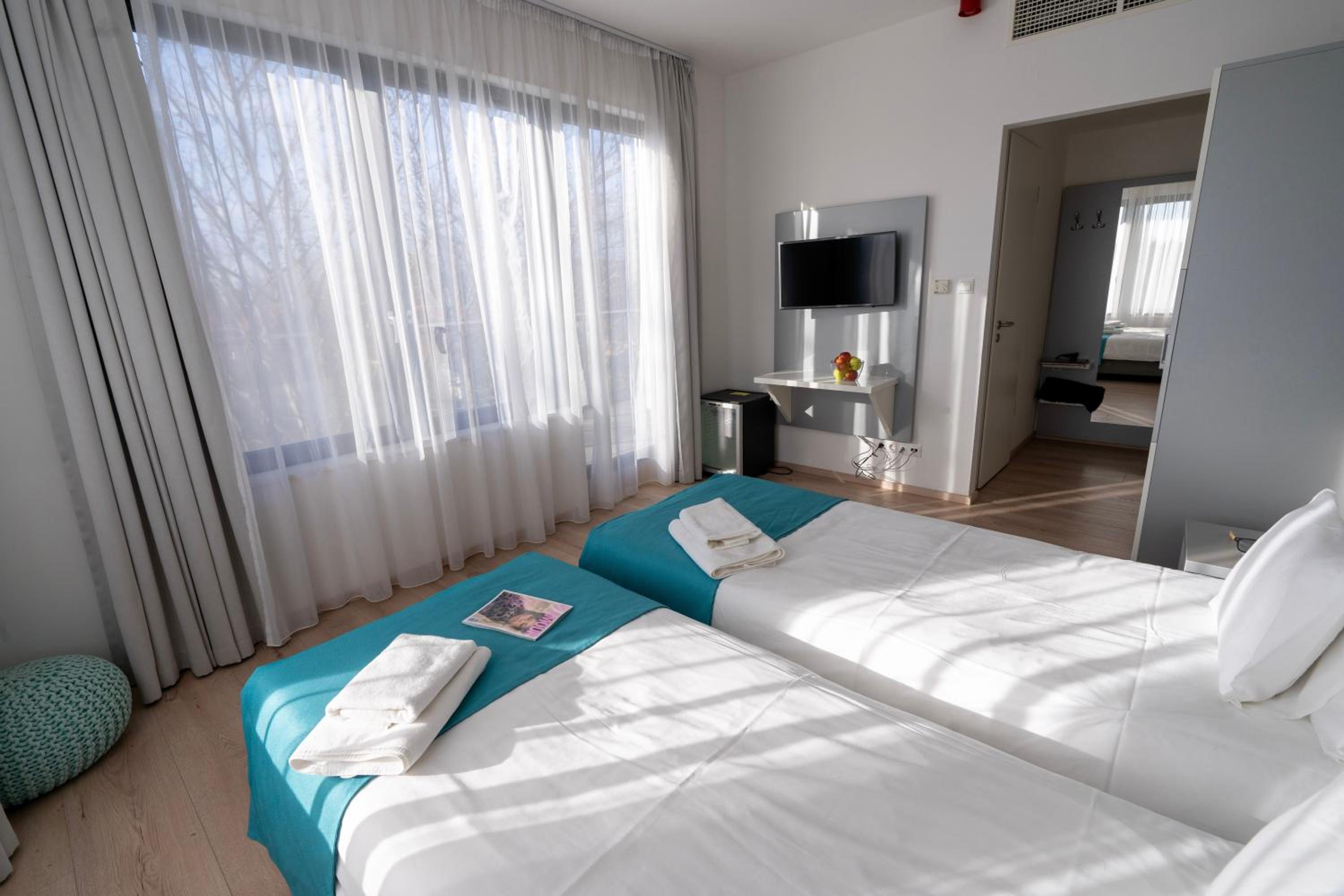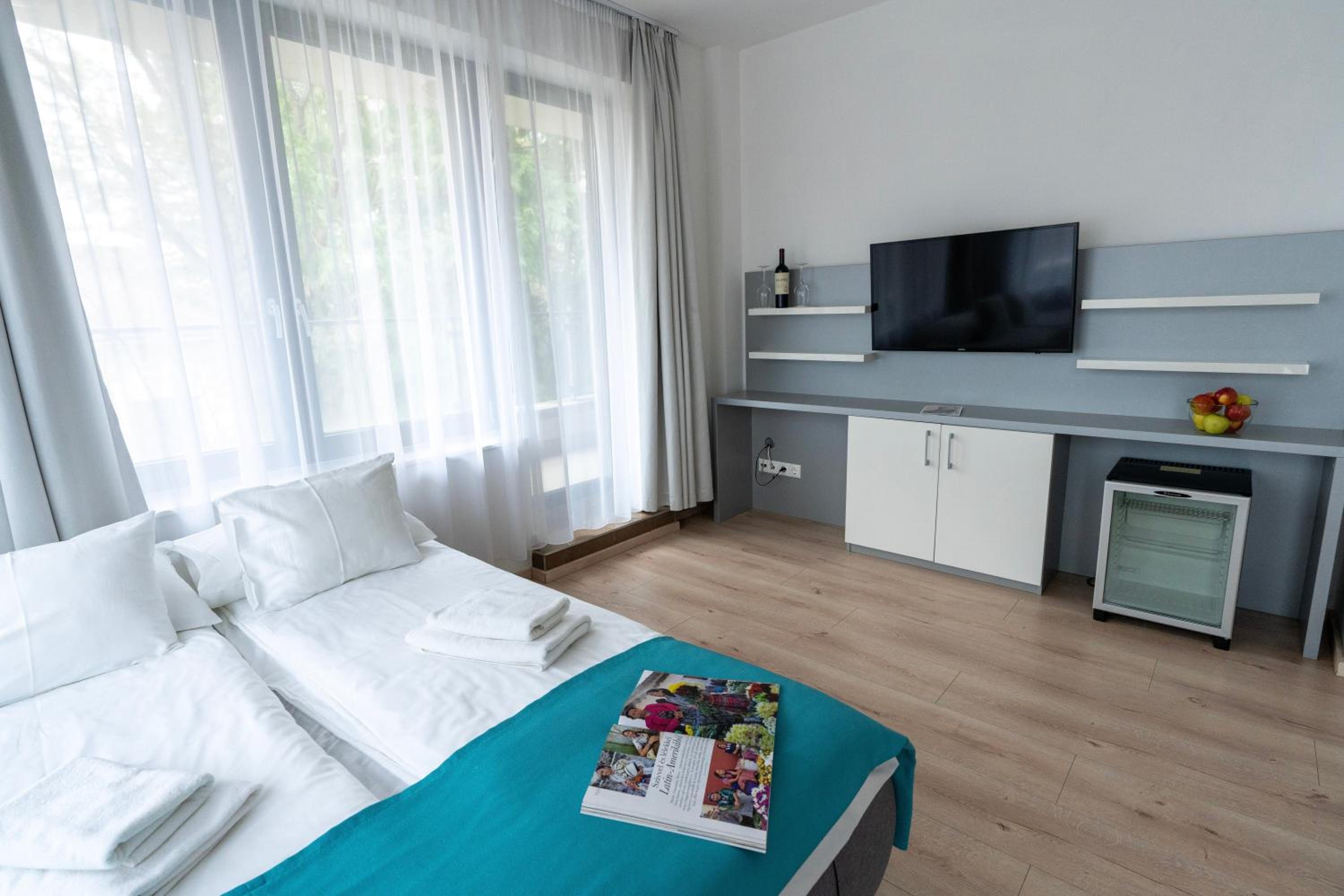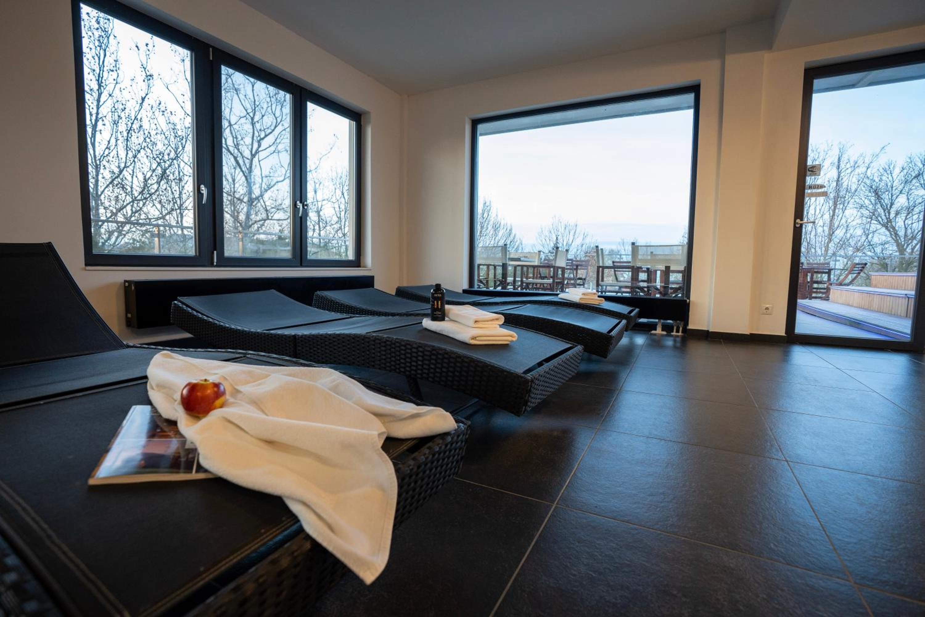 Kiváló az elhelyezés. A személyzet kifogástalan. A közösségi terek hasznosak, pingpong, biliárd, csocsó. A telőtéri wellness fantasztikus. A szauna panorámája a naplementébe páratlan. A pazar reggeli és vacsora zseniális.
