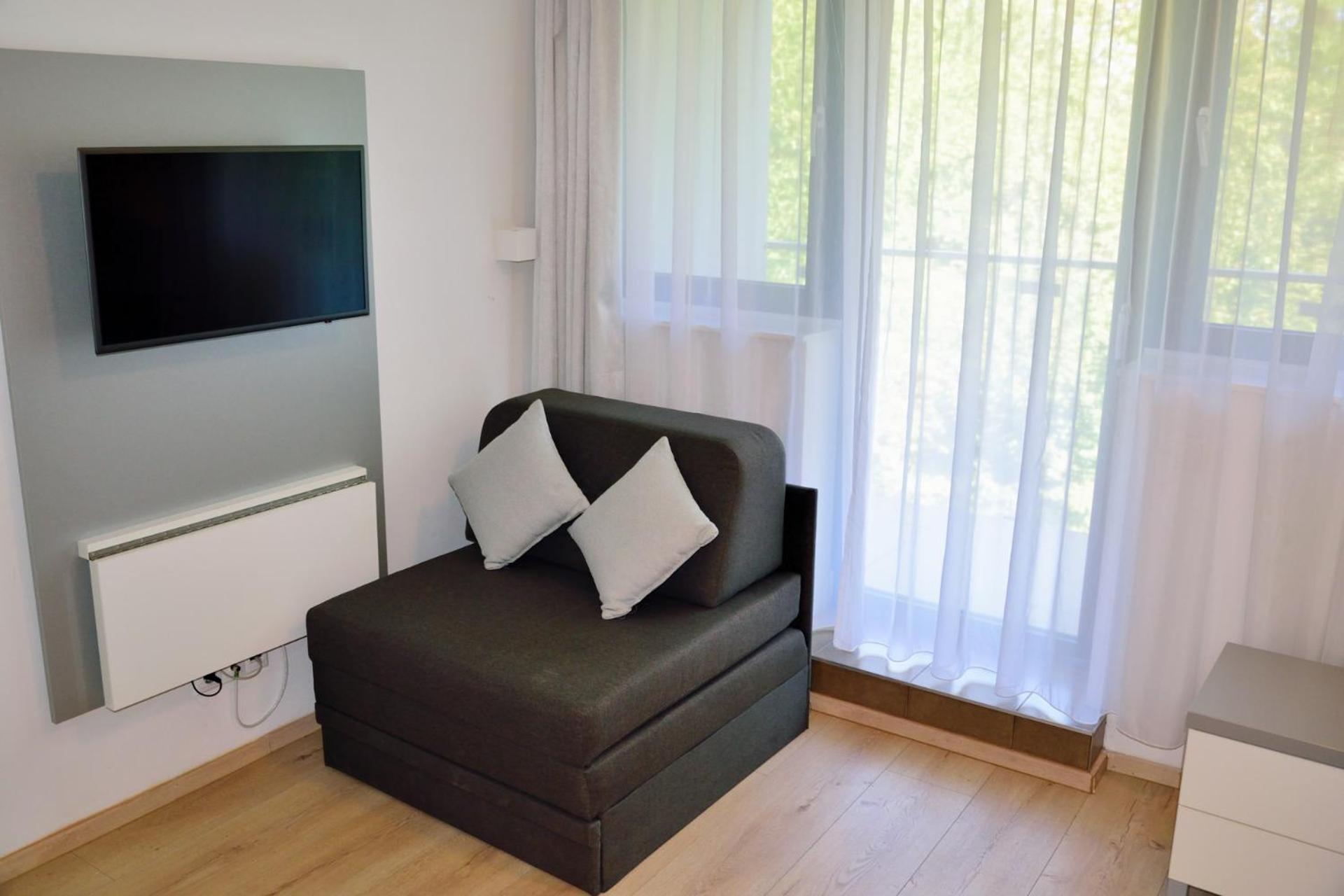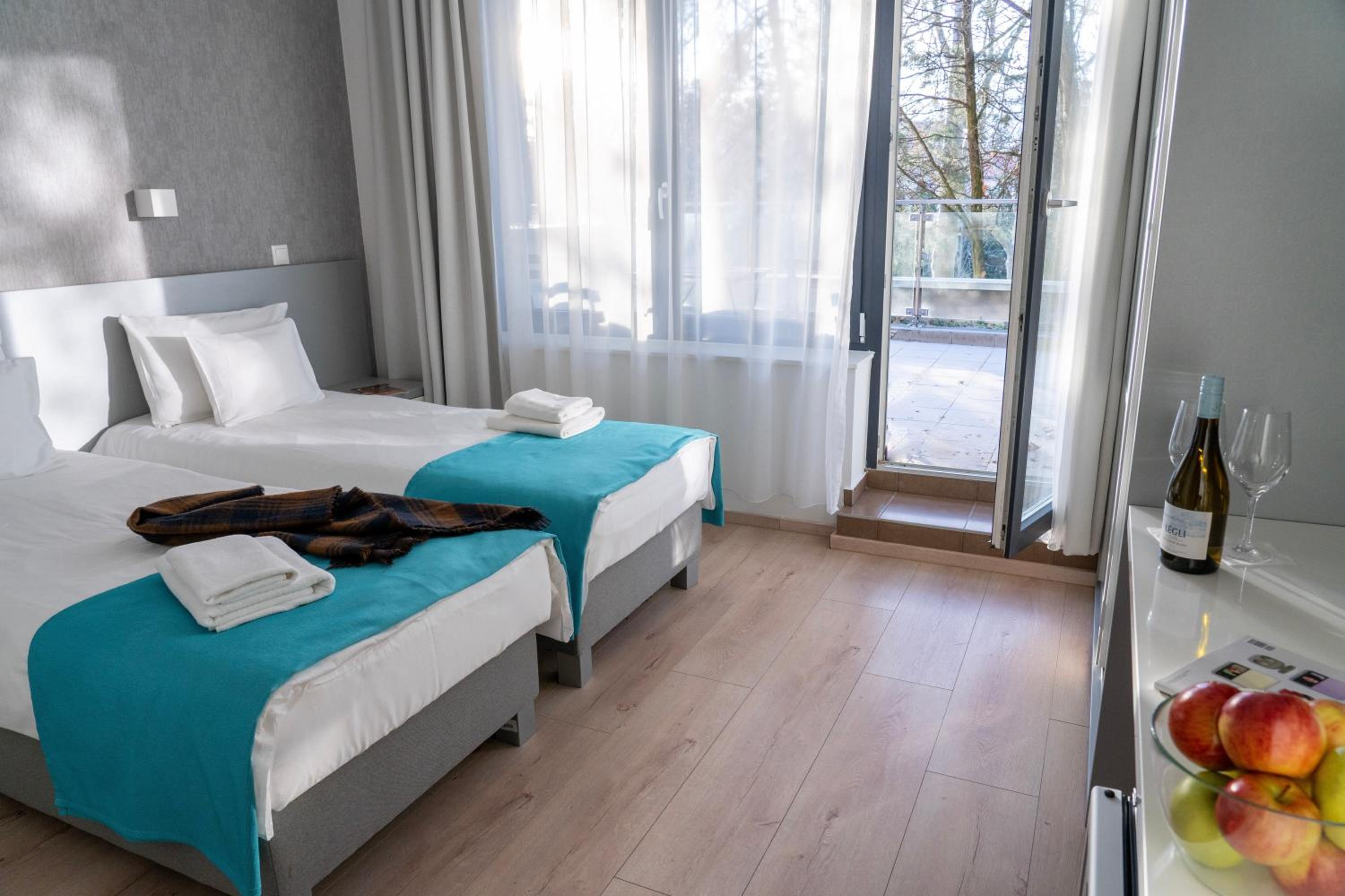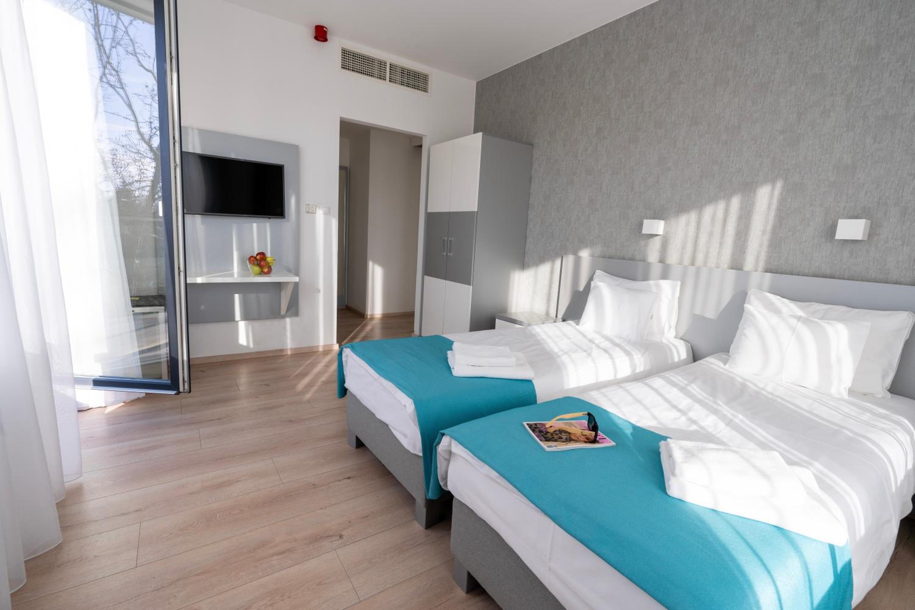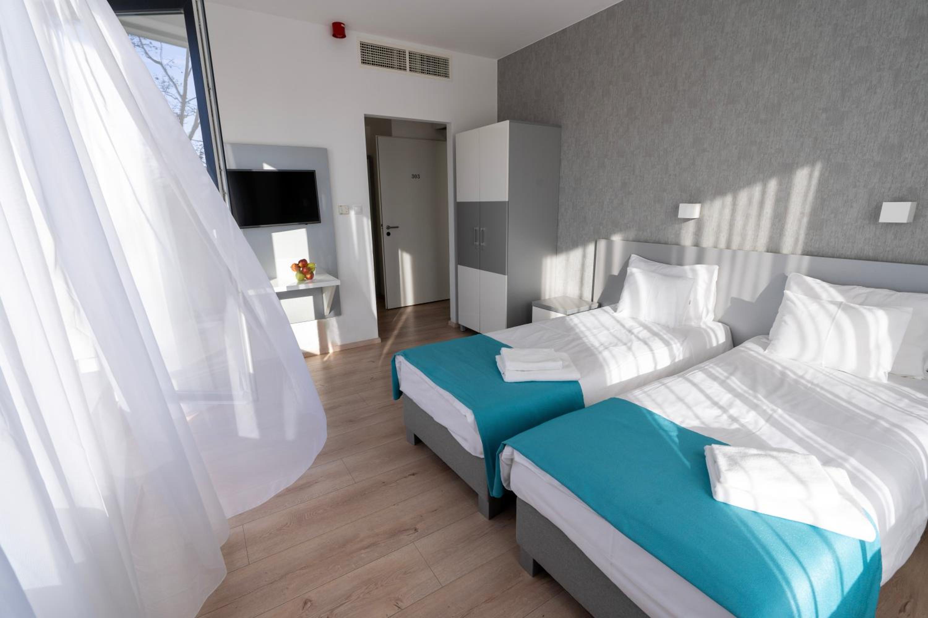 Kiváló az elhelyezés. A személyzet kifogástalan. A közösségi terek hasznosak, pingpong, biliárd, csocsó. A telőtéri wellness fantasztikus. A szauna panorámája a naplementébe páratlan. A pazar reggeli és vacsora zseniális.