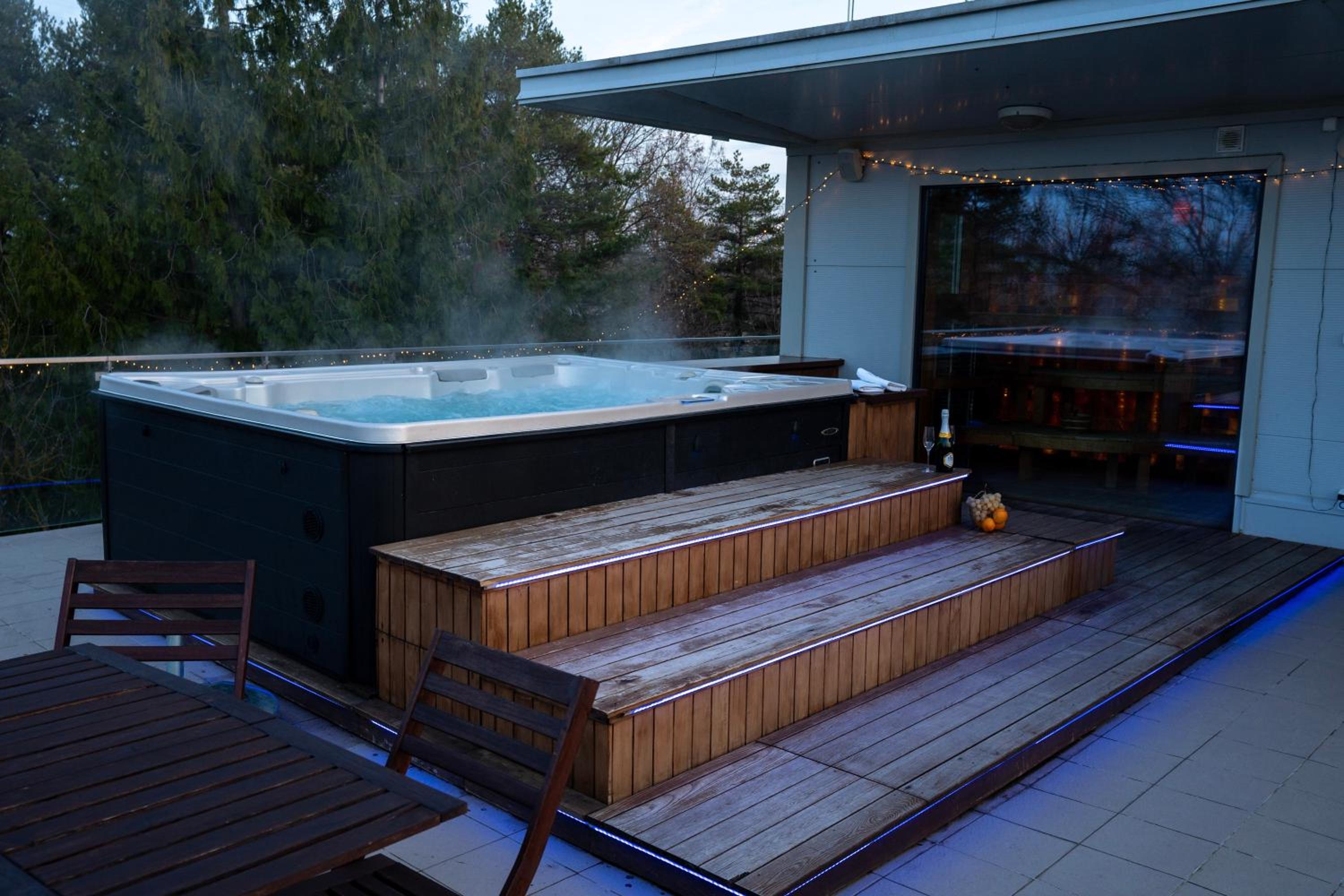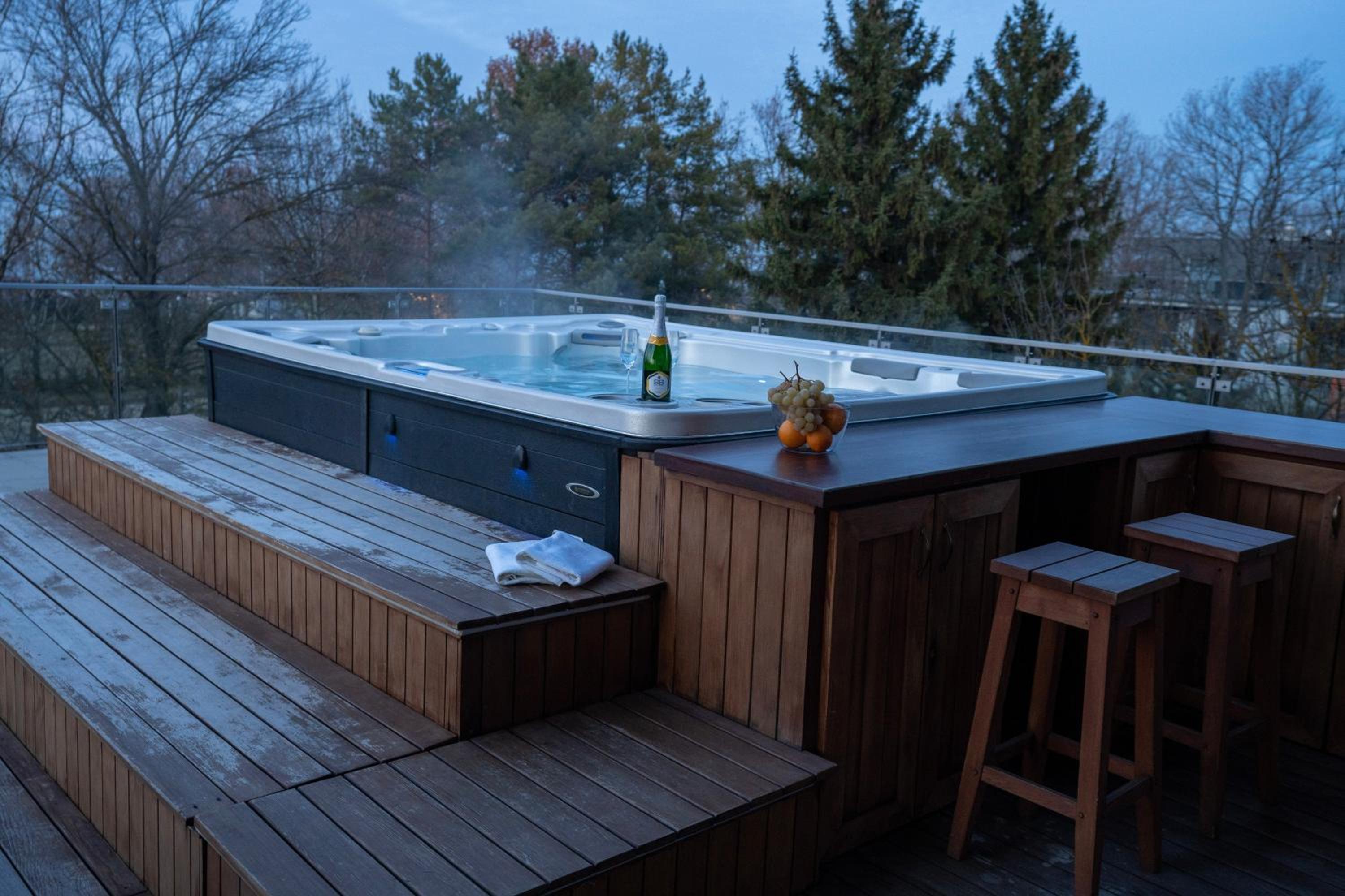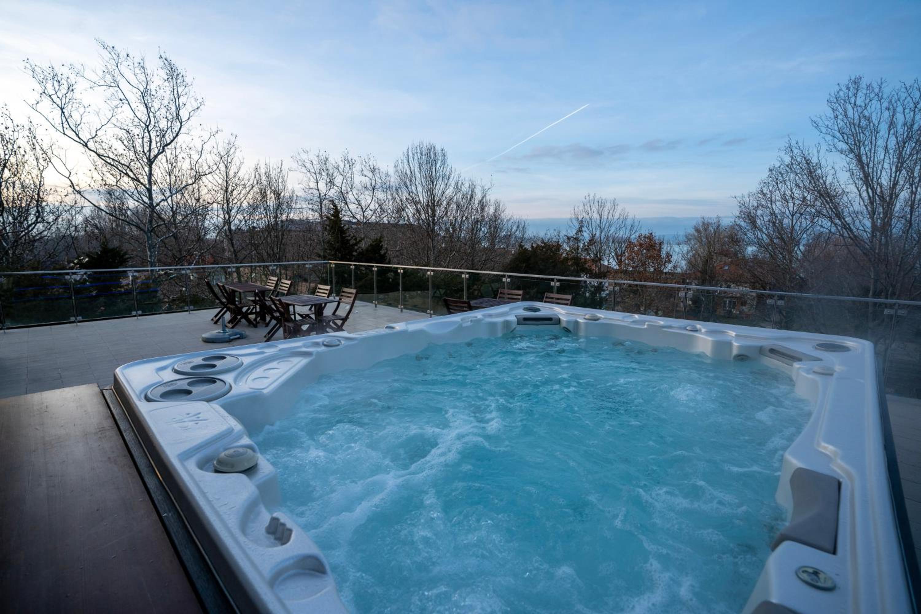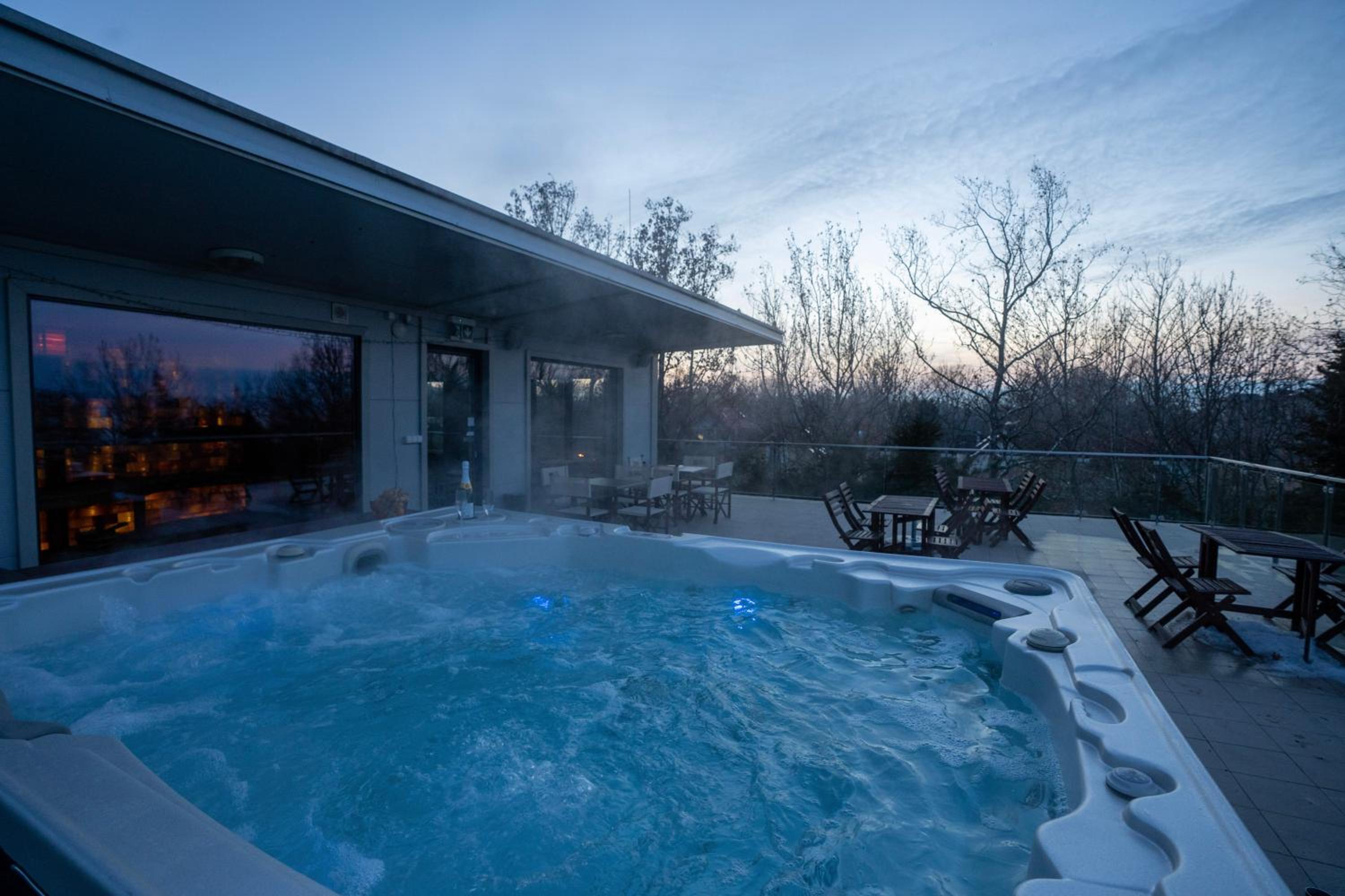 A kültéri jakuzzi fantasztikus lehetne, de 5 perc után a 31 fok nagyon kevés. Hideg a tartósabb ott tartózkodáshoz.