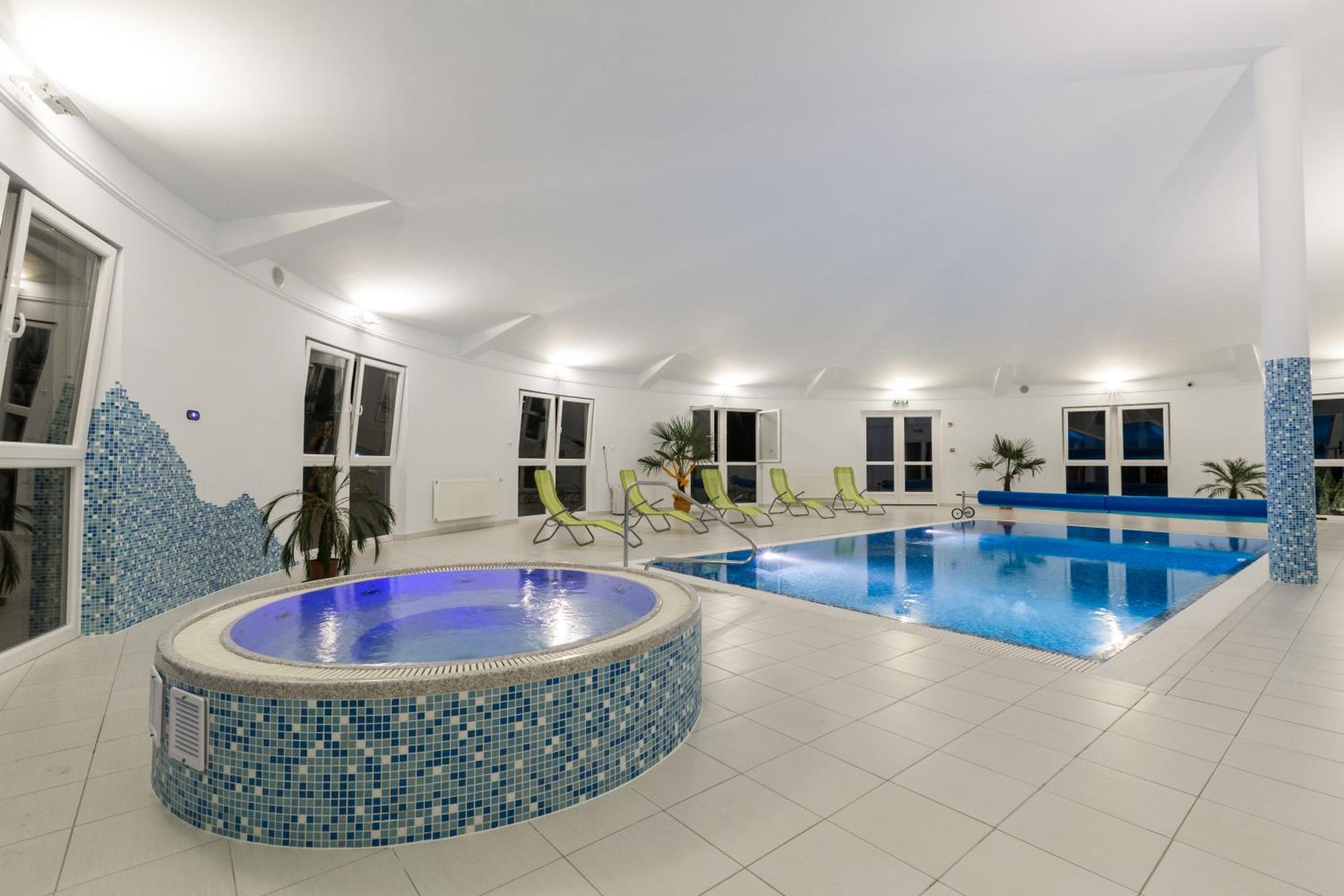 Serenity and Relaxation: Unwind in our spa and wellness center featuring an indoor pool, sauna, and hot tub.