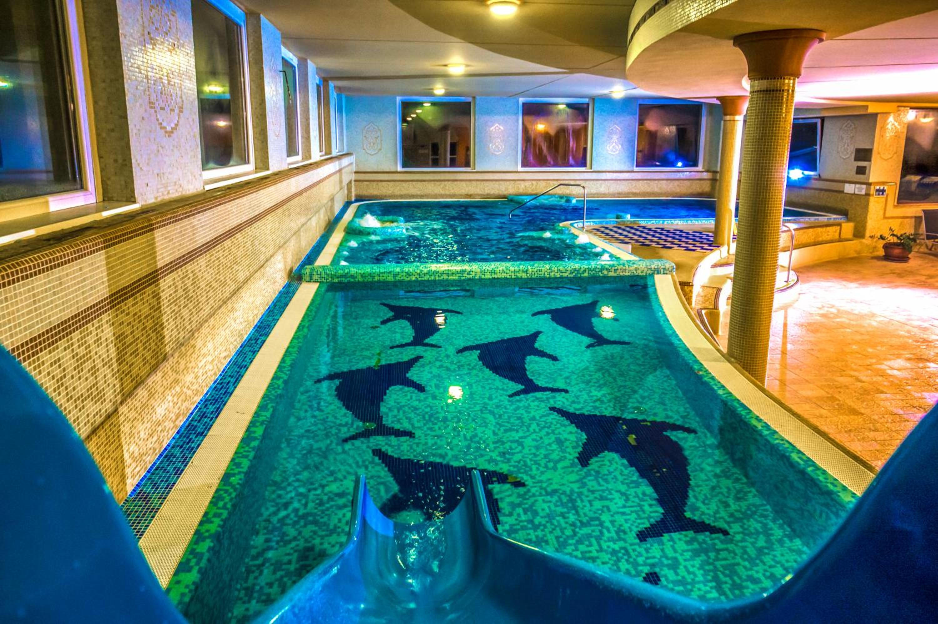 Nagyon hideg volt a medence. Senki nem fürdött vagy úszott éppen ezért benne és mindenki a kis melegvizes medencékben akart elhelyezkedni, amik mennyisége és nagysáfa ehhez a nagy szállodához kevésnek bizonyult.
