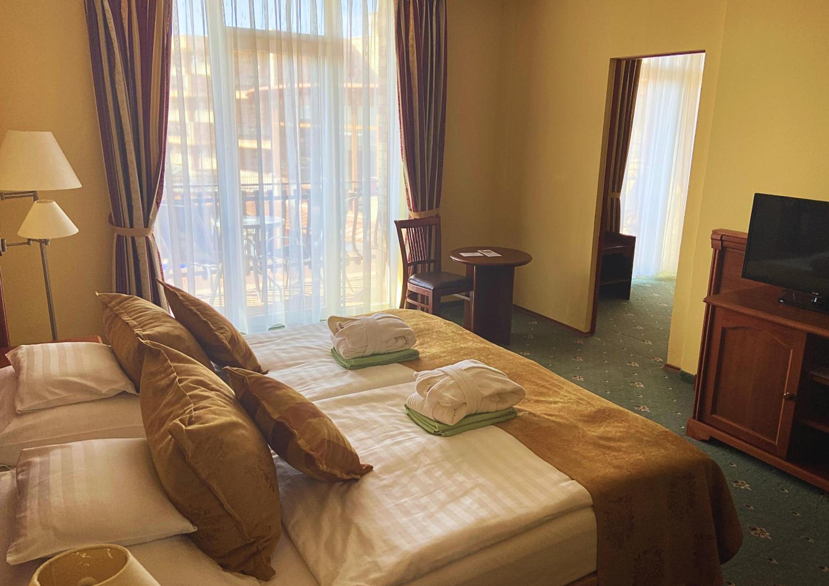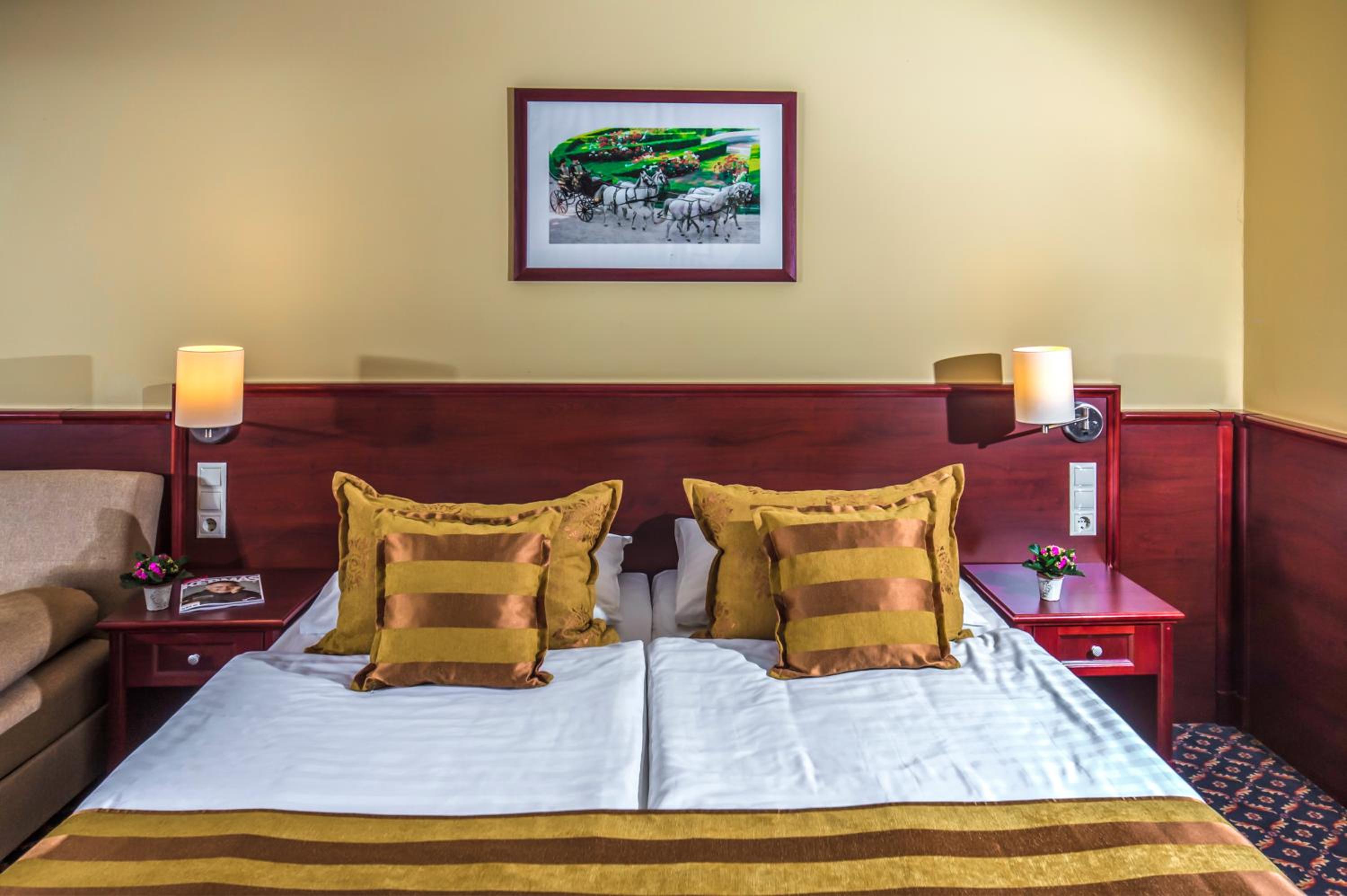 Convenient Amenities: Enjoy complimentary Wi-Fi, parking, and a delicious breakfast buffet during your stay. Immerse yourself in the rich history and modern comforts offered by Hotel Kapitány Wellness.
